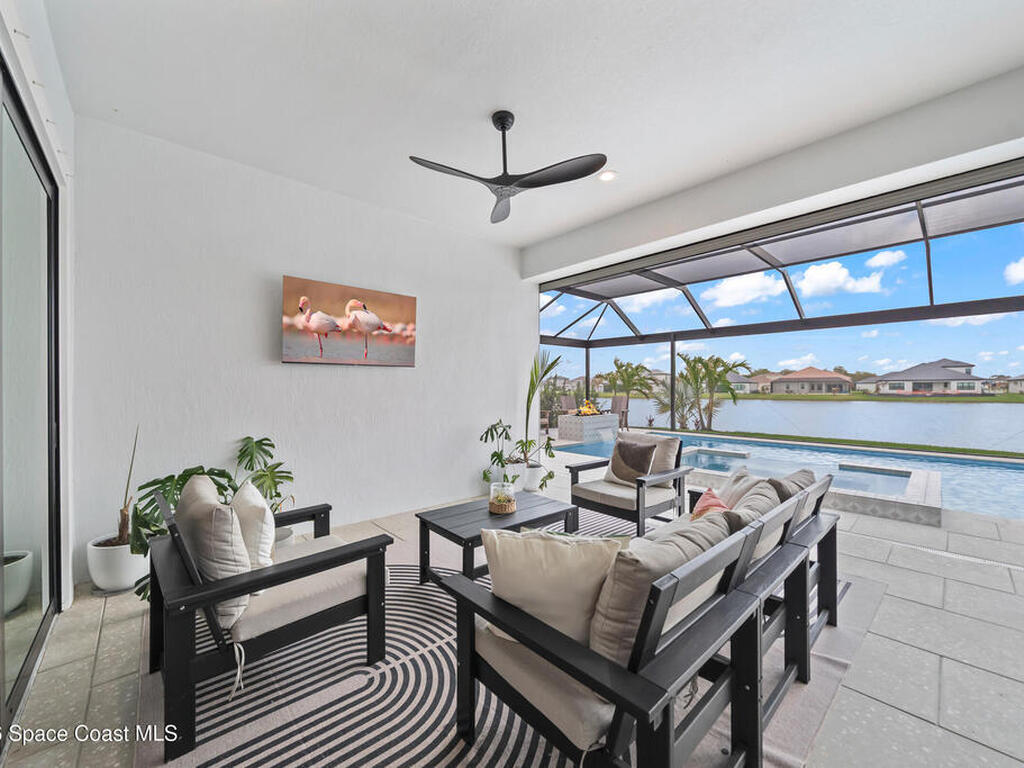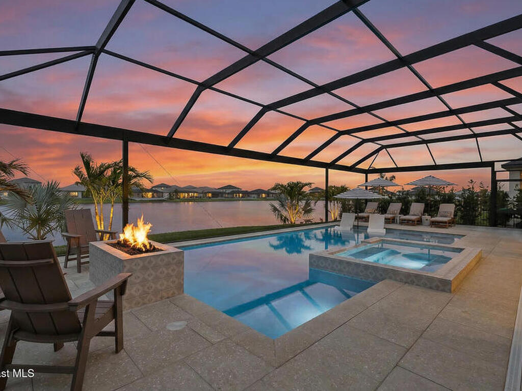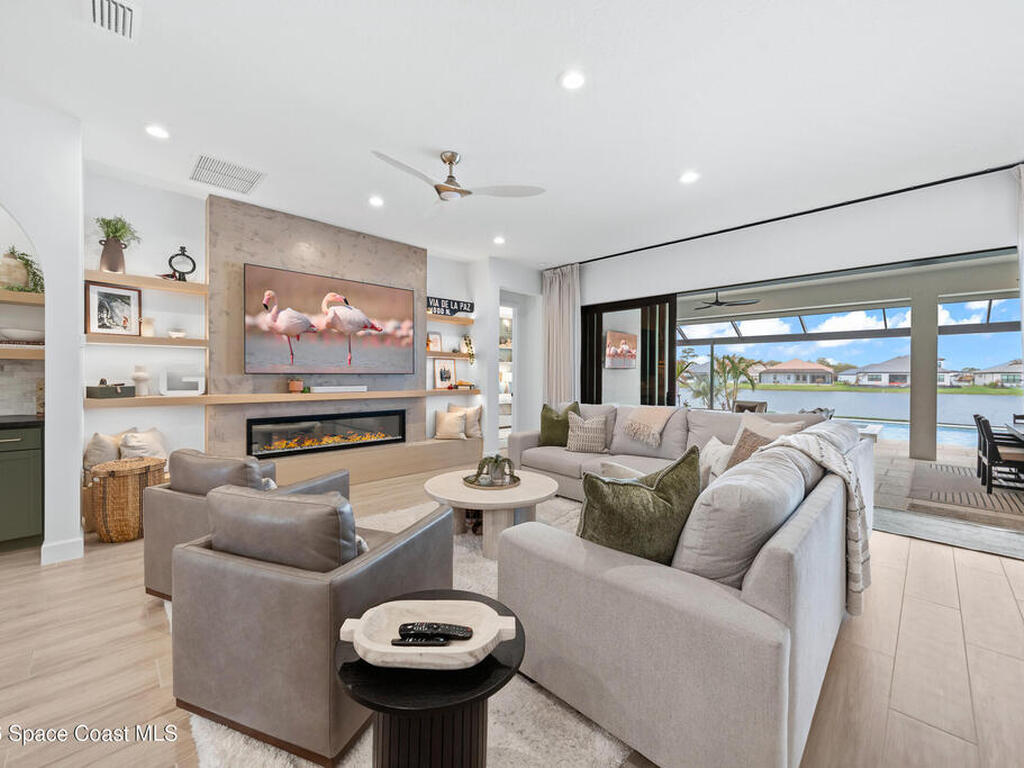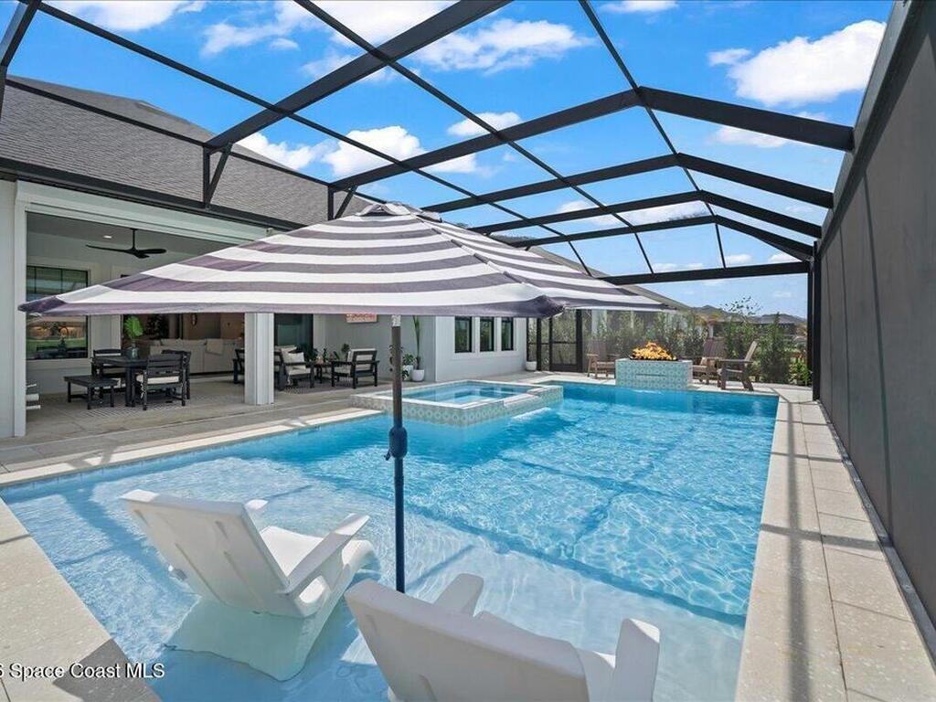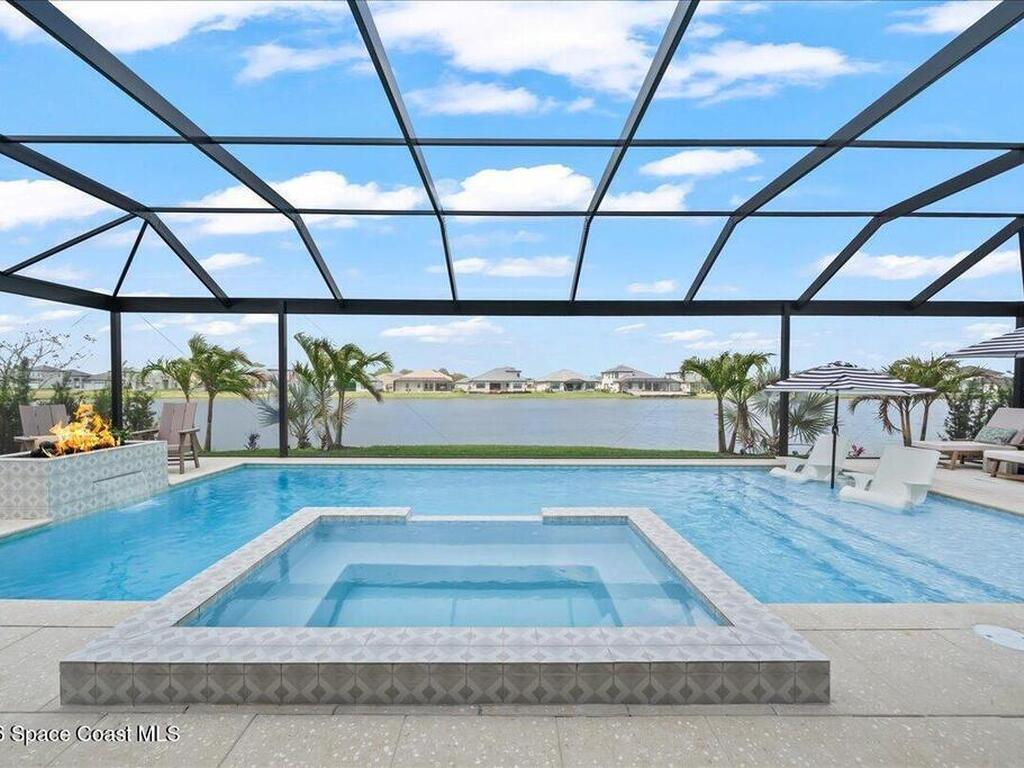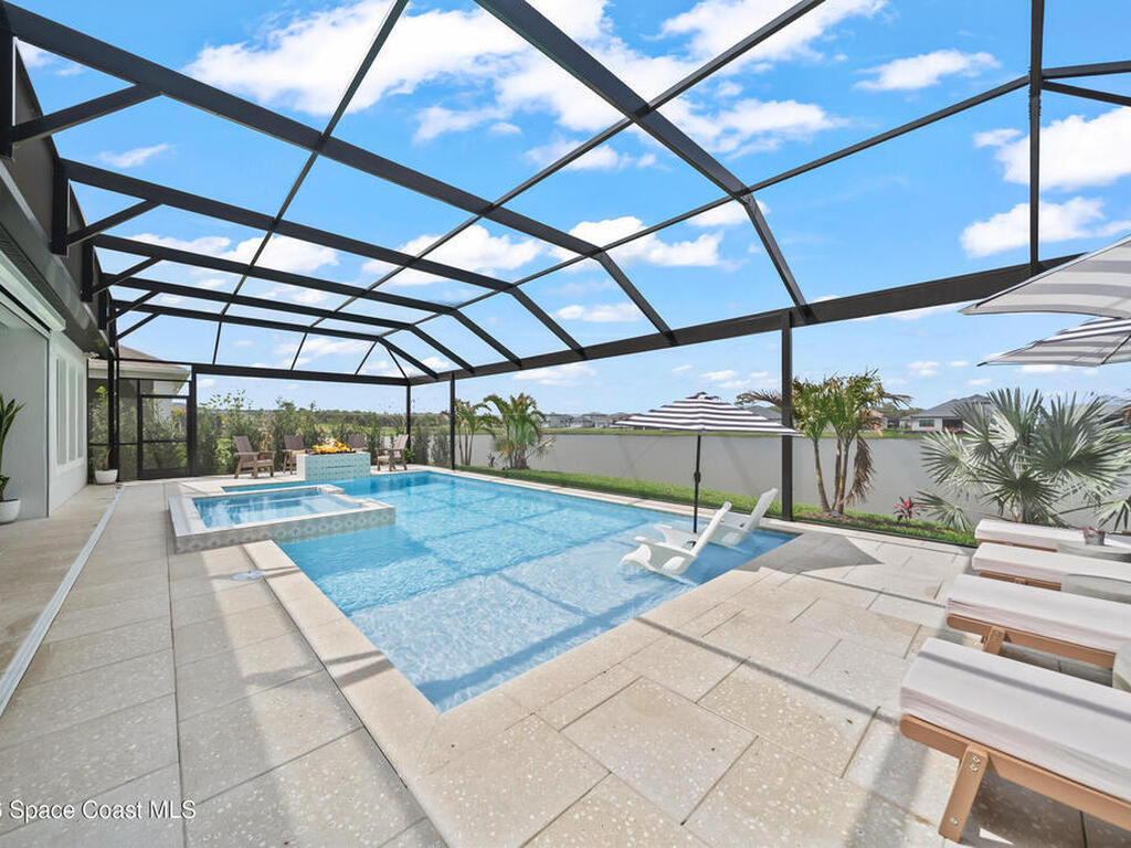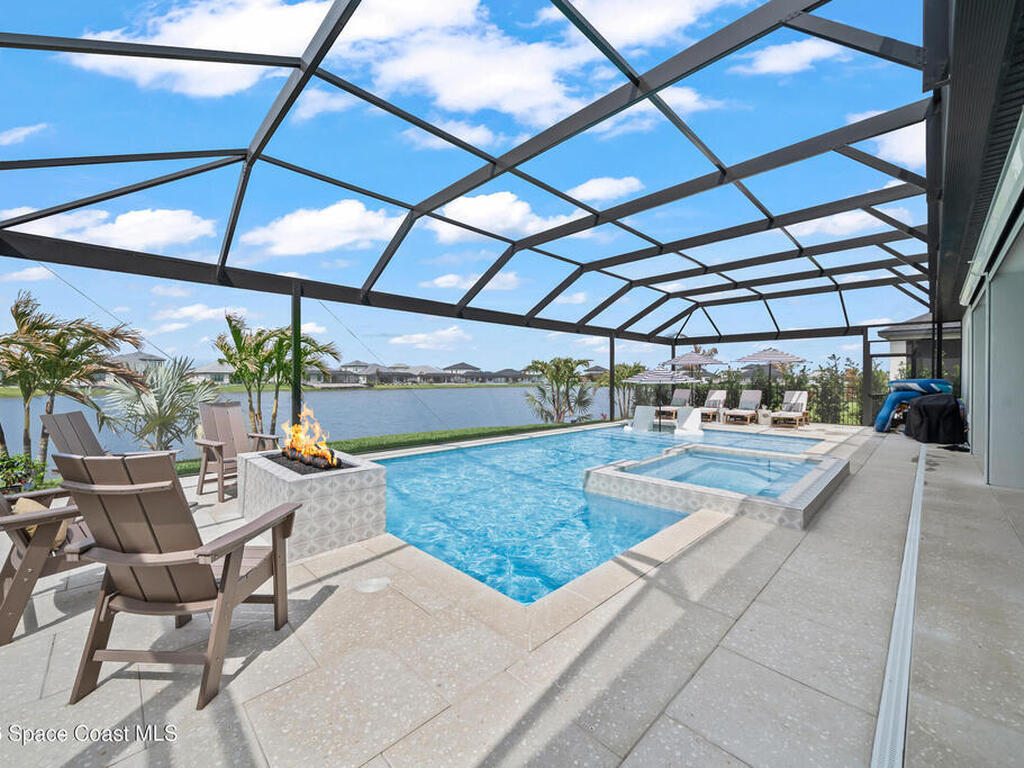 *** Multiple Offers Received.Exquisitely upgraded 4BR/4BA home in highly sought-after Viera, transformed by a professional interior designer-- every room was thoughtfully designed with cohesive, high-end finishes and custom built-ins throughout. Living room showcases a textured concrete-inspired fireplace wall with white oak built-ins and integrated lighting. Bespoke dry bar with oak shelving and built-in beverage center. Step outside to the custom heated pool and spa, panoramic screen enclosure, natural gas fireplace, pavers, & hurricane-rated roll down screens. Custom drapery/window treatments, curated wall treatments & an elegant foyer fill the interior. Executive office features a 16ft custom built-in wall with a custom sliding white oak panel concealing a whiteboard or TV. Upstairs loft offers flexible space for work, study or play.