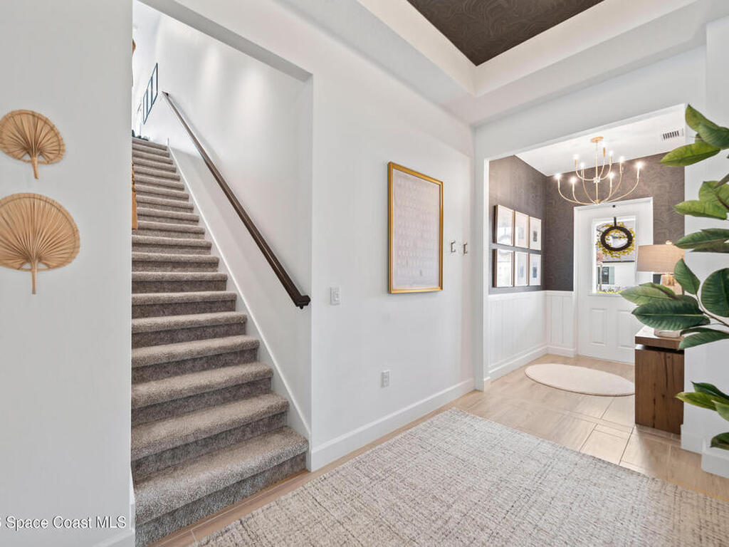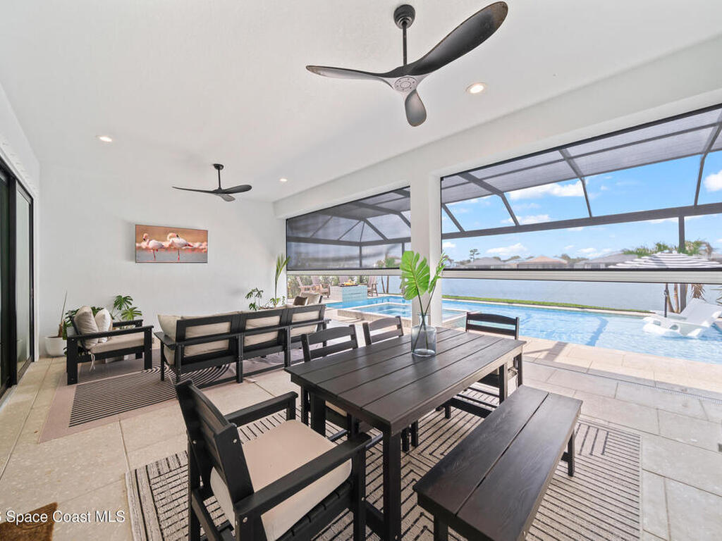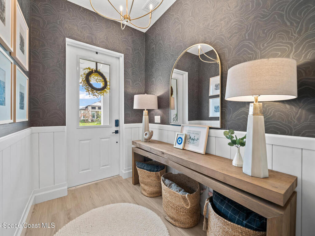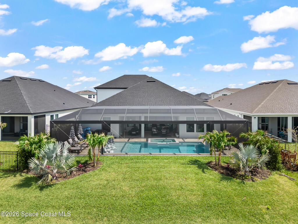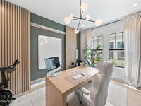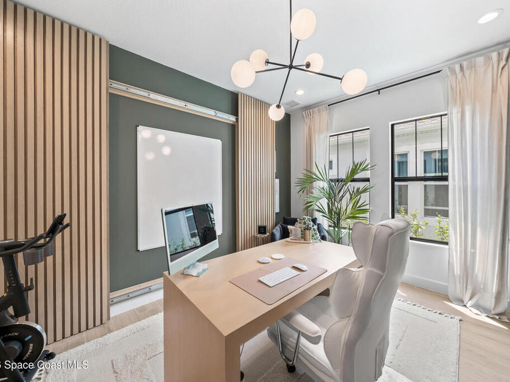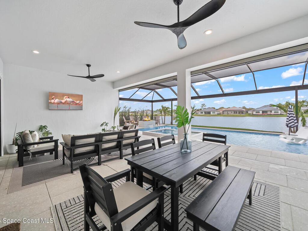 *** Multiple Offers Received.Exquisitely upgraded 4BR/4BA home in highly sought-after Viera, transformed by a professional interior designer-- every room was thoughtfully designed with cohesive, high-end finishes and custom built-ins throughout. Living room showcases a textured concrete-inspired fireplace wall with white oak built-ins and integrated lighting. Bespoke dry bar with oak shelving and built-in beverage center. Step outside to the custom heated pool and spa, panoramic screen enclosure, natural gas fireplace, pavers, & hurricane-rated roll down screens. Custom drapery/window treatments, curated wall treatments & an elegant foyer fill the interior. Executive office features a 16ft custom built-in wall with a custom sliding white oak panel concealing a whiteboard or TV. Upstairs loft offers flexible space for work, study or play.