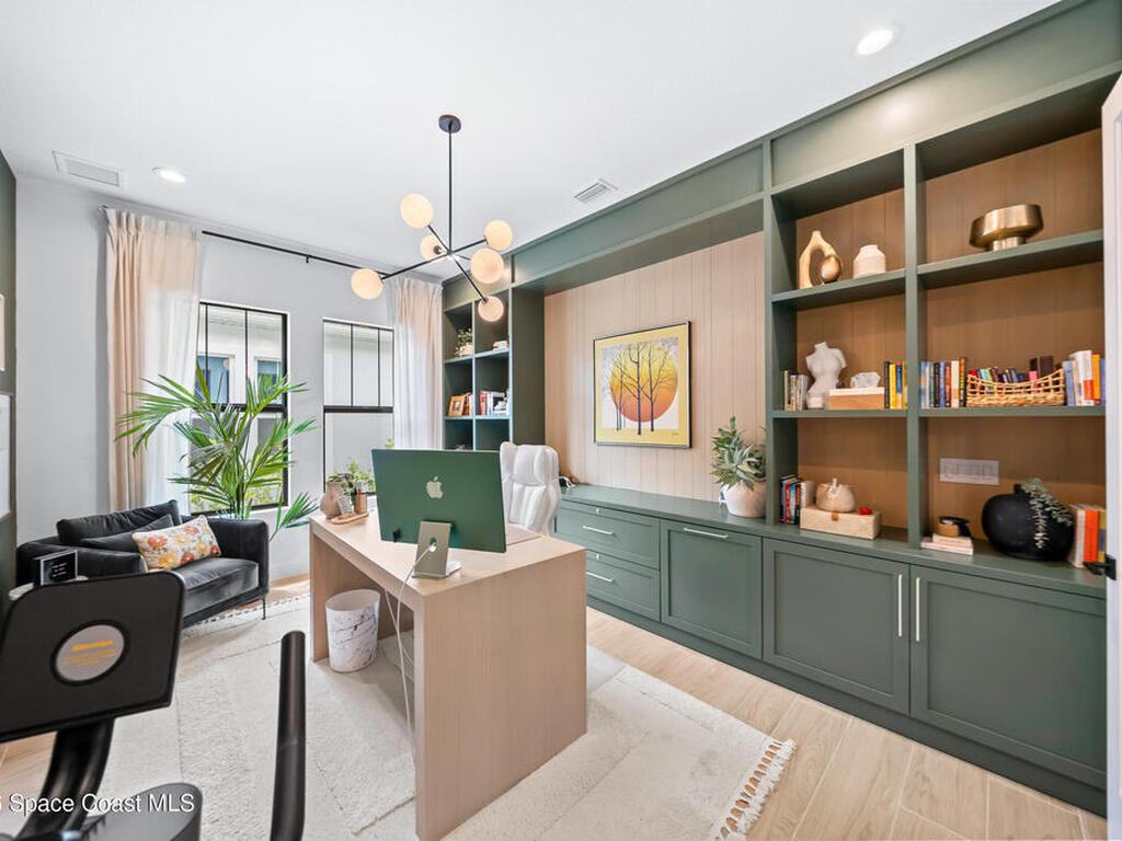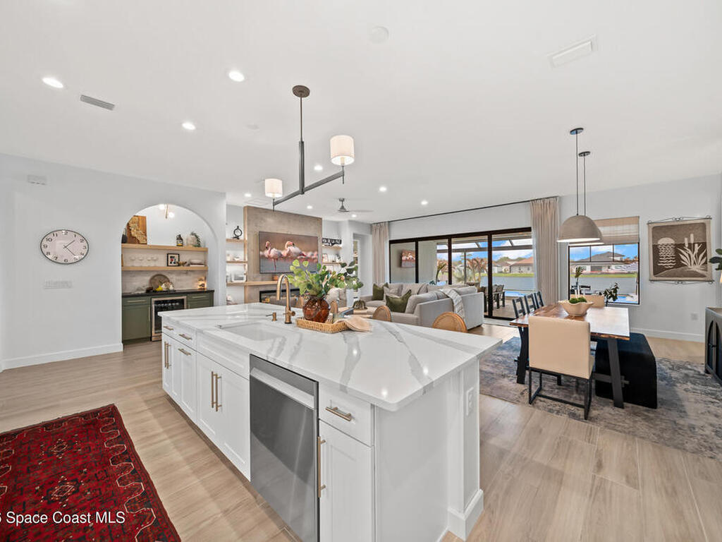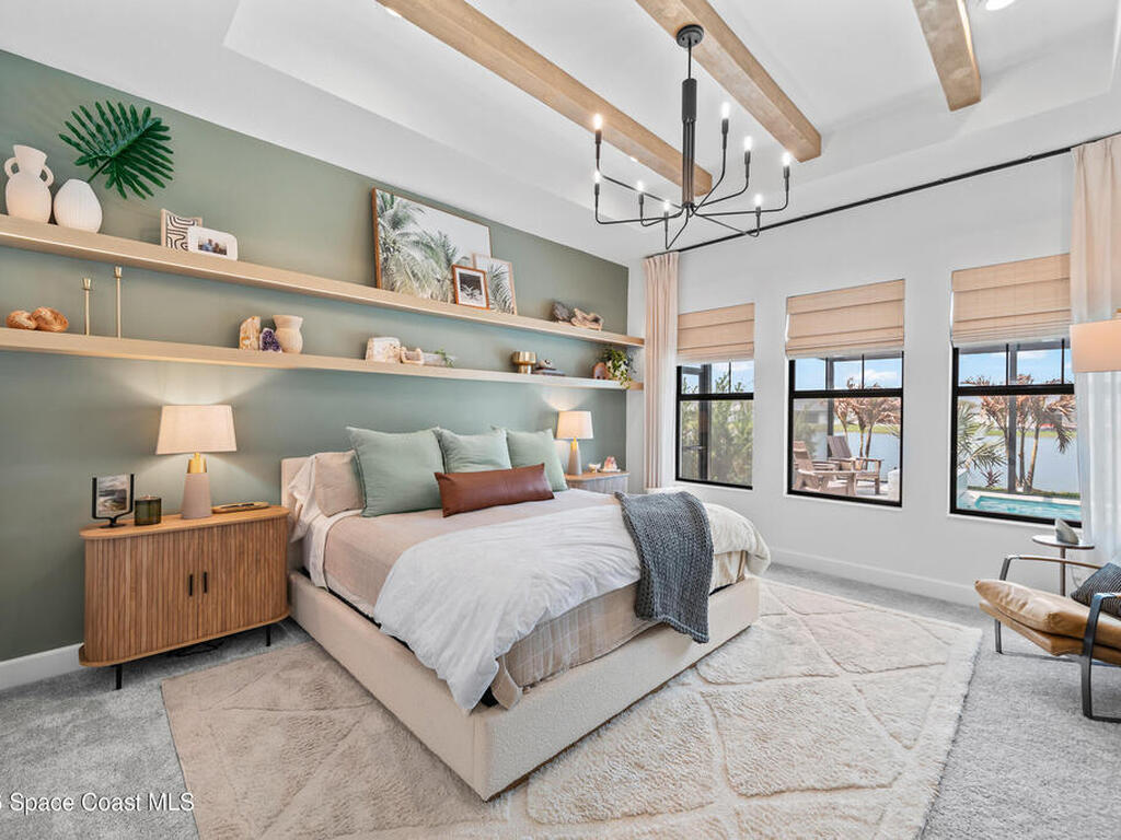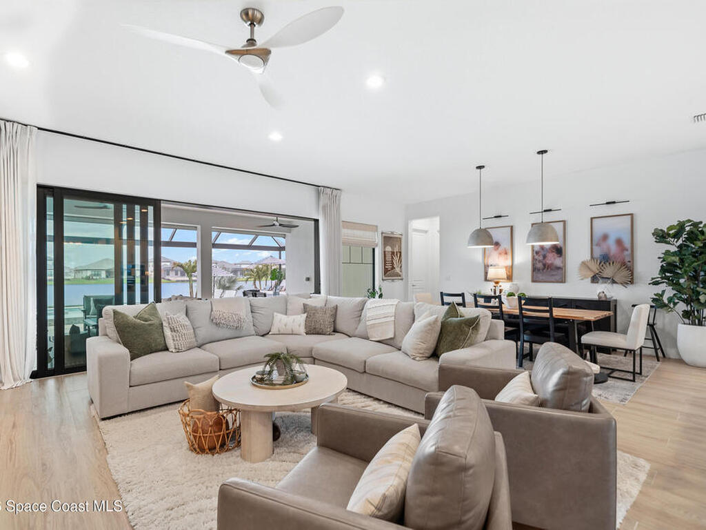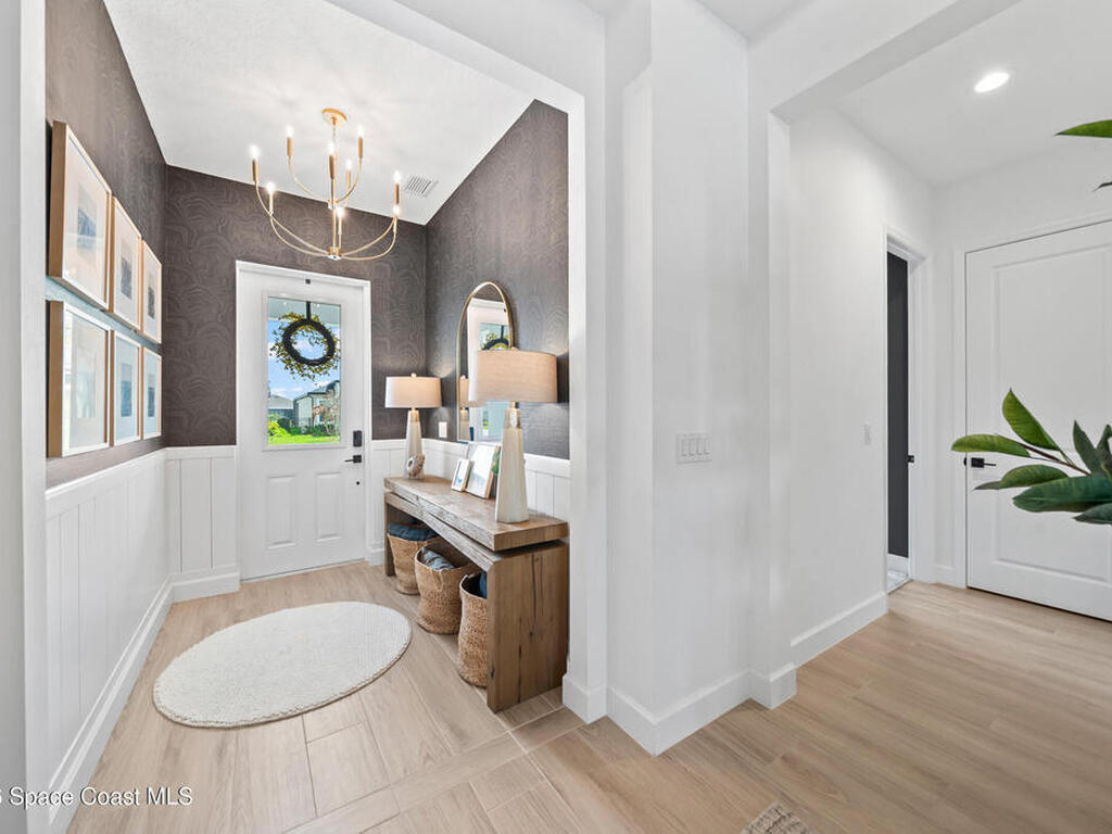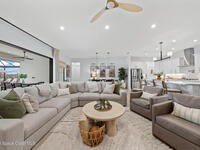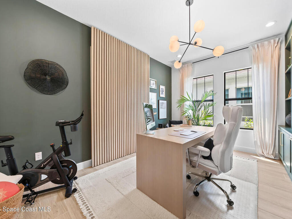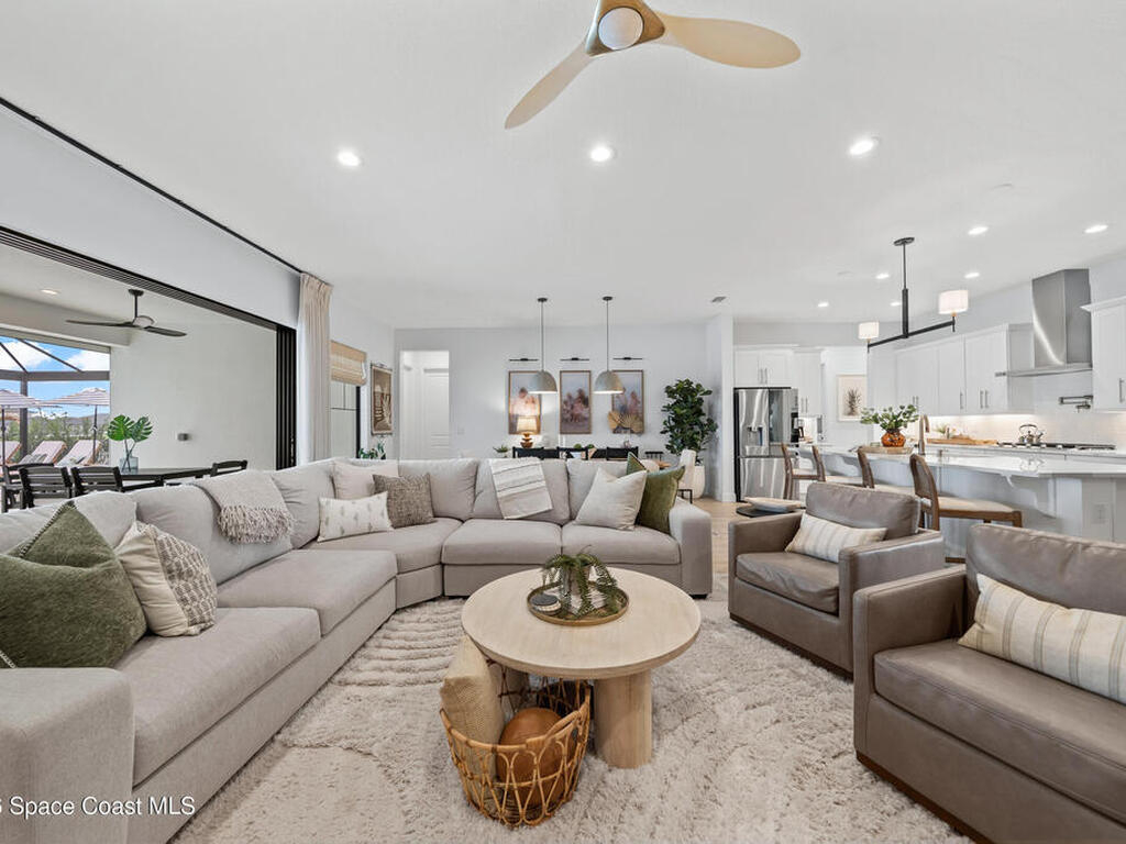 *** Multiple Offers Received.Exquisitely upgraded 4BR/4BA home in highly sought-after Viera, transformed by a professional interior designer-- every room was thoughtfully designed with cohesive, high-end finishes and custom built-ins throughout. Living room showcases a textured concrete-inspired fireplace wall with white oak built-ins and integrated lighting. Bespoke dry bar with oak shelving and built-in beverage center. Step outside to the custom heated pool and spa, panoramic screen enclosure, natural gas fireplace, pavers, & hurricane-rated roll down screens. Custom drapery/window treatments, curated wall treatments & an elegant foyer fill the interior. Executive office features a 16ft custom built-in wall with a custom sliding white oak panel concealing a whiteboard or TV. Upstairs loft offers flexible space for work, study or play.