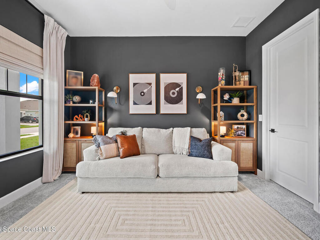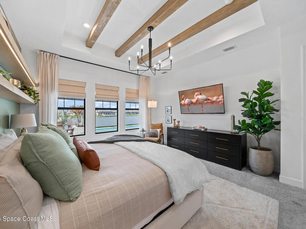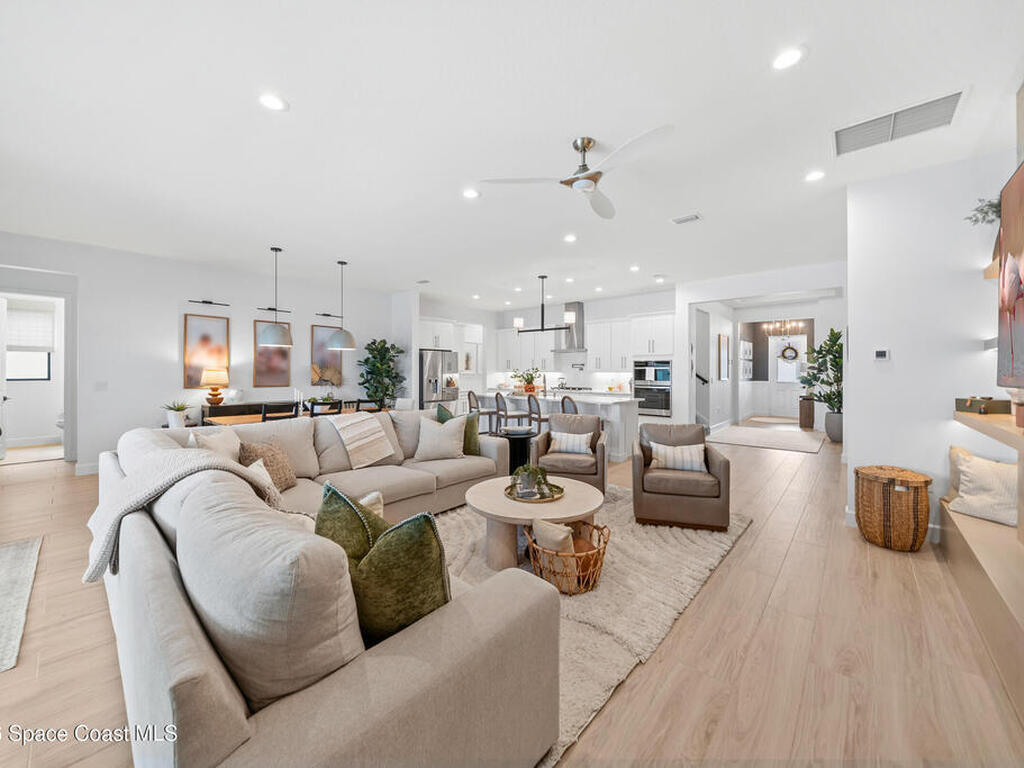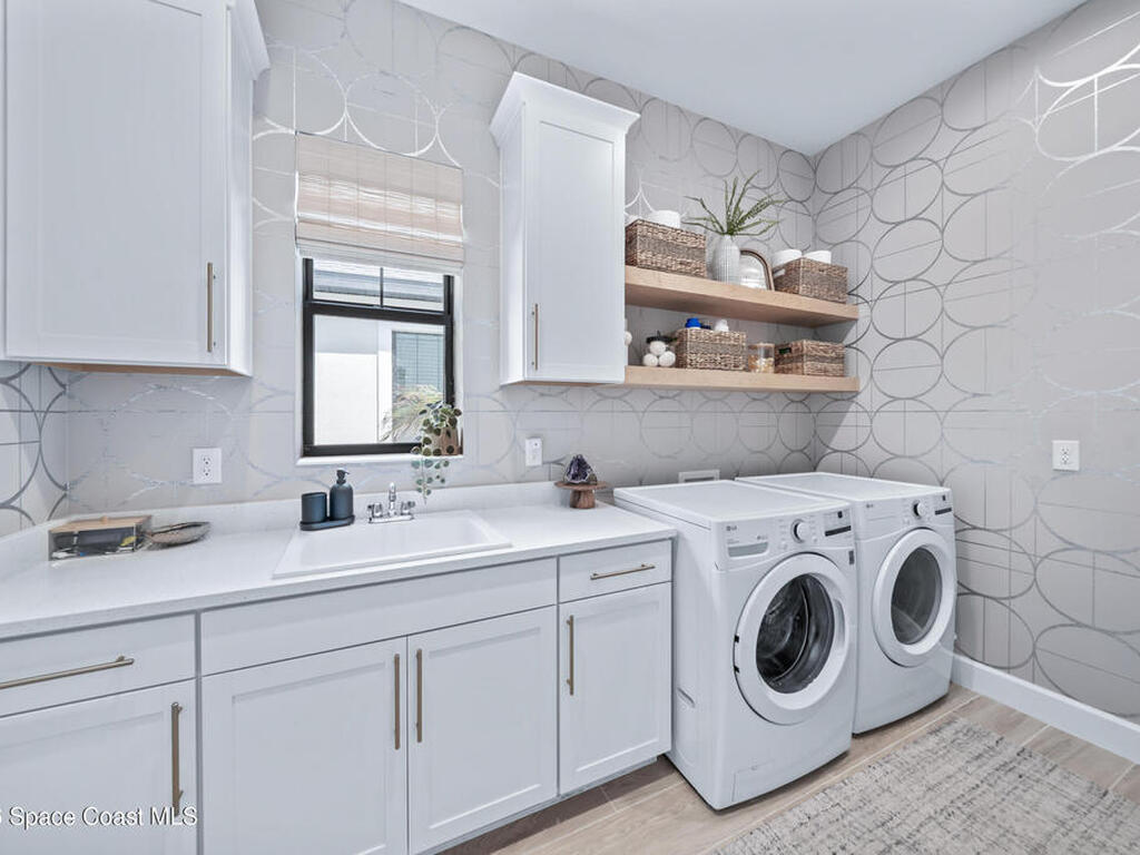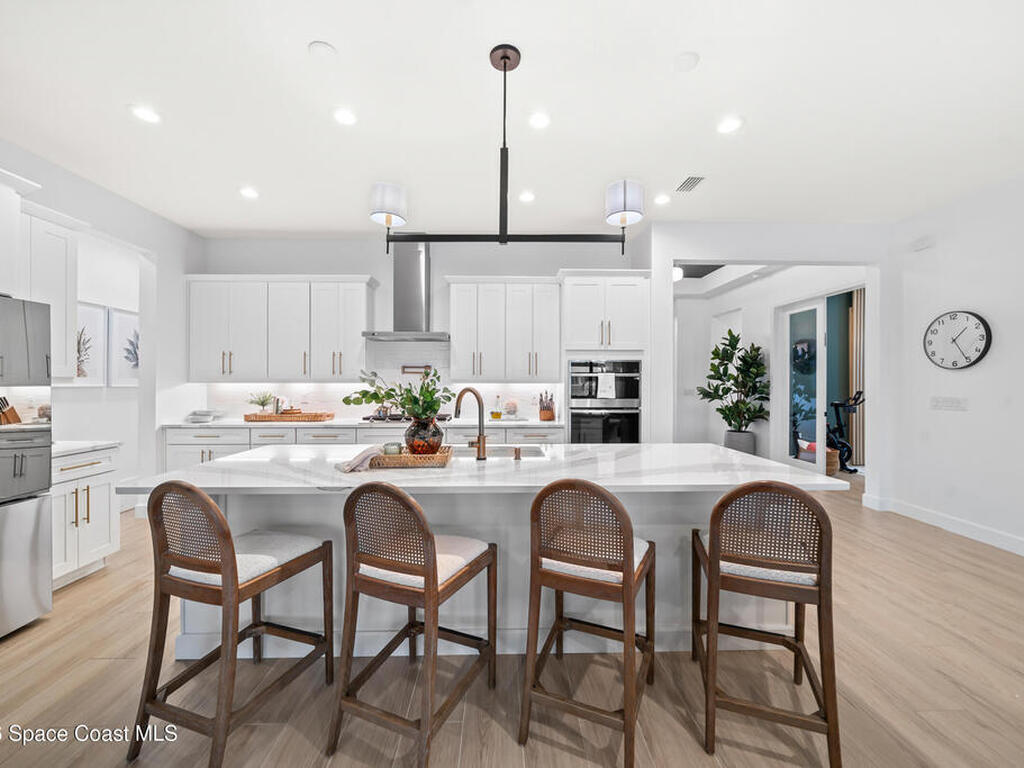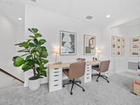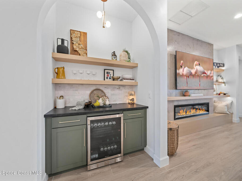 *** Multiple Offers Received.Exquisitely upgraded 4BR/4BA home in highly sought-after Viera, transformed by a professional interior designer-- every room was thoughtfully designed with cohesive, high-end finishes and custom built-ins throughout. Living room showcases a textured concrete-inspired fireplace wall with white oak built-ins and integrated lighting. Bespoke dry bar with oak shelving and built-in beverage center. Step outside to the custom heated pool and spa, panoramic screen enclosure, natural gas fireplace, pavers, & hurricane-rated roll down screens. Custom drapery/window treatments, curated wall treatments & an elegant foyer fill the interior. Executive office features a 16ft custom built-in wall with a custom sliding white oak panel concealing a whiteboard or TV. Upstairs loft offers flexible space for work, study or play.