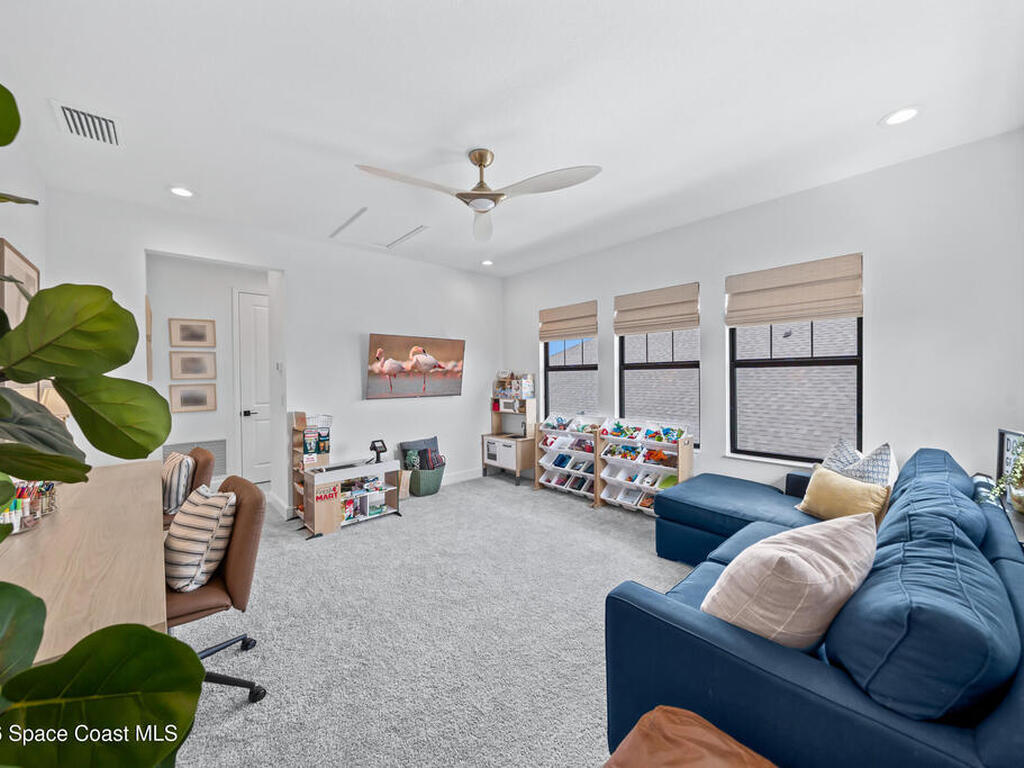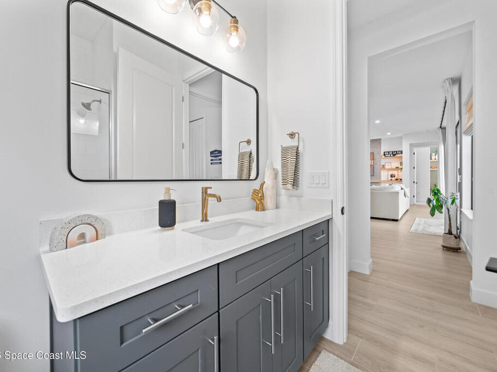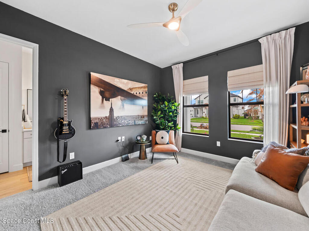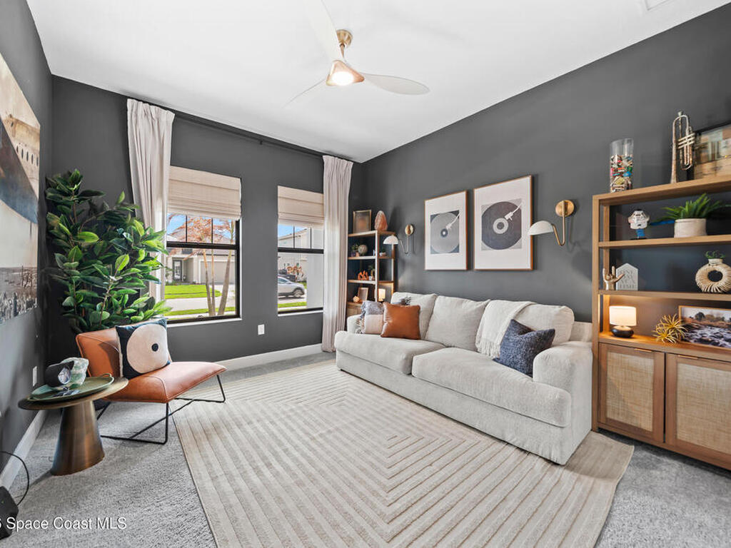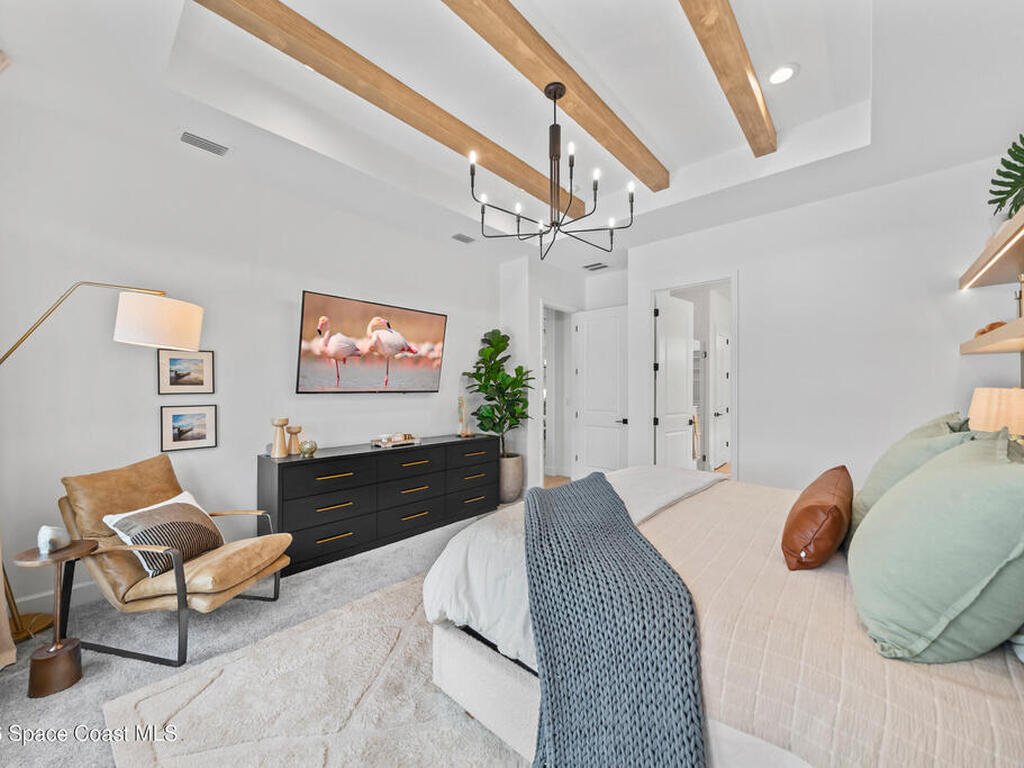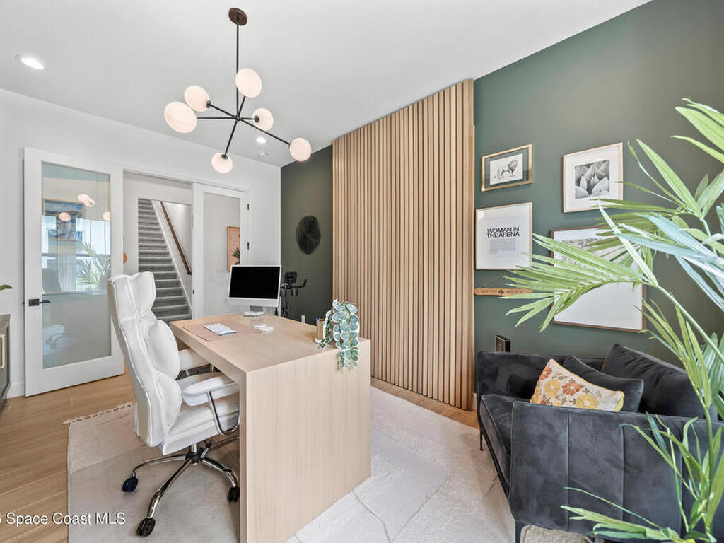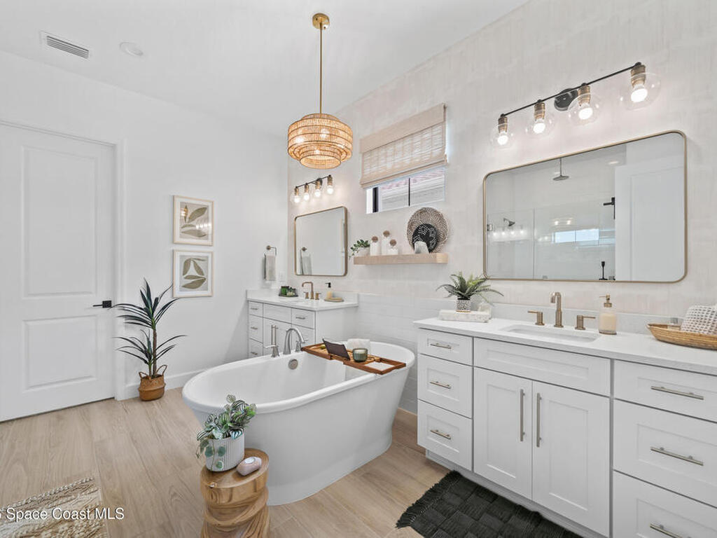 *** Multiple Offers Received.Exquisitely upgraded 4BR/4BA home in highly sought-after Viera, transformed by a professional interior designer-- every room was thoughtfully designed with cohesive, high-end finishes and custom built-ins throughout. Living room showcases a textured concrete-inspired fireplace wall with white oak built-ins and integrated lighting. Bespoke dry bar with oak shelving and built-in beverage center. Step outside to the custom heated pool and spa, panoramic screen enclosure, natural gas fireplace, pavers, & hurricane-rated roll down screens. Custom drapery/window treatments, curated wall treatments & an elegant foyer fill the interior. Executive office features a 16ft custom built-in wall with a custom sliding white oak panel concealing a whiteboard or TV. Upstairs loft offers flexible space for work, study or play.