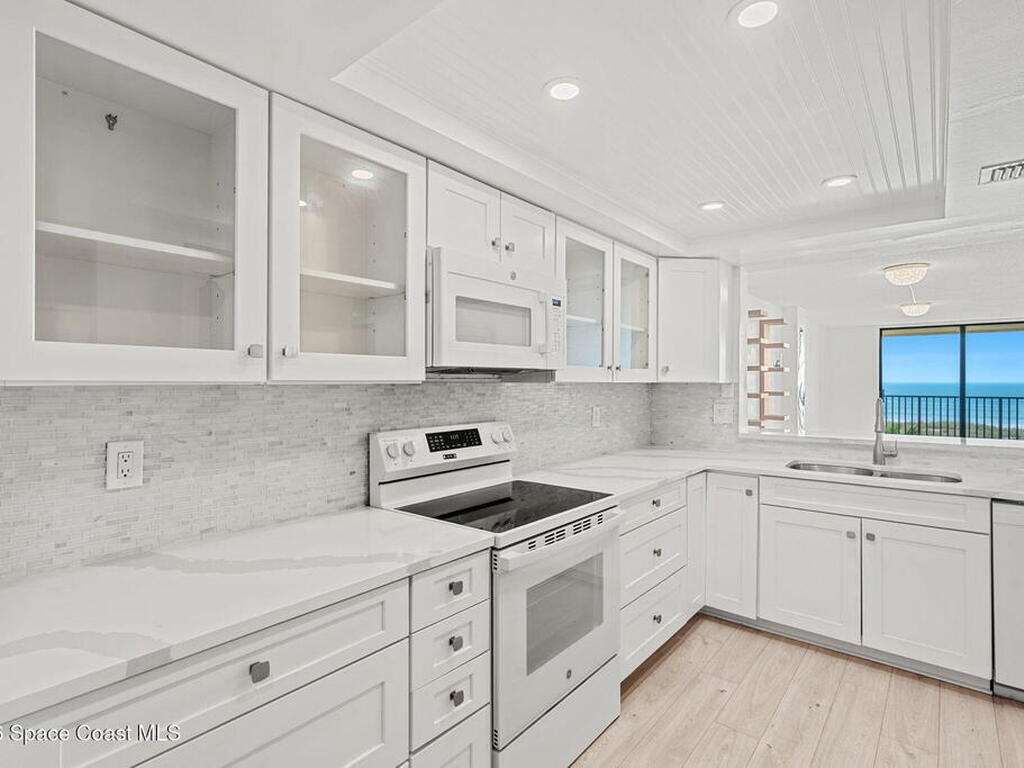DIRECT OCEAN VIEWS | HUGE BALCONY | BEST VALUE ON THE BEACH!Direct, unobstructed Atlantic Ocean views hit you the second you walk through the door of this 3rd-floor condo at Royale Towers. The oversized private balcony delivers wide, sweeping ocean views, perfect for rocket launches, cruise ships, and endless sunrises.Inside, the open layout is built around the view, with tile and luxury vinyl flooring throughout (no carpet). The updated kitchen features soft-close cabinetry, quartz countertops, tile backsplash, beadboard ceiling, and recessed lighting.Additional highlights include in-unit laundry, hurricane shutters, a 1-car garage, and a spacious primary suite.Resort-style amenities include a heated pool, spa, clubhouse, fitness center, sauna, tennis, and pickleball. Pet-friendly and ideally located near Publix, restaurants, Lori Wilson Park, and the dog park.You don't often find direct ocean views like THIS at THIS price point. Schedule your tour today!