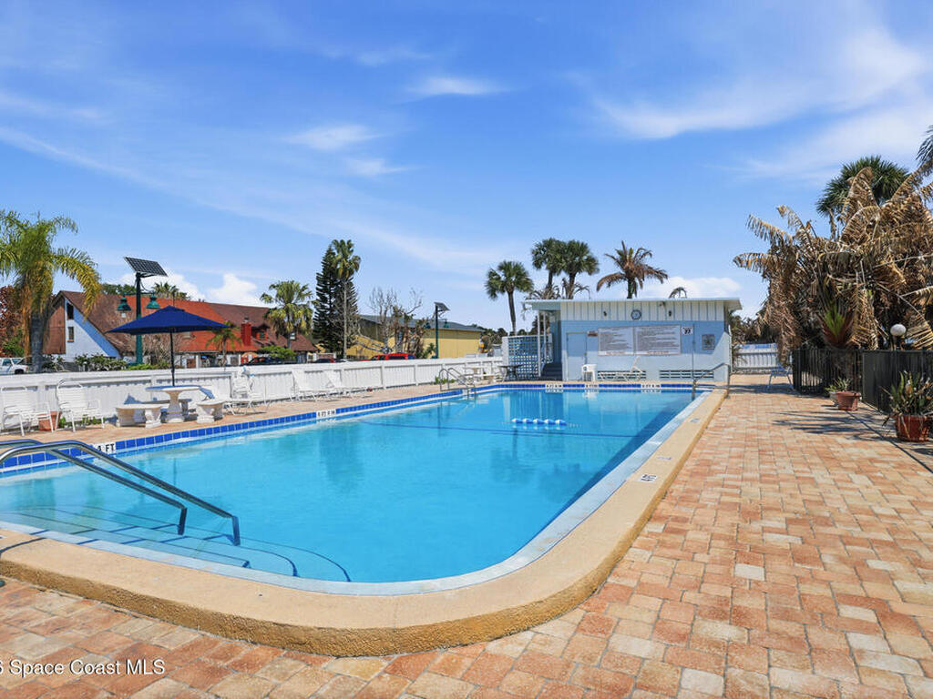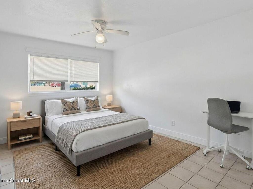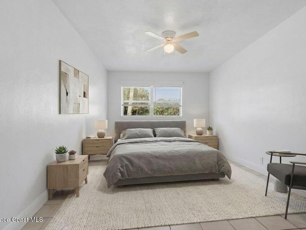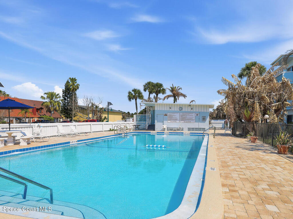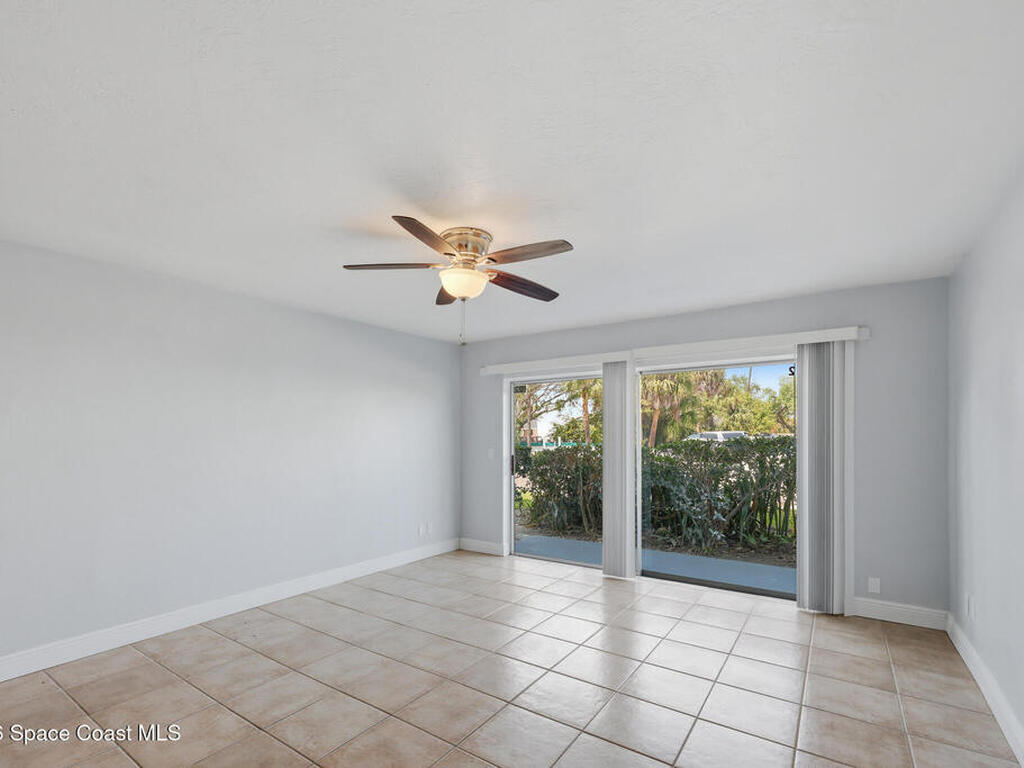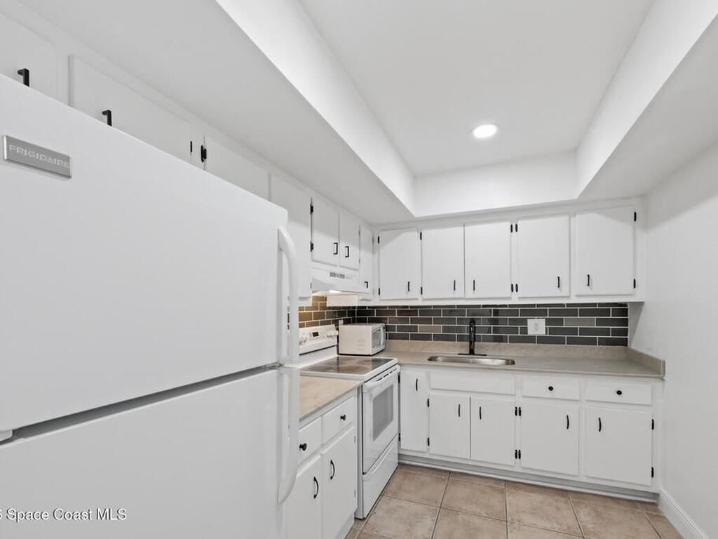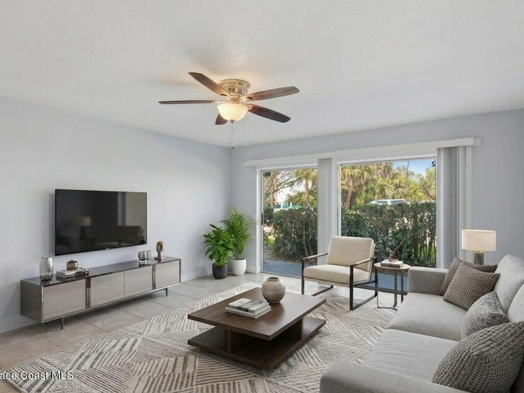 First-floor end-unit condo with 3 bedrooms and 2.5 baths, conveniently located near Port Canaveral, the Cocoa Beach Pier, downtown Cocoa Beach, and SR 528 for easy access.The kitchen is finished with quartz countertops, tiled backsplash, recessed lighting and the bathrooms have been updated with matching quartz and modern fixtures. Fresh interior paint throughout, updated baseboards, lighting, and ceiling fans carry throughout the unit. Additional features include window treatments, closet built-ins and a brand new tankless water heater.North-facing back porch with direct rocket launch views 🚀Monthly rentals permitted. The low HOA includes water, sewer, trash and the community offers a secured lobby, pool, clubhouse with kitchen and meeting space, sauna, and laundry facilities.