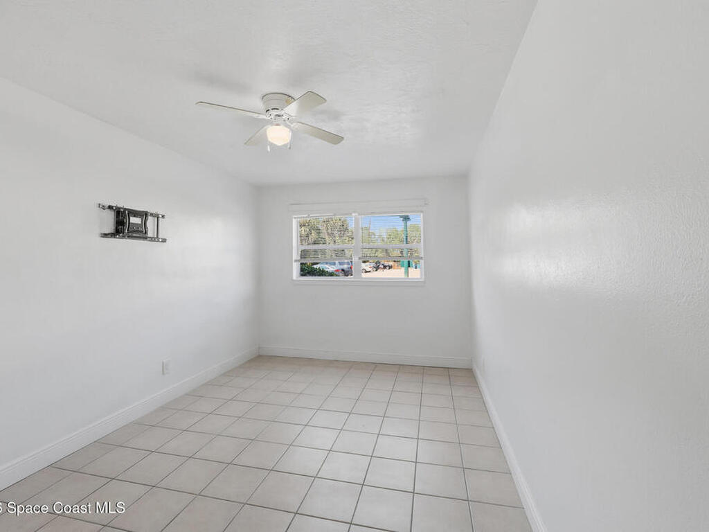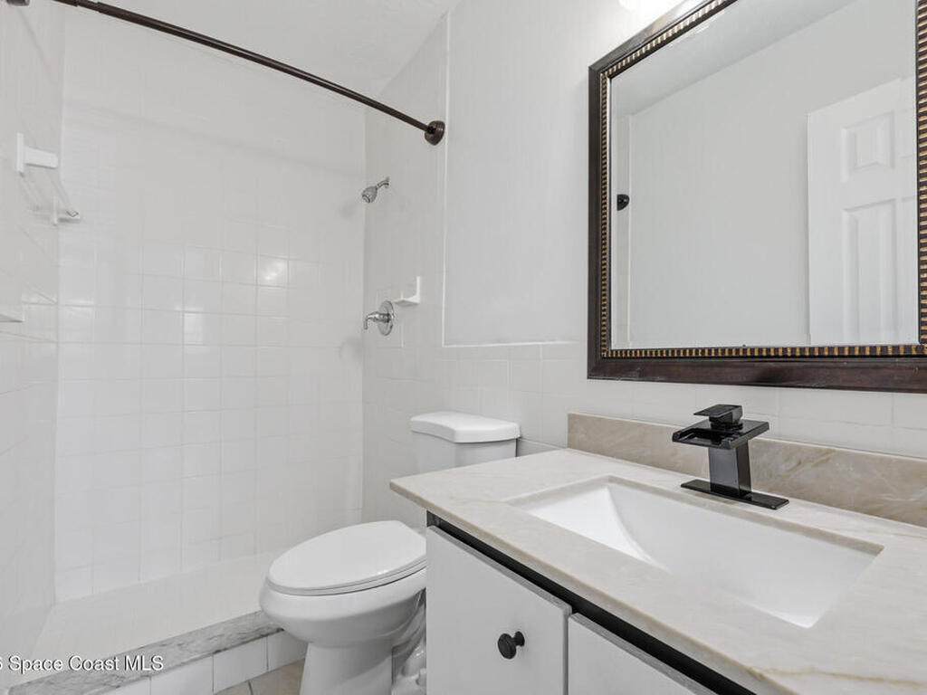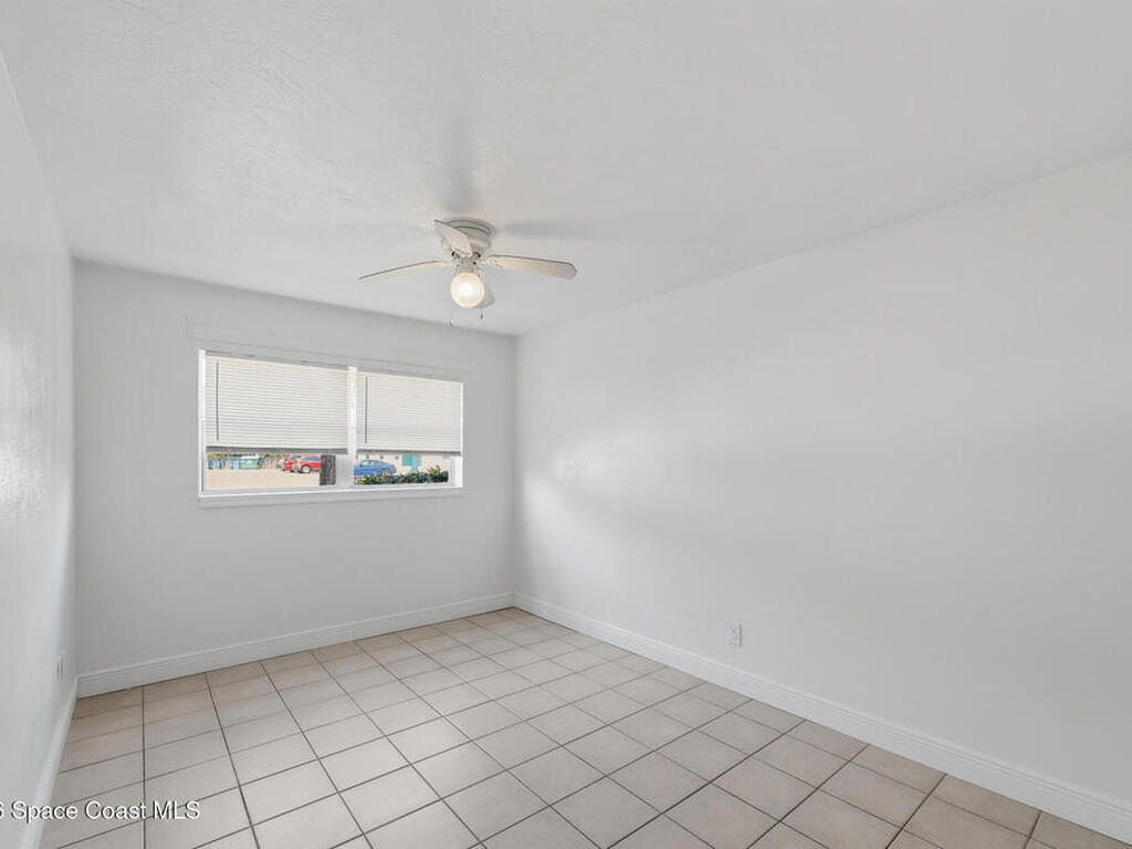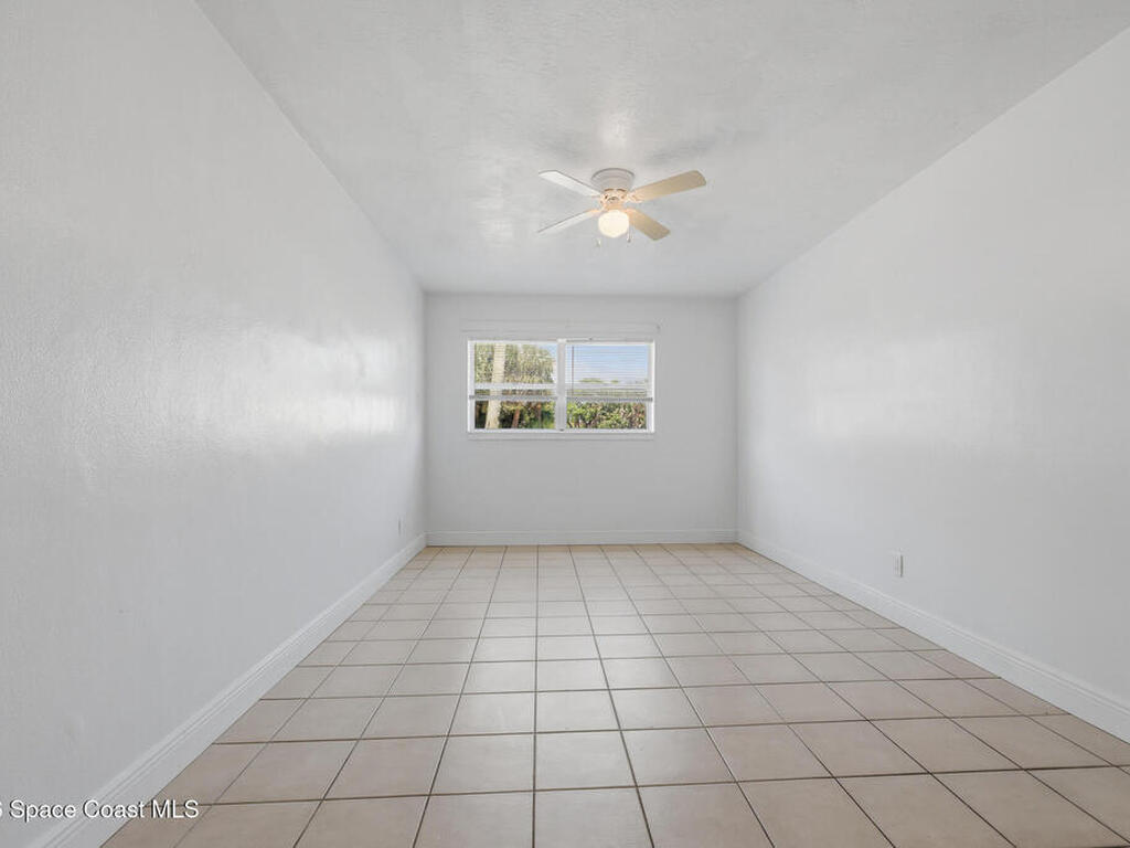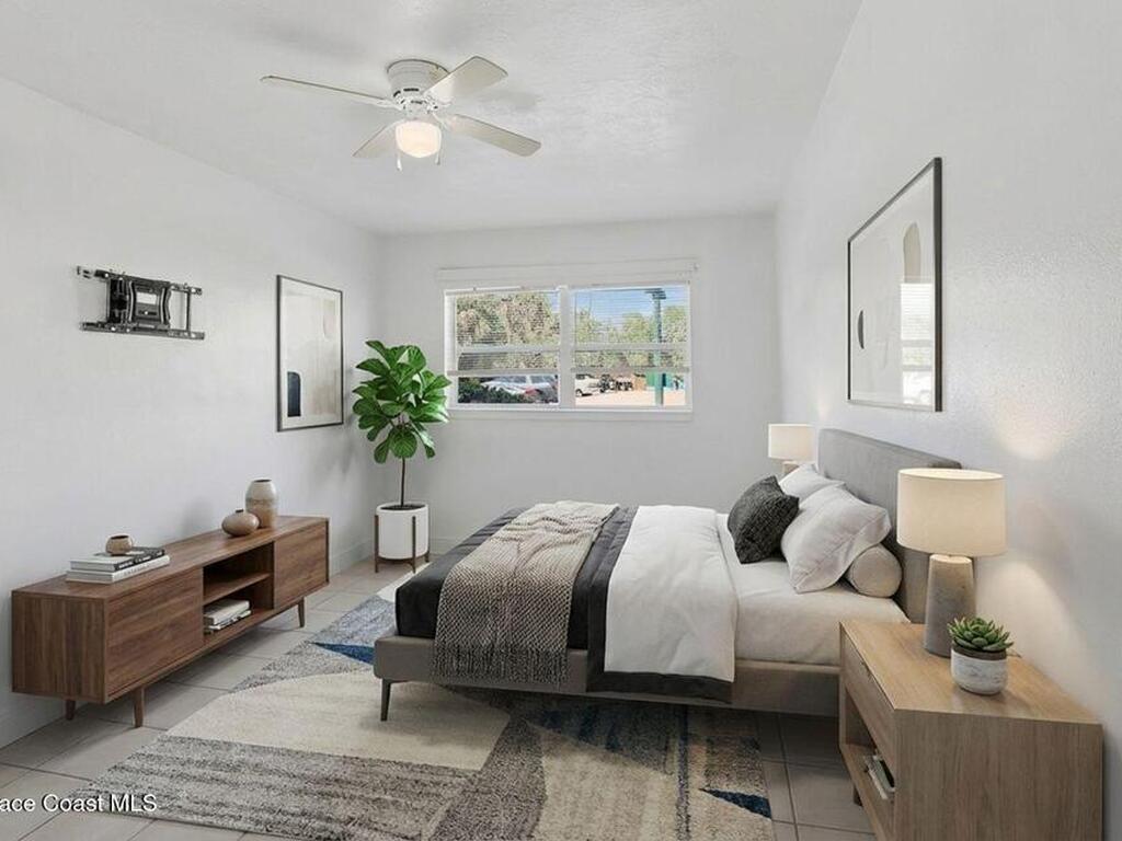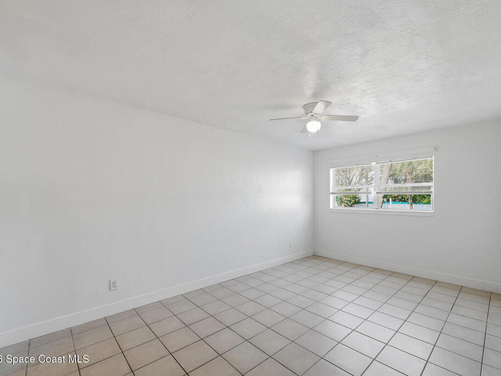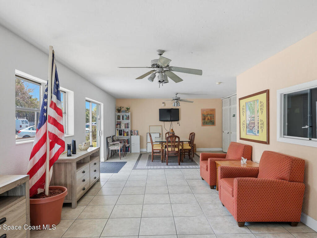 First-floor end-unit condo with 3 bedrooms and 2.5 baths, conveniently located near Port Canaveral, the Cocoa Beach Pier, downtown Cocoa Beach, and SR 528 for easy access.The kitchen is finished with quartz countertops, tiled backsplash, recessed lighting and the bathrooms have been updated with matching quartz and modern fixtures. Fresh interior paint throughout, updated baseboards, lighting, and ceiling fans carry throughout the unit. Additional features include window treatments, closet built-ins and a brand new tankless water heater.North-facing back porch with direct rocket launch views 🚀Monthly rentals permitted. The low HOA includes water, sewer, trash and the community offers a secured lobby, pool, clubhouse with kitchen and meeting space, sauna, and laundry facilities.