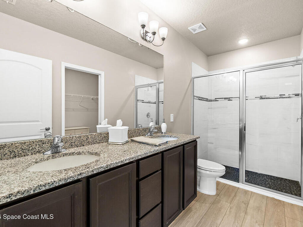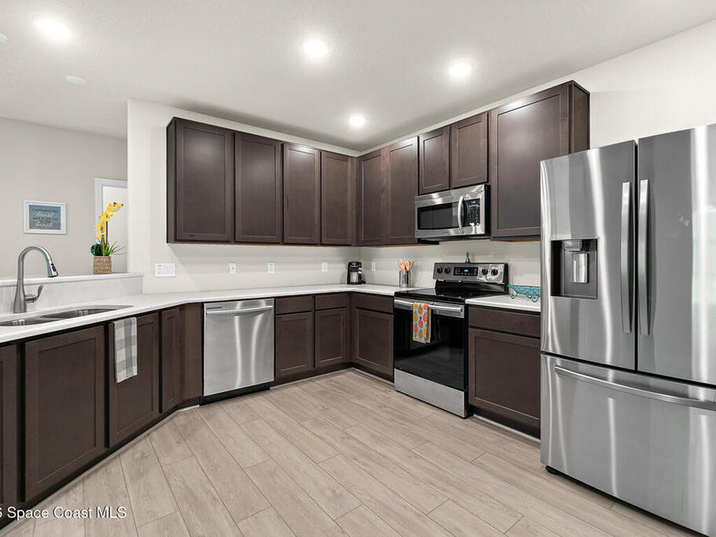 Enjoy the ultimate beachside lifestyle with a short walk to the ocean in this beautiful, end-unit townhouse located in a sought-after Montecito. This bright and spacious home features the largest floor plan available, offering both comfort and functionality. The first floor boasts a generous primary suite with an ensuite bathroom featuring granite counters and oversized walk-in closet. You'll also find a guest half bath, laundry room, and an open-concept layout that includes a large kitchen with quartz countertops, dining area, and living room. Step outside to a covered lanai, fenced backyard--perfect for relaxing or entertaining. Upstairs, a versatile loft provides added living space, along with two spacious bedrooms, a full bathroom, and ample storage. Stylish LVP flooring enhances the main level, while cozy carpeting adds comfort upstairs in the loft and bedrooms. Located in desirable Montecito where residents enjoy resort-style amenities and the HOA takes care of the landscaping!