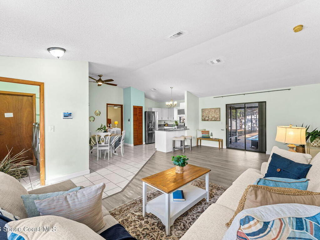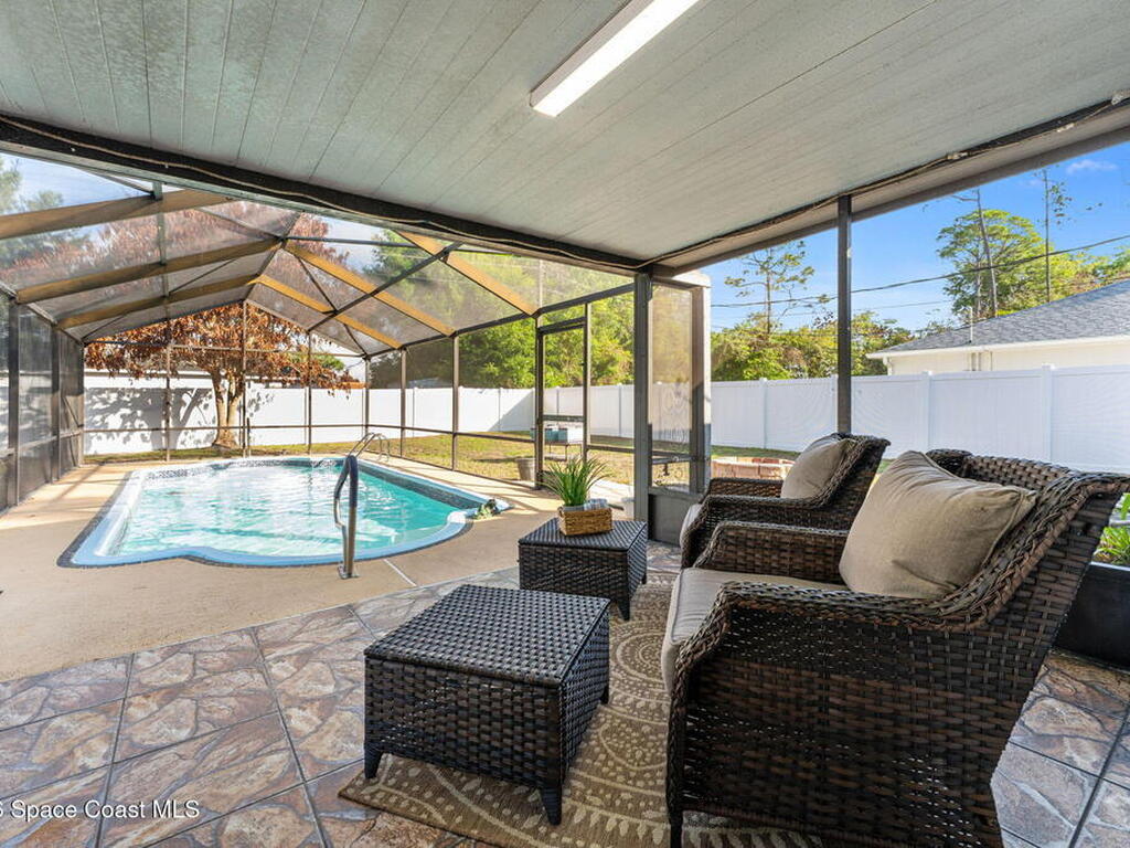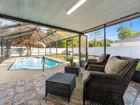 This is the kind of home you walk into and instantly feel like you could stay awhile. Sitting on a spacious corner lot, this 3-bedroom, 2-bath pool home has an open layout that makes everyday living and entertaining feel easy. The heart of the home is the updated kitchen with granite countertops, new cabinets, stainless steel appliances, and a breakfast bar that naturally becomes the gathering spot.The primary suite is a true retreat with a large walk-in closet and a beautifully updated bath featuring a tiled walk-in shower. The additional bedrooms and updated second bath give everyone their own comfortable space.Slide open the doors and you're in your own backyard escape, a tiled lanai, screened-in pool, and a fully fenced yard with a brand new fence.Big ticket updates are already done too: roof (2023), pool resurfaced (2023), and new HVAC.This one just feels right the second you see it.