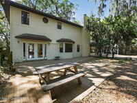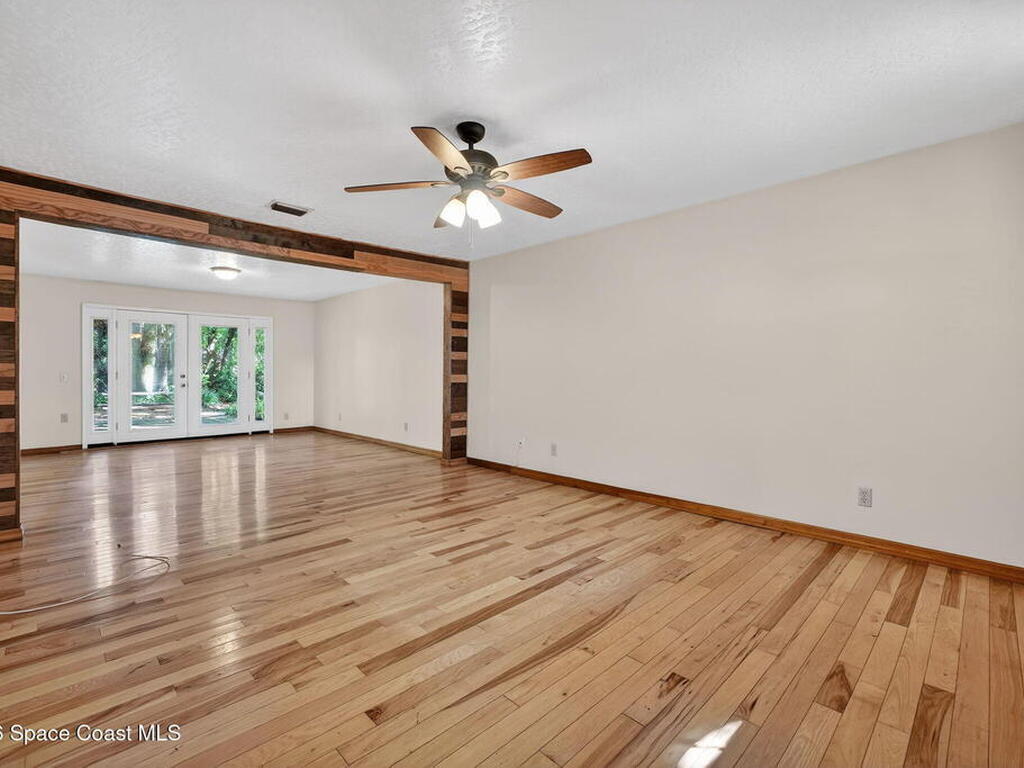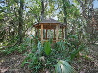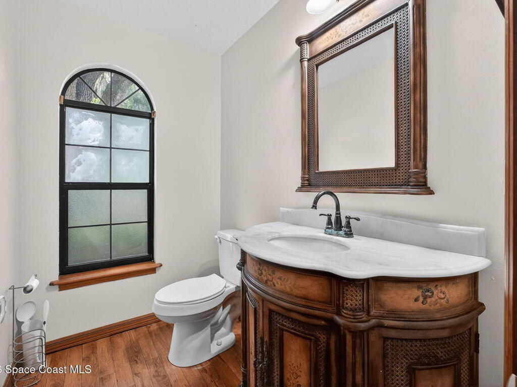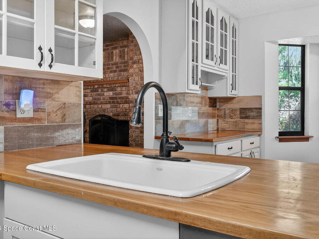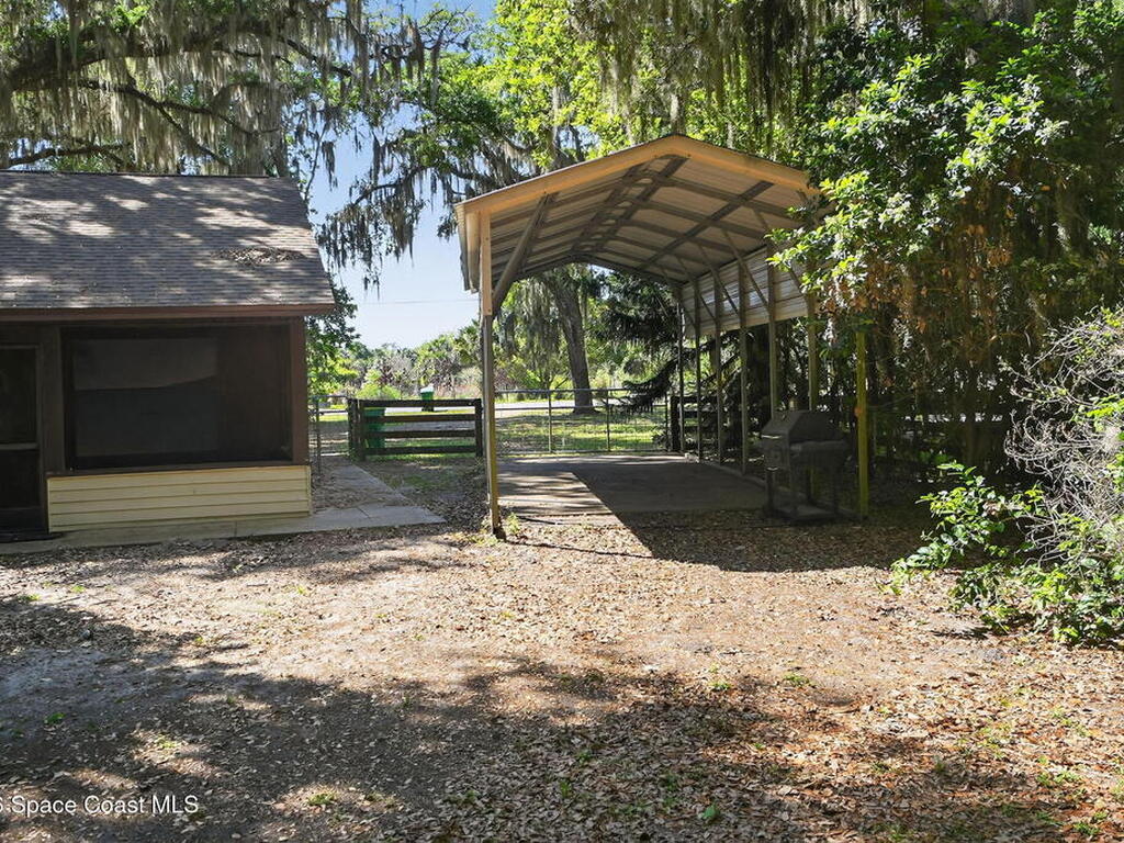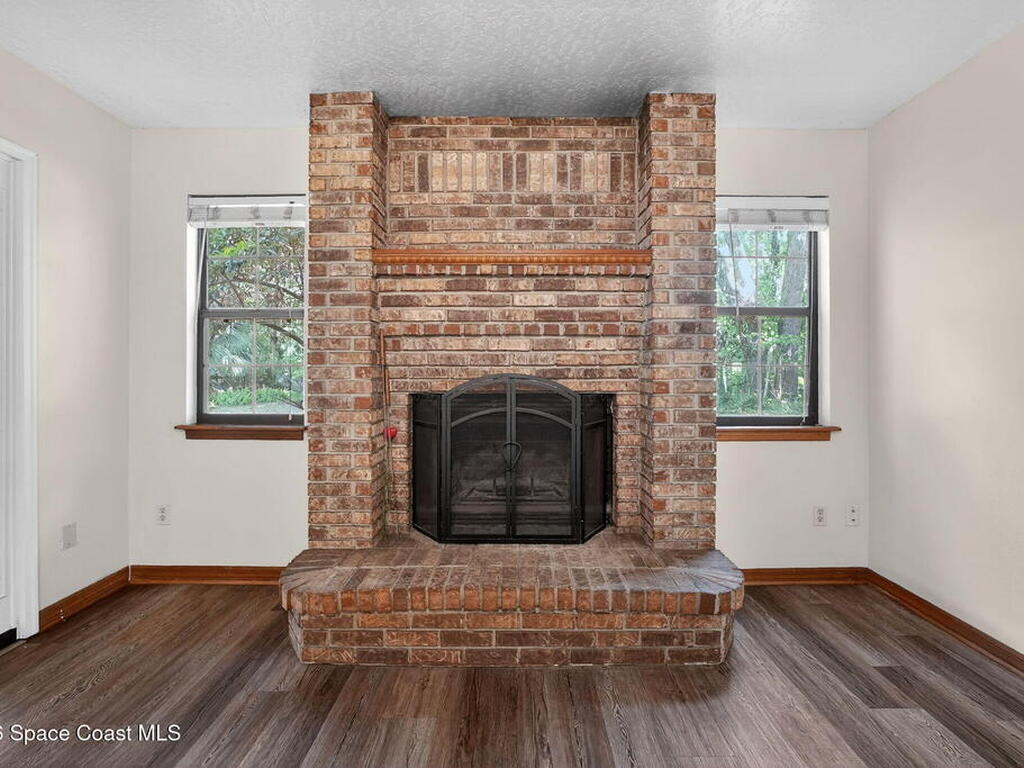 The expansive 2, 574 sq. ft. interior features a formal living and dining area highlighted by a cozy wood-burning fireplace. The updated kitchen is a culinary dream, boasting solid wood cabinetry, high-end stainless steel appliances, a large pantry, and a convenient breakfast nook that overlooks the lush backyard. Retreat upstairs to find a generous master suite featuring a massive bathroom with a separate tub and shower. Step out onto the covered patio or host guests on the massive rear deck overlooking a serene landscape of oaks and exotic foliage. Enjoy peaceful afternoons by the pond or relax in the private gazebo. The property also includes a 2-car attached garage and plenty of space for your boat or RV. Located just east of US-1, you are only 10 minutes from Downtown Titusville and close to local boat ramps for premier fishing.