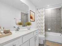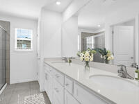 Welcome to the Cortez II, a two-story single-family home offering 1, 876 sq. ft. of living space with 4 bedrooms and 2.5 baths. The open-concept main level features a modern kitchen with a large center island and seating, flowing into the great room and dining area with access to a rear patio. Upstairs includes a spacious primary suite with walk-in closet and en-suite bath with dual vanities and linen closet. Three additional bedrooms, a loft, full bath with dual sinks, and a laundry room with sink complete the second floor. Functional layout ideal for everyday living and entertaining. *Photos are from a similar home.