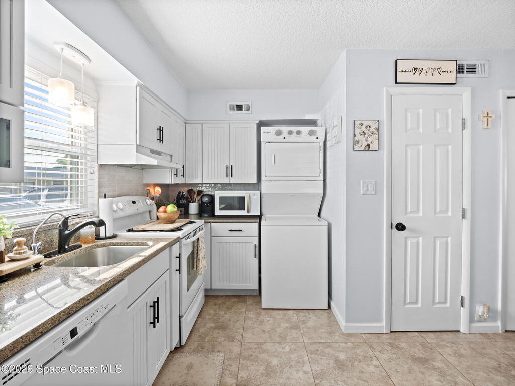 Welcome to easy living in this well-maintained 2-bedroom, 2-bath condo in the heart of Titusville! Offering 1, 056 square feet, this unit features an updated kitchen with a center island--perfect for both everyday living and entertaining. Natural light fills the space, creating a bright and inviting atmosphere throughout. Tile flooring flows through the main living areas, with comfortable carpet in the bedrooms. Enjoy the added bonus of a screened porch--ideal for relaxing year-round--plus an in-unit stackable washer and dryer and assigned parking. The HOA of $327.04 covers water, cable, internet, and select insurance, adding great value. Centrally located near shopping, dining, and the best of the Space Coast.