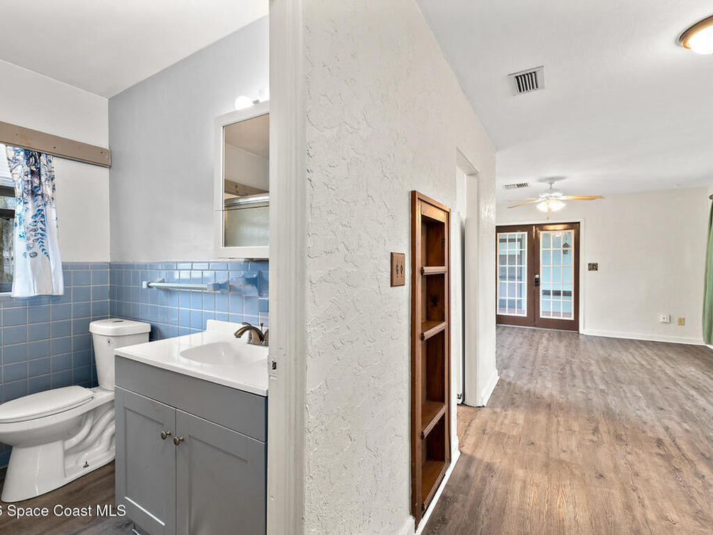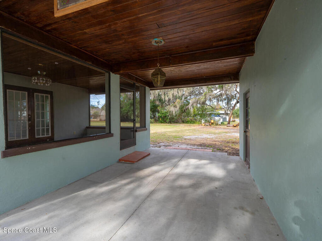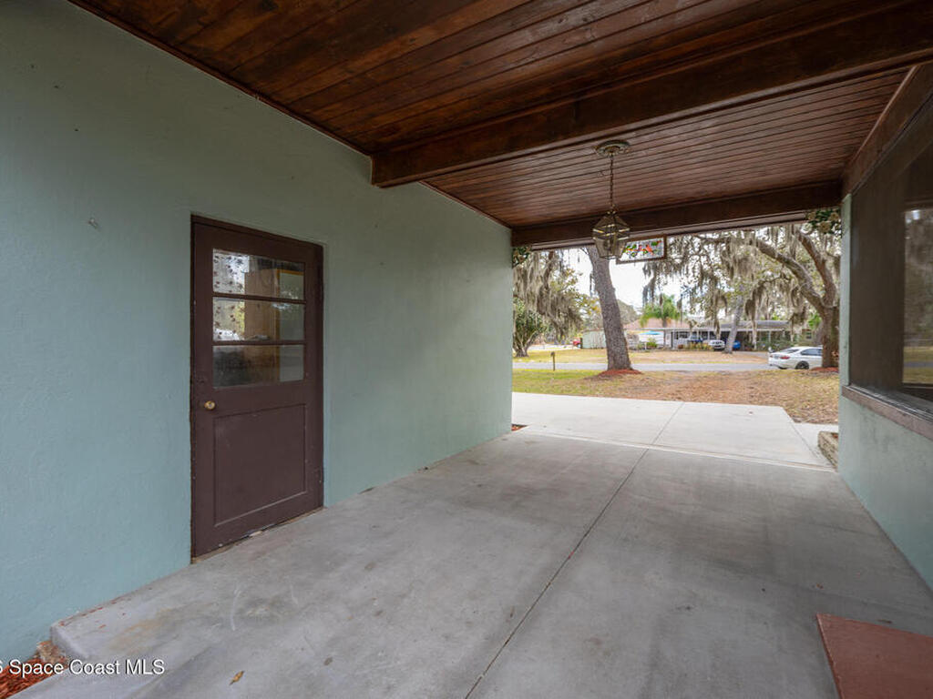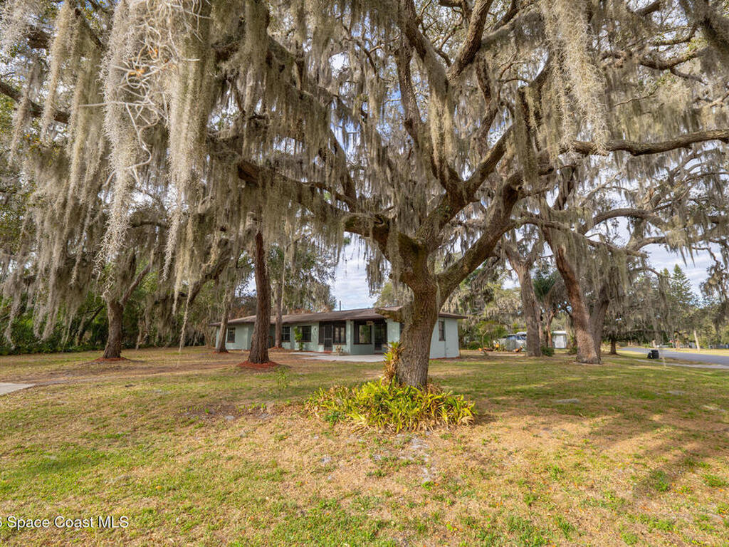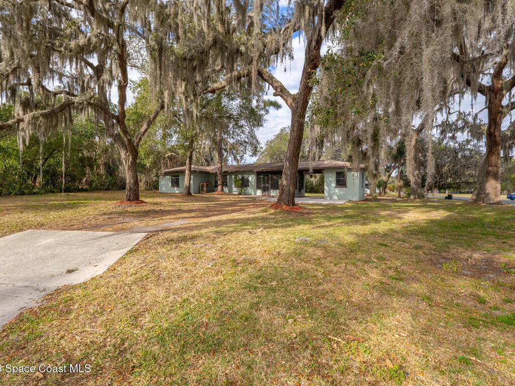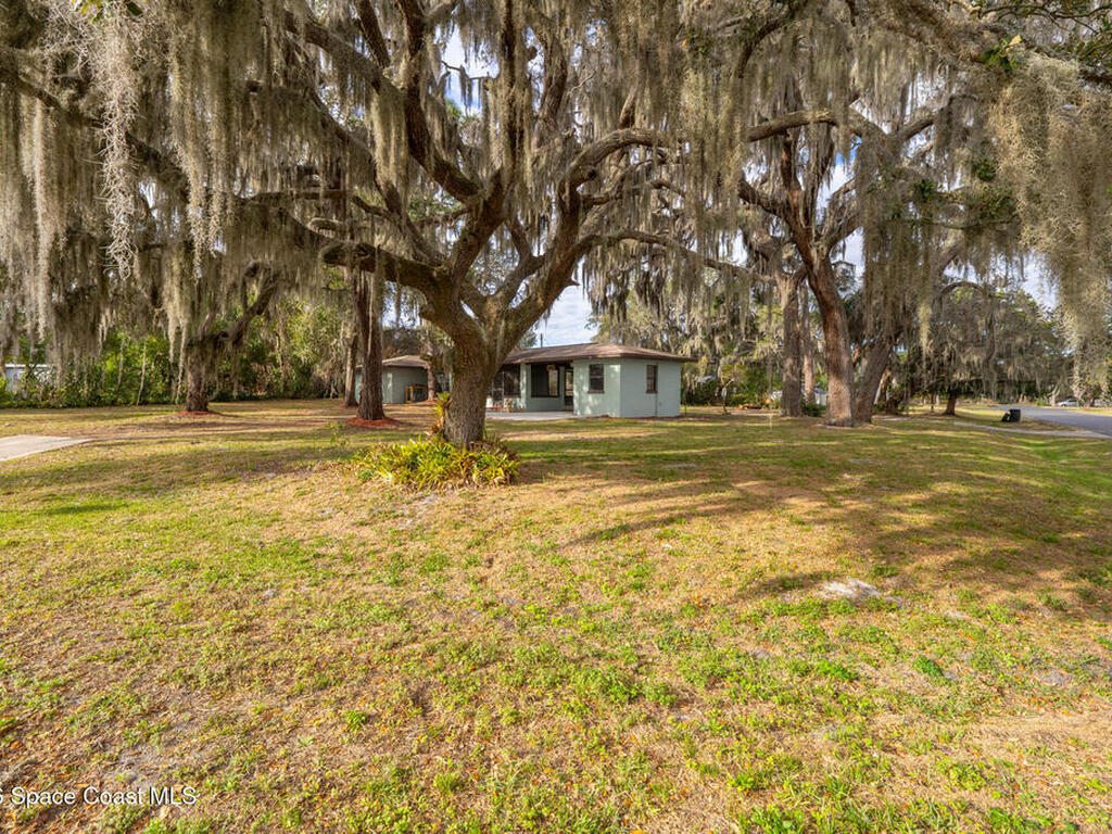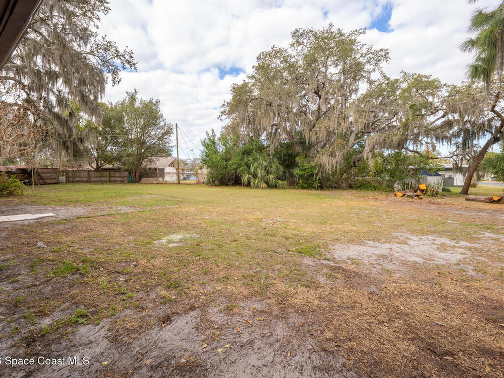 Looking for a beautiful private sanctuary of a home? This 2 bedroom 1 1/2 bath sits on a corner half acre home site in the middle of Titusville. New (2023) A/C, water heater, roof, windows, electric panel 200 AMP and attic insulation. The main bathroom just received a new shower and plumbing fixtures plus the main sewer line from street to house was just replaced.. Kitchen also includes a new microwave, stove and refrigerator. Luxury vinyl flooring in the main area and kitchen, tile in the bedrooms. Plenty of storage space in the huge laundry room.. Check out the screened in porch! Tongue and groove cedar compliment the roof for a beautiful Florida vibe! No HOA plenty of room to park your toys!!!