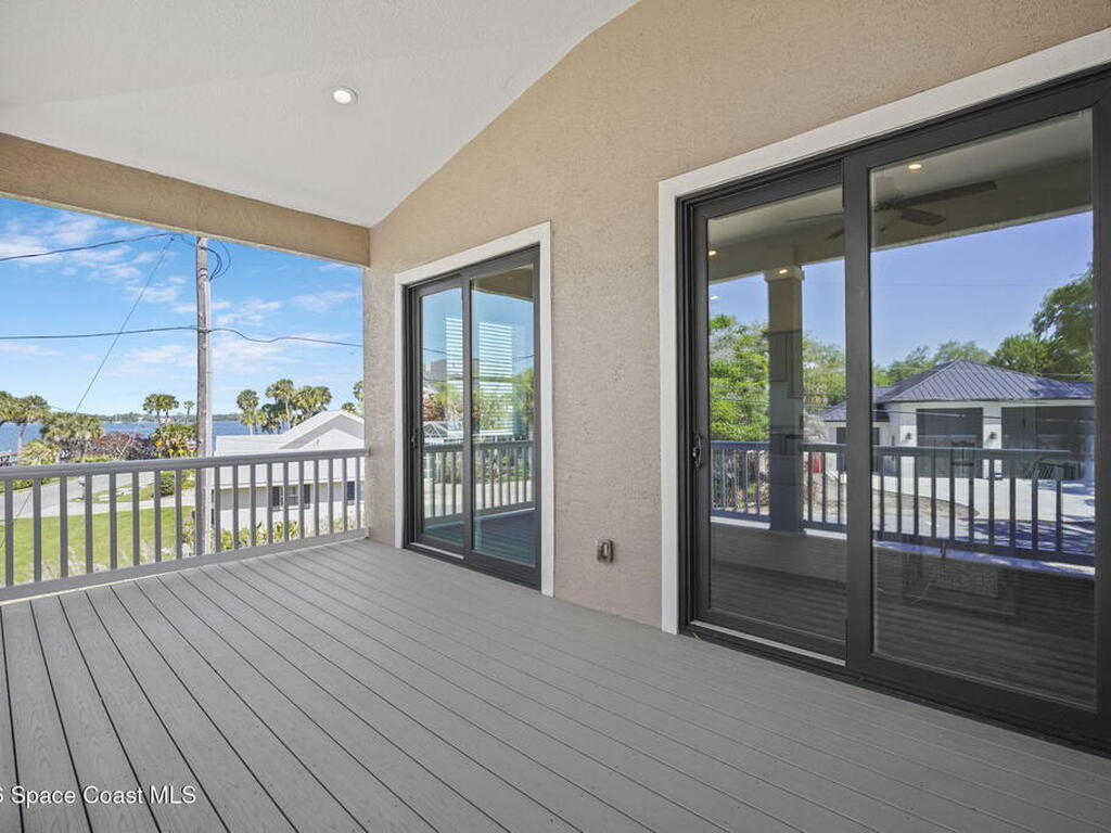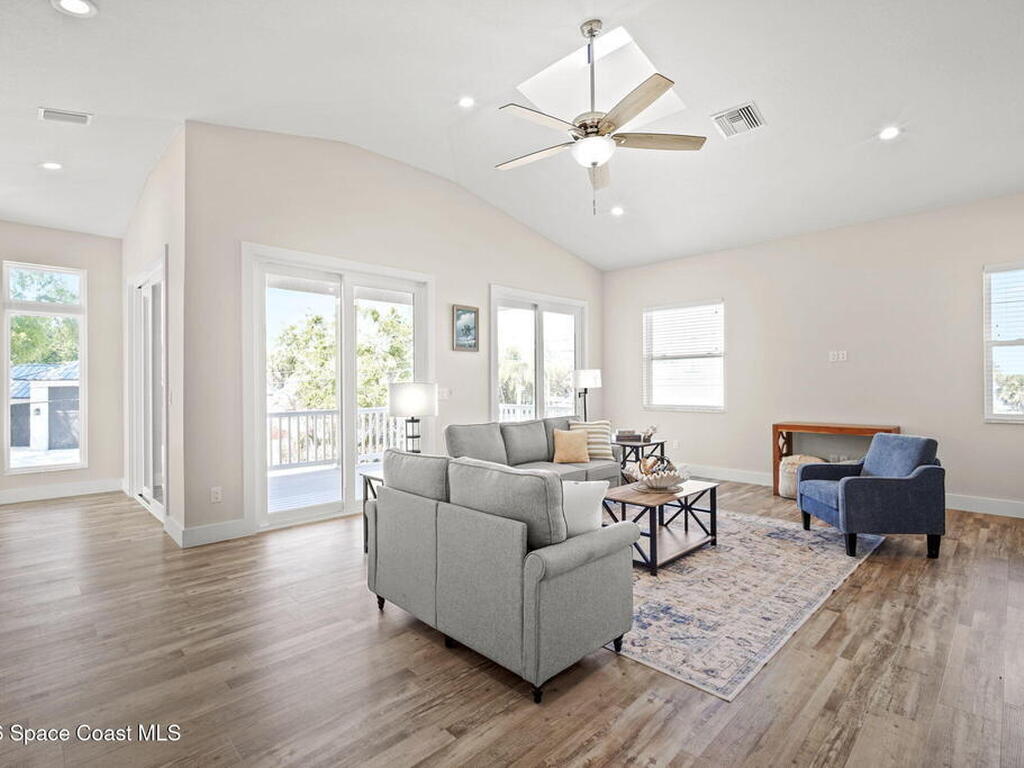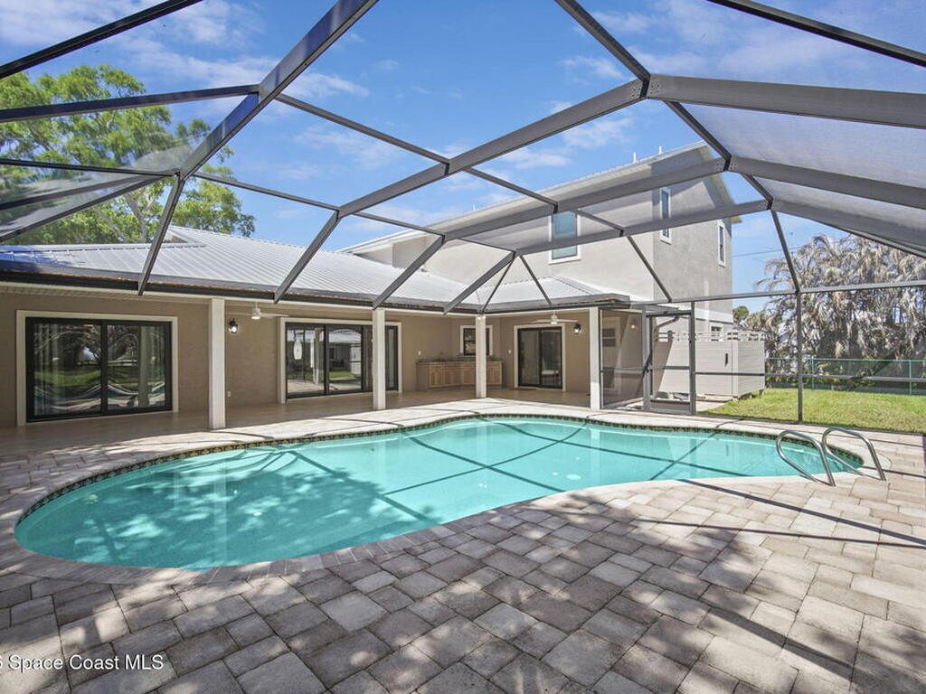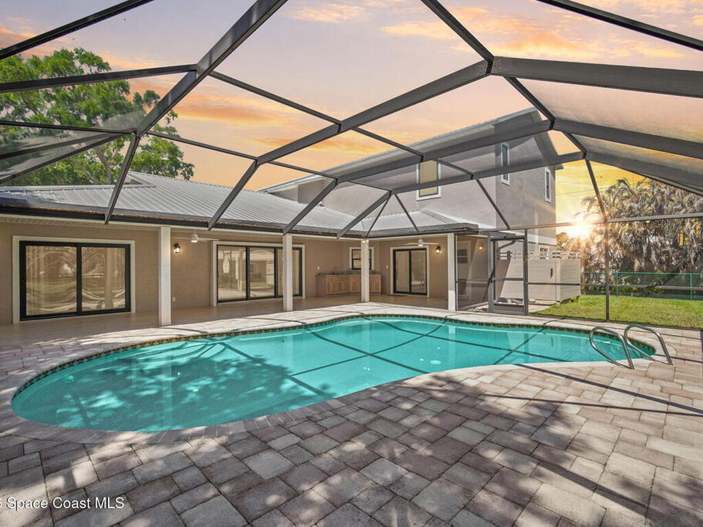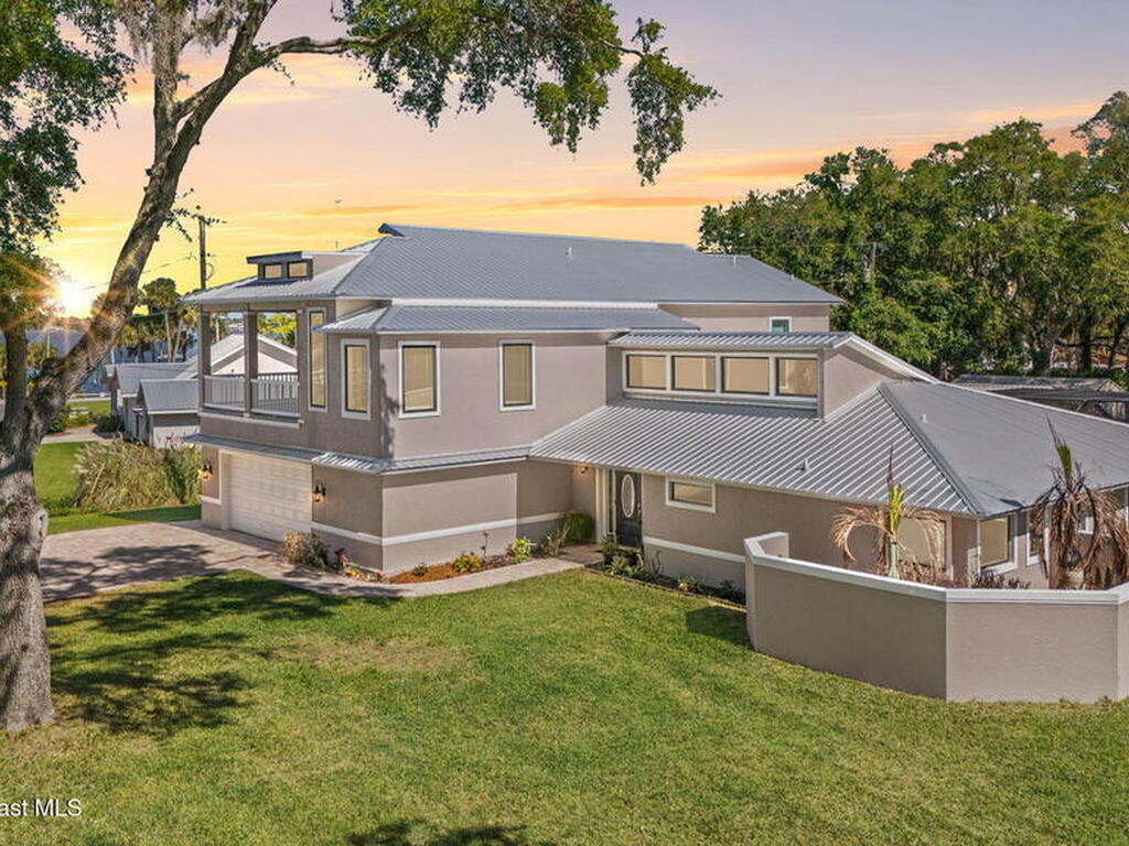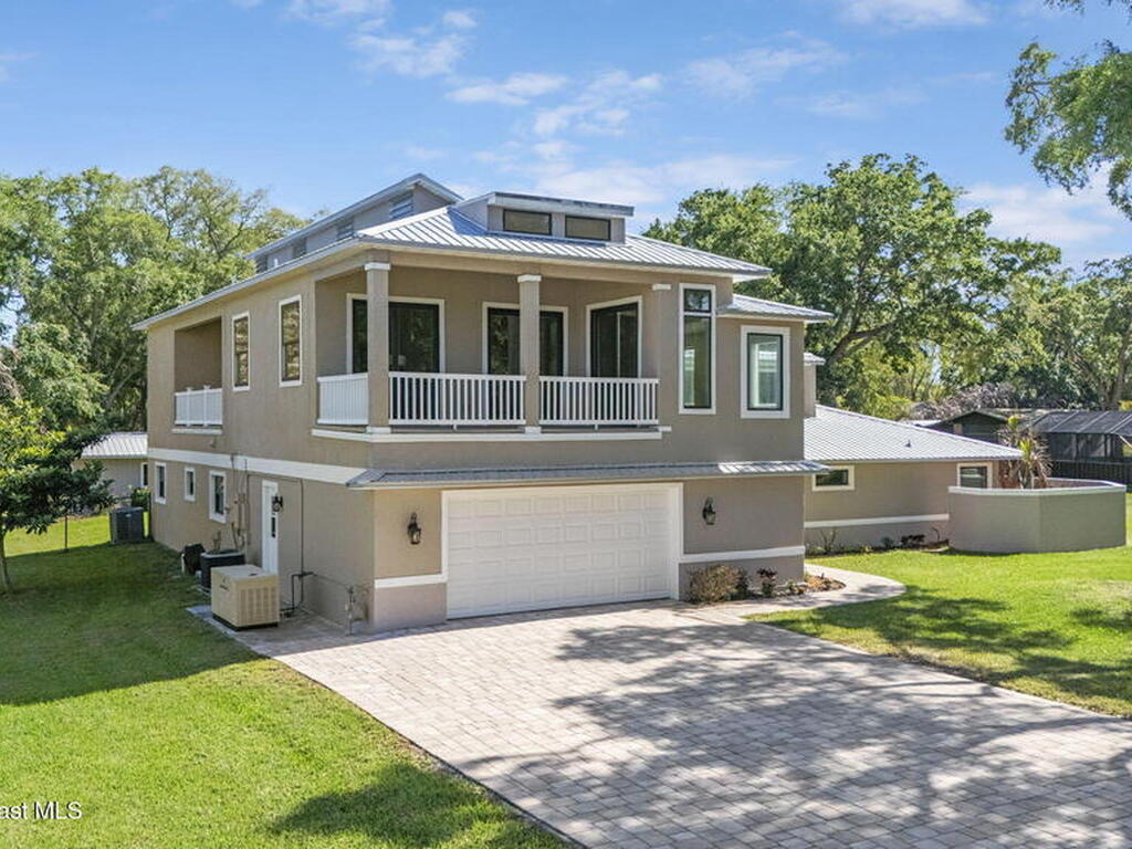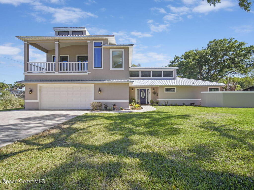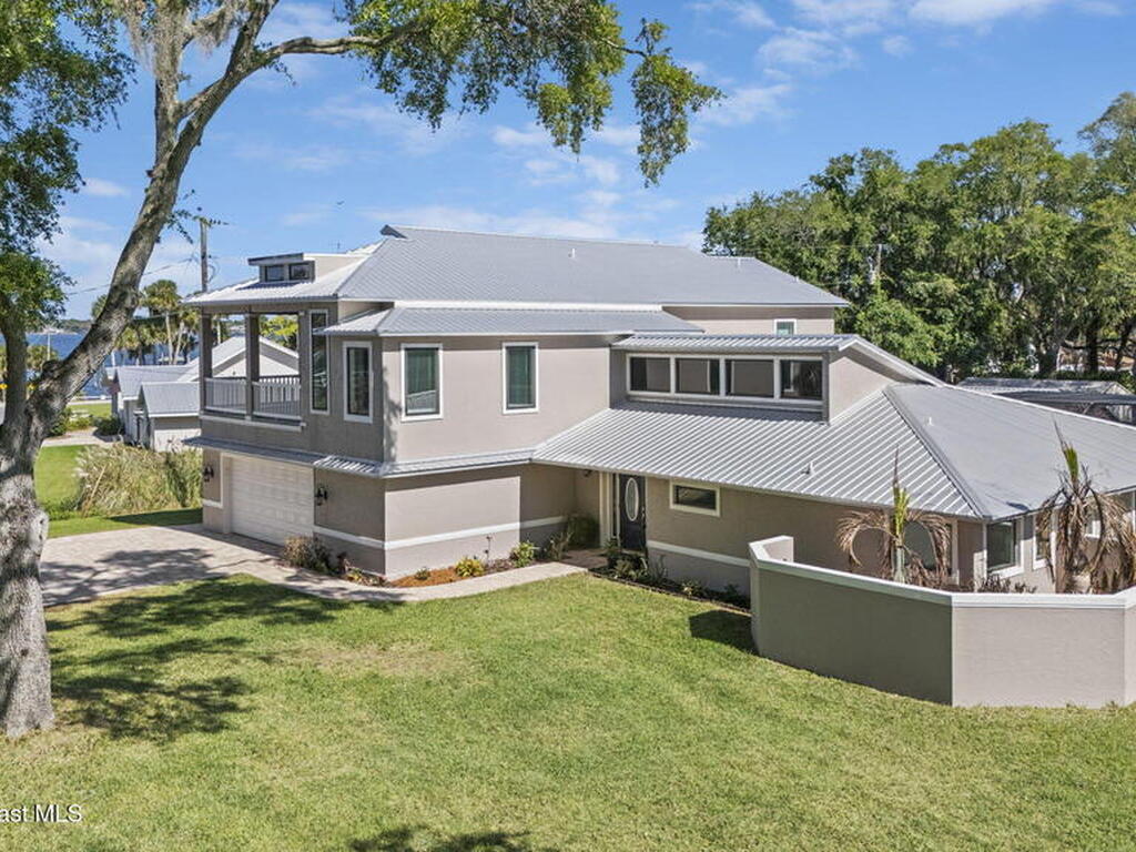 This completed renovated home flows beautifully with an open floorpan. It is an elevated concrete block construction home on two parcels totaling just under one acre, offering optimal location just off Rockledge Drive and expansive views of the Indian River. This versatile property features dual master suites--one downstairs and one upstairs--along with laundry rooms on both levels for added convenience. Enjoy multiple living spaces including a large upstairs loft with kitchenette and two private decks. Outdoor amenities include a screened pool, oversized covered porch, outdoor shower, and a fenced pet area. Parking and storage are abundant with two attached garages plus two detached garage spaces. Additional highlights include a 2019 metal roof and updated AC systems (2019 & 2025). A rare opportunity combining space, functionality, and waterfront lifestyle--schedule your private showing before it's gone.
