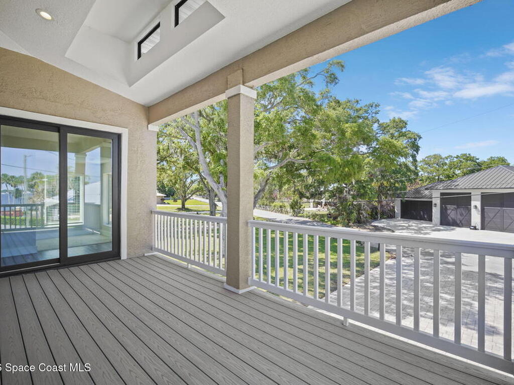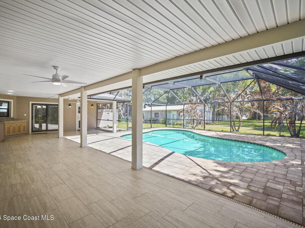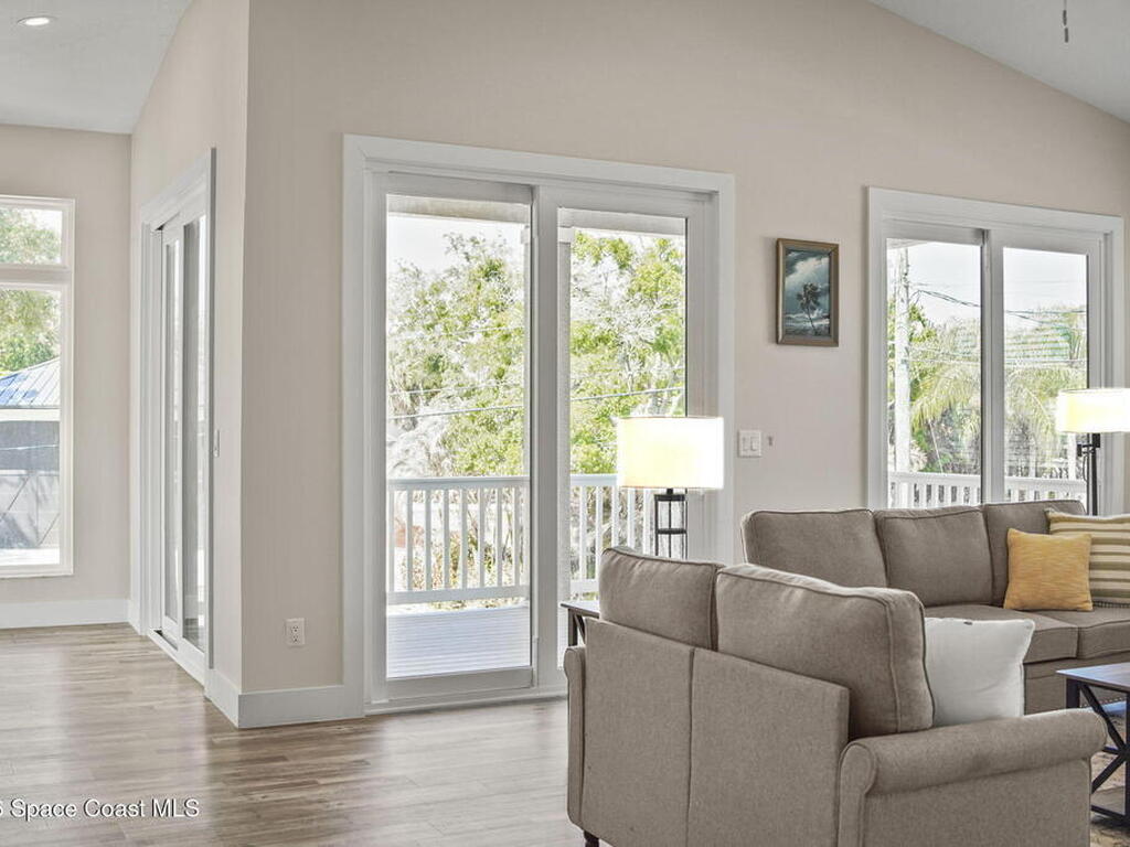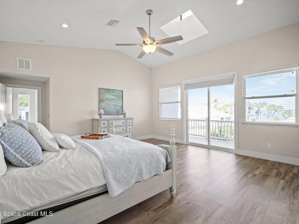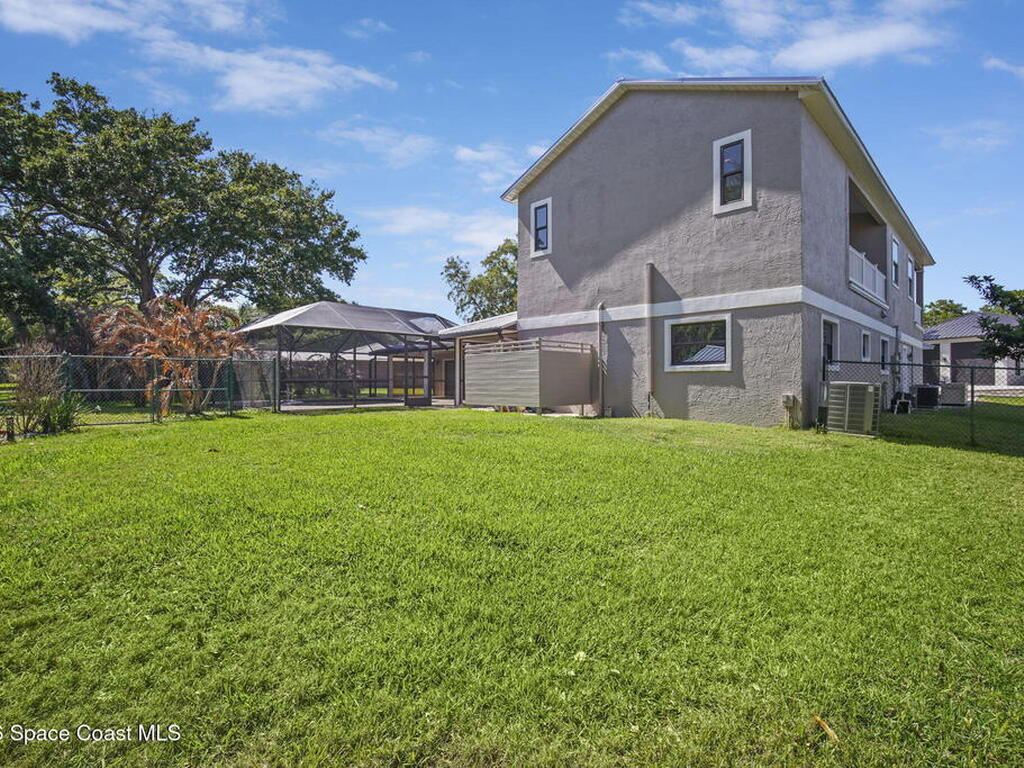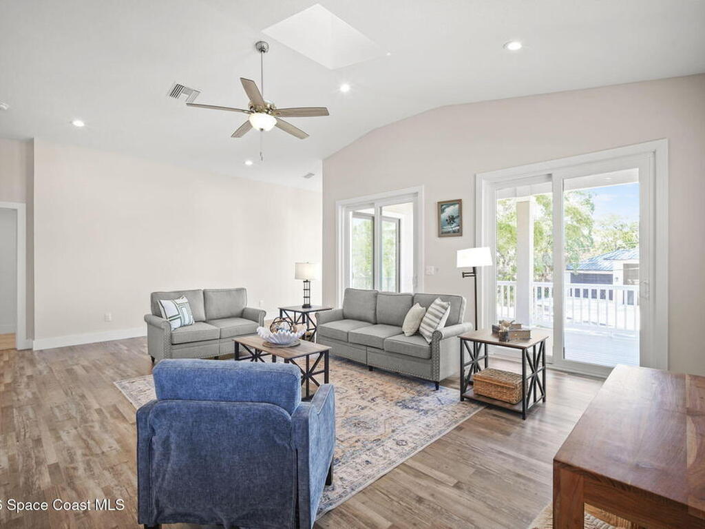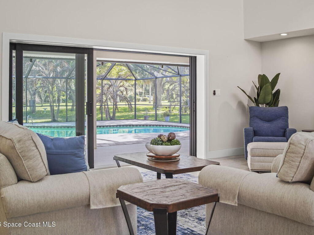 This completed renovated home flows beautifully with an open floorpan. It is an elevated concrete block construction home on two parcels totaling just under one acre, offering optimal location just off Rockledge Drive and expansive views of the Indian River. This versatile property features dual master suites--one downstairs and one upstairs--along with laundry rooms on both levels for added convenience. Enjoy multiple living spaces including a large upstairs loft with kitchenette and two private decks. Outdoor amenities include a screened pool, oversized covered porch, outdoor shower, and a fenced pet area. Parking and storage are abundant with two attached garages plus two detached garage spaces. Additional highlights include a 2019 metal roof and updated AC systems (2019 & 2025). A rare opportunity combining space, functionality, and waterfront lifestyle--schedule your private showing before it's gone.