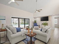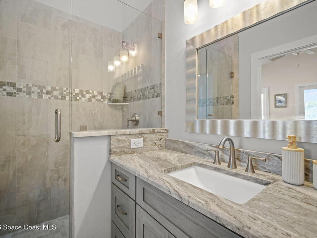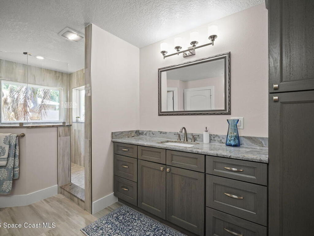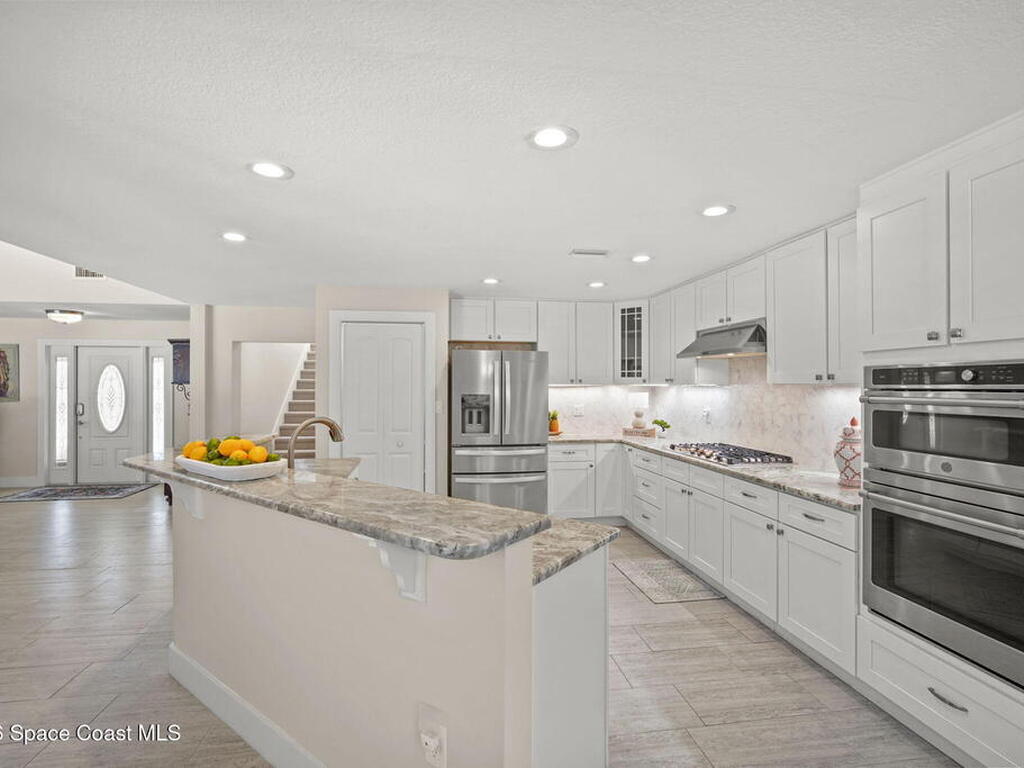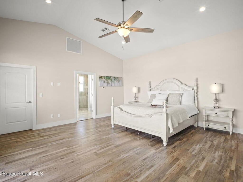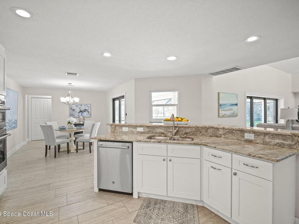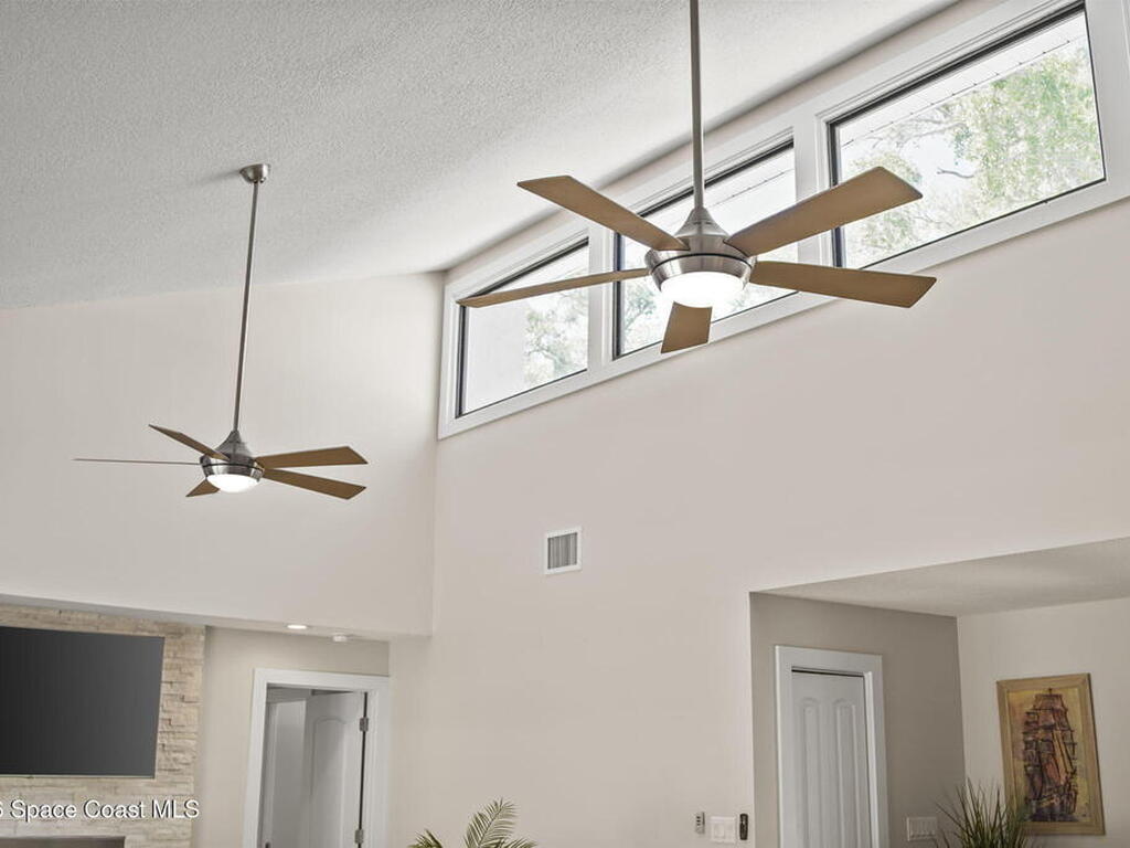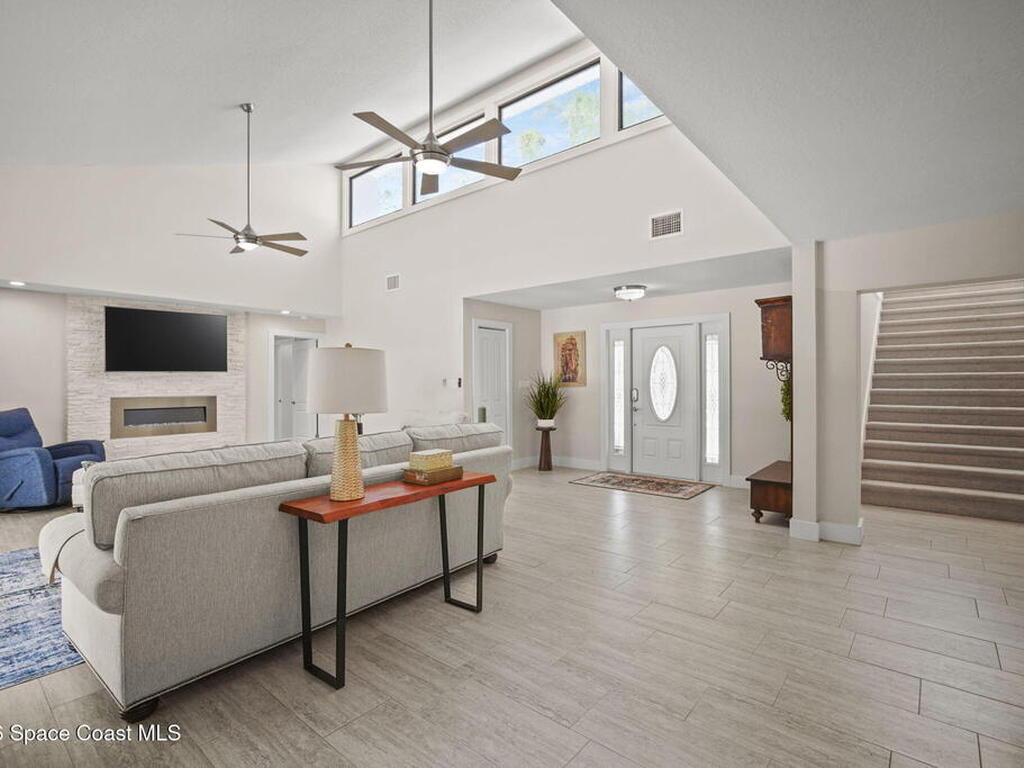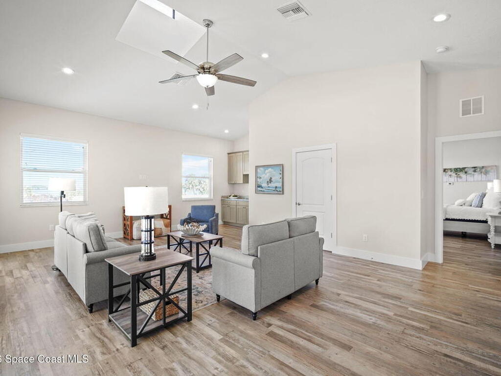 This completed renovated home flows beautifully with an open floorpan. It is an elevated concrete block construction home on two parcels totaling just under one acre, offering optimal location just off Rockledge Drive and expansive views of the Indian River. This versatile property features dual master suites--one downstairs and one upstairs--along with laundry rooms on both levels for added convenience. Enjoy multiple living spaces including a large upstairs loft with kitchenette and two private decks. Outdoor amenities include a screened pool, oversized covered porch, outdoor shower, and a fenced pet area. Parking and storage are abundant with two attached garages plus two detached garage spaces. Additional highlights include a 2019 metal roof and updated AC systems (2019 & 2025). A rare opportunity combining space, functionality, and waterfront lifestyle--schedule your private showing before it's gone.