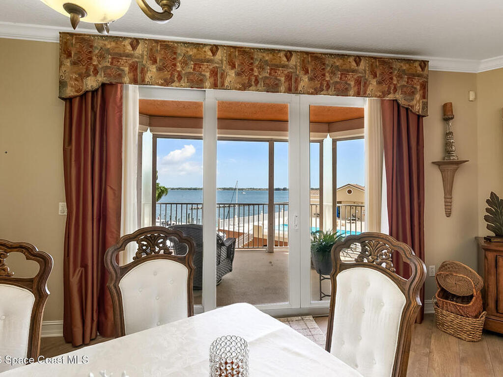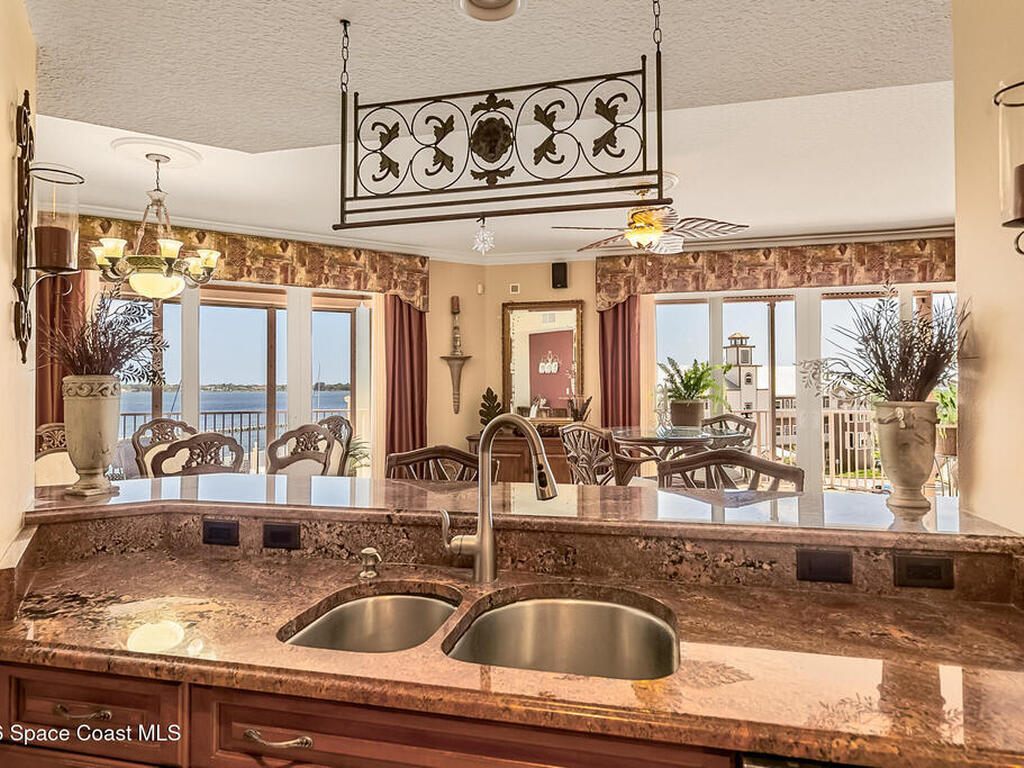 Exquisite Whitley Bay CORNER Unit #406 with direct Indian Riverfront views from a large balcony -- enjoy East/NE exposures plus north & south vistas overlooking the Intracoastal Waterway, marina, and pool. This luxurious 2, 869 sq ft condo features a gourmet kitchen with stainless appliances, granite countertops, and moveable center island, ideal for entertaining. Three bedrooms, all with ensuite baths, plus a half powder room. Bathrooms upgraded with new cabinets, granite, and framed mirrors. Electric hurricane shutters with battery backup, plantation shutters, and designer window treatments convey (excluding front guest bedroom). Amenities include a large clubhouse with deck, kitchen, seating, and gas grill, high-speed internet, private one-car garage with storage, extra parking, fitness center, sauna, and heated rooftop pool overlooking the marina. Truly luxurious yet comfortable Florida waterfront living.