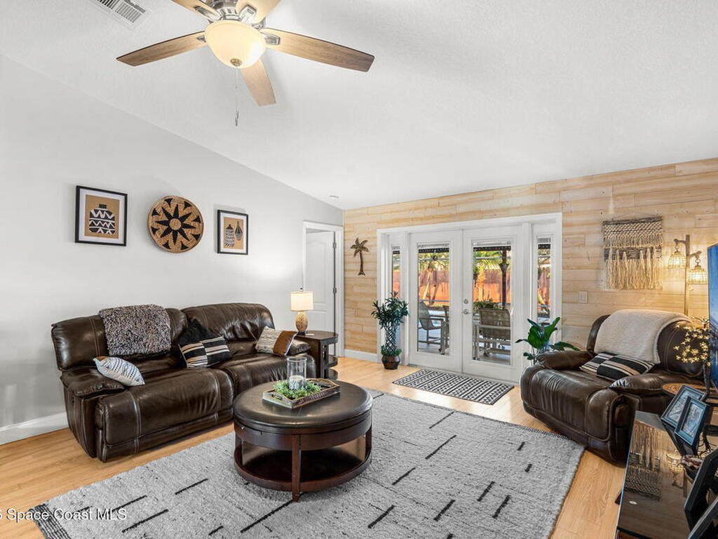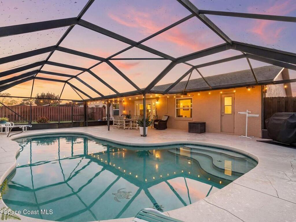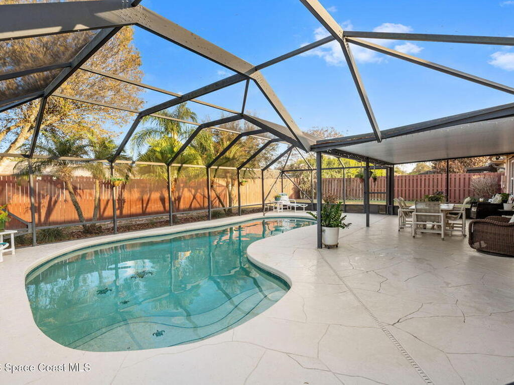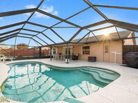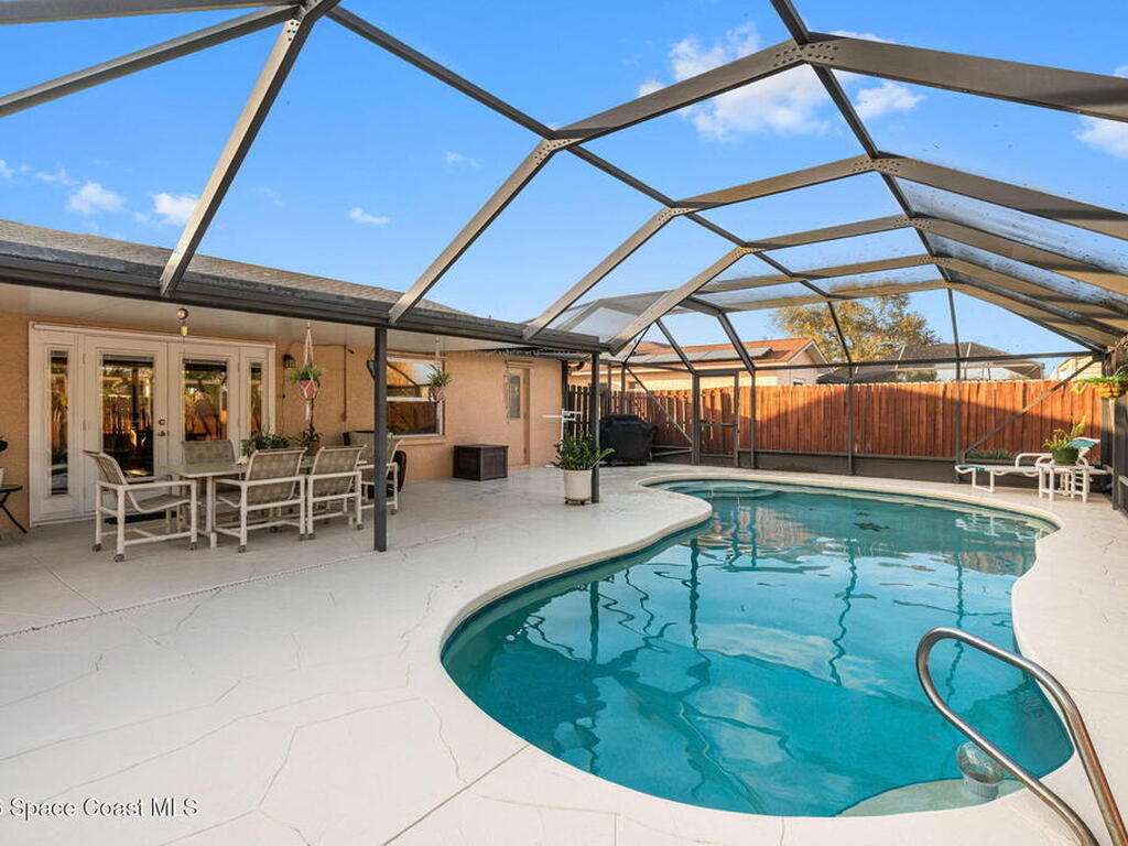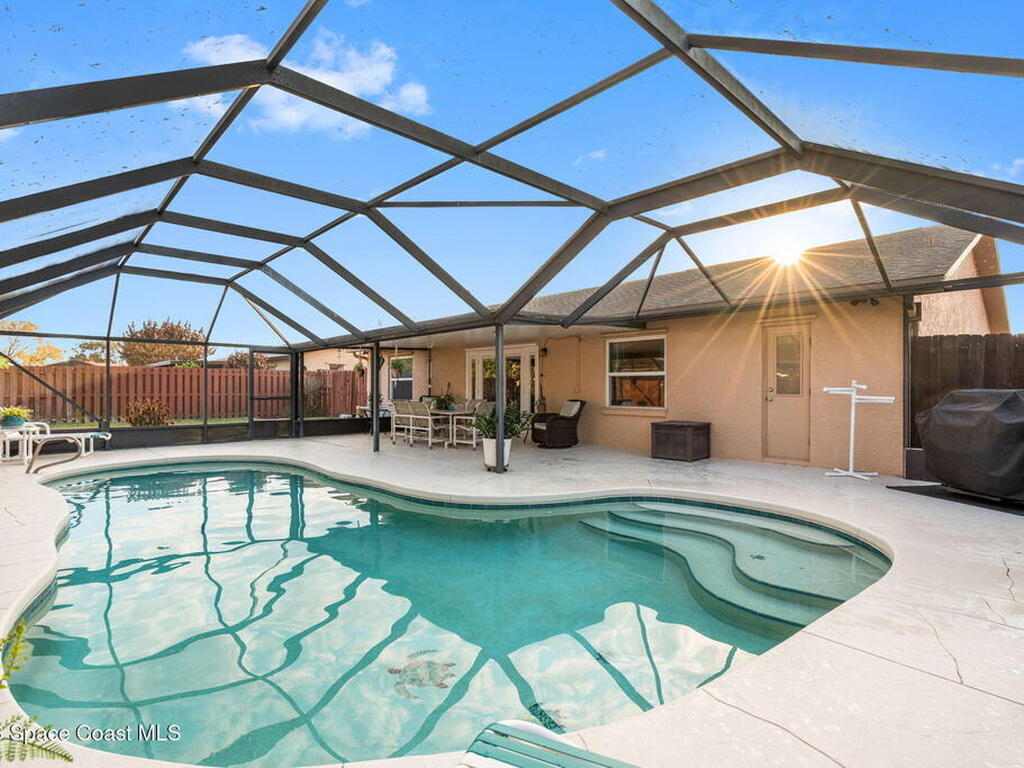 Proudly offered by the original owner, this well-maintained home is located in a highly desirable neighborhood and showcases years of thoughtful updates. Major improvements include a newer roof (2018), impact-rated garage door (2020), updated windows and French doors (2016), and a gas water heater (2019). Inside, you'll find laminate flooring throughout, vaulted ceilings, newer ceiling fans, and updated interior doors with a custom closet system. The kitchen features thoughtfully designed cabinetry with soft-close drawers, pull-out pantry shelving, quartz countertops, and a modern glass backsplash. Bathrooms have been recently updated with a clean, contemporary feel. Enjoy outdoor living with a screened enclosure and fiberglass pool. Gas is available for the kitchen, and the A/C has been recently checked for added peace of mind.