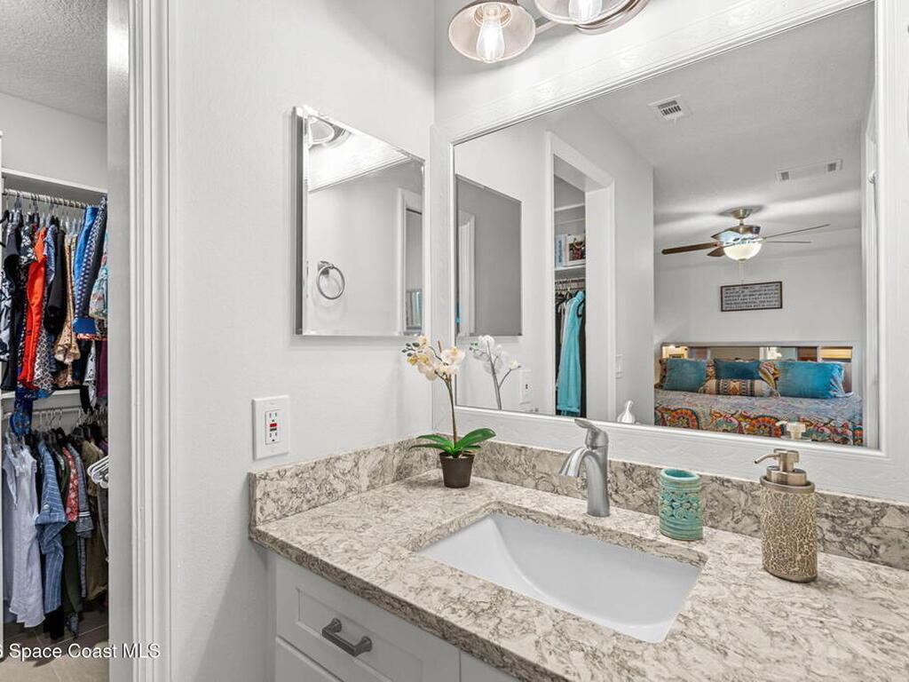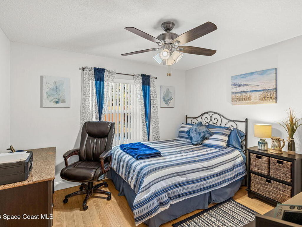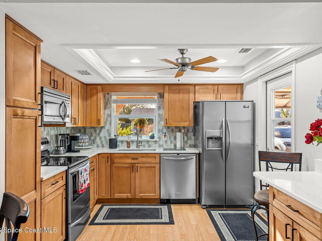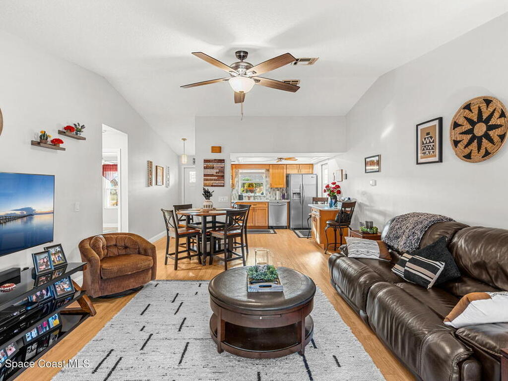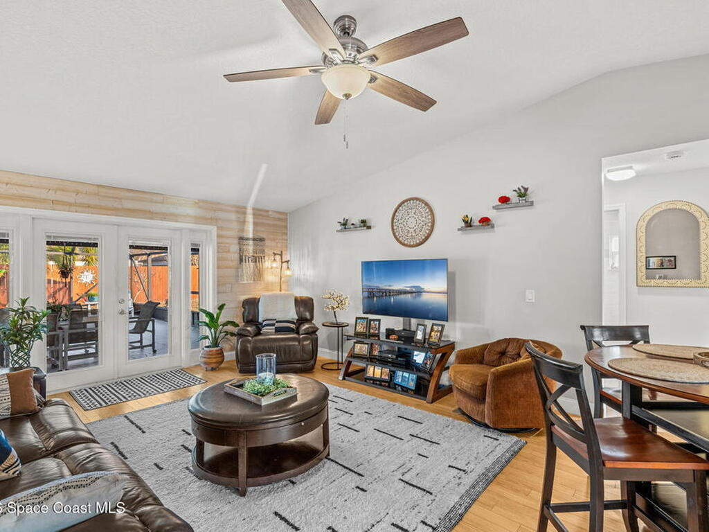 Proudly offered by the original owner, this well-maintained home is located in a highly desirable neighborhood and showcases years of thoughtful updates. Major improvements include a newer roof (2018), impact-rated garage door (2020), updated windows and French doors (2016), and a gas water heater (2019). Inside, you'll find laminate flooring throughout, vaulted ceilings, newer ceiling fans, and updated interior doors with a custom closet system. The kitchen features thoughtfully designed cabinetry with soft-close drawers, pull-out pantry shelving, quartz countertops, and a modern glass backsplash. Bathrooms have been recently updated with a clean, contemporary feel. Enjoy outdoor living with a screened enclosure and fiberglass pool. Gas is available for the kitchen, and the A/C has been recently checked for added peace of mind.