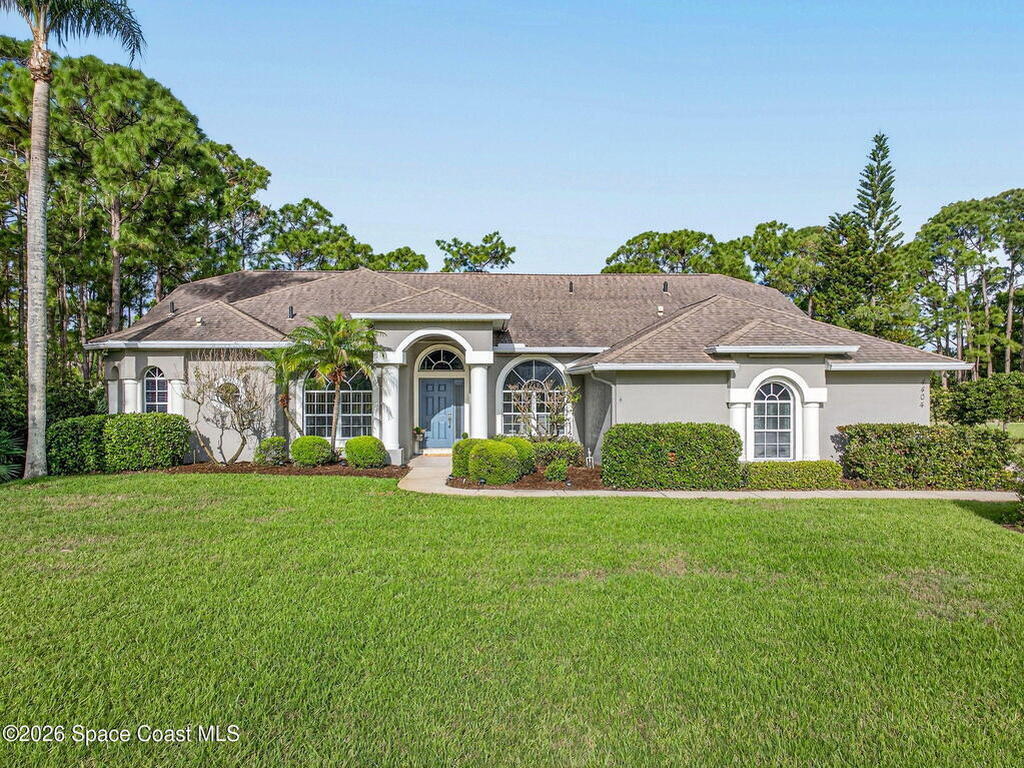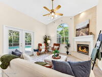 WINDOVER FARMS POOL HOME ON HALF ACRE ON A LAKE! Arrive via the extended driveway w plenty of parking & a spacious front yard. Take in the outside view as you enter, creating an immediate sense of openness & relaxation. The entrance layout features a formal dining room & living room ideal for reading or unwinding. The kitchen offers a beautiful bay window w clear views of the sparkling pool, lake & mature trees, ample cabinetry, newer ss appliances & opens to the family room, perfect for entertaining w family & guests or keeping an eye on the kids. This split floor plan provides privacy, w two bedrooms & a full bath on one side, while the primary suite is tucked away on the opposite side. The spacious primary bedroom features 2 walk-in closets & an en-suite bath w dual vanities, walk-in shower & jetted tub. A smaller front bdrm makes an ideal home office or flex space. Step outside to the screened pool & covered porch. Space, privacy, & a true connection to nature in Windover Farms!