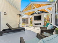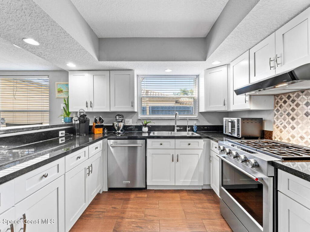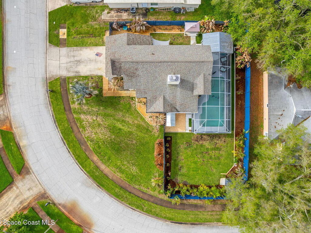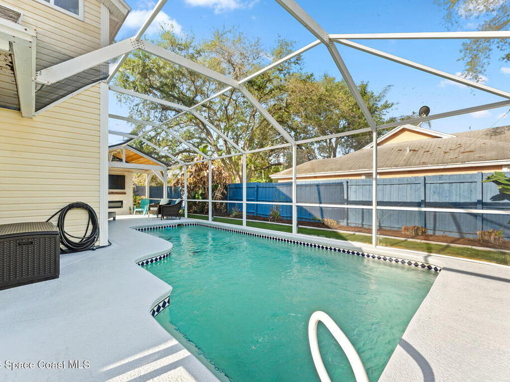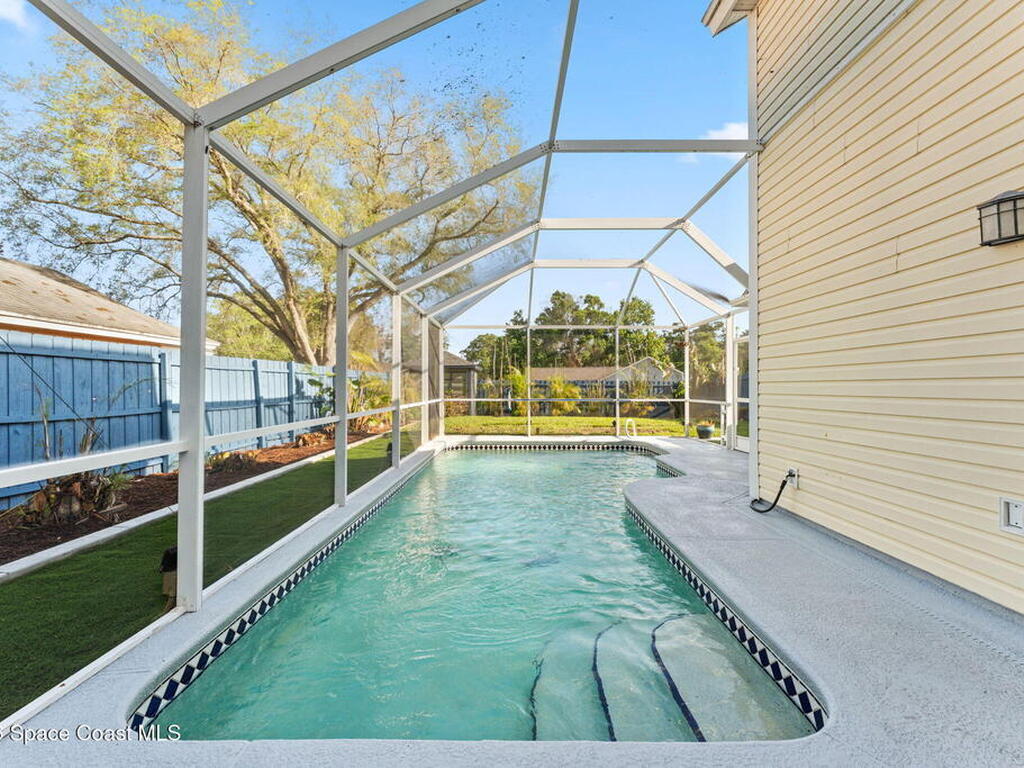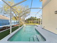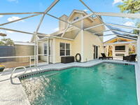 Stunning upgraded 3BR/2BA two-story pool home with 2-car garage on a premium corner lot. This beautifully maintained residence features a chef-inspired kitchen with brand-new KitchenAid appliances, natural gas (range & dryer), and a whole-house water softener with reverse osmosis system. Recent upgrades include a hurricane-rated garage door, new opener, updated electrical panel with transfer switch and new HVAC 2025. Step into your private outdoor retreat with a sparkling pool, custom-built TV entertainment area, partial turf, concrete curbing, and elegant landscape and soffit lighting. Additional highlights include two storage sheds on slabs, remodeled half and primary baths, a finished garage with custom workbench and cabinetry, plantation shutters, and a newer front-load Maytag washer. A rare blend of comfort, quality, and refined Florida living. Don't miss this opportunity to make it yours!!