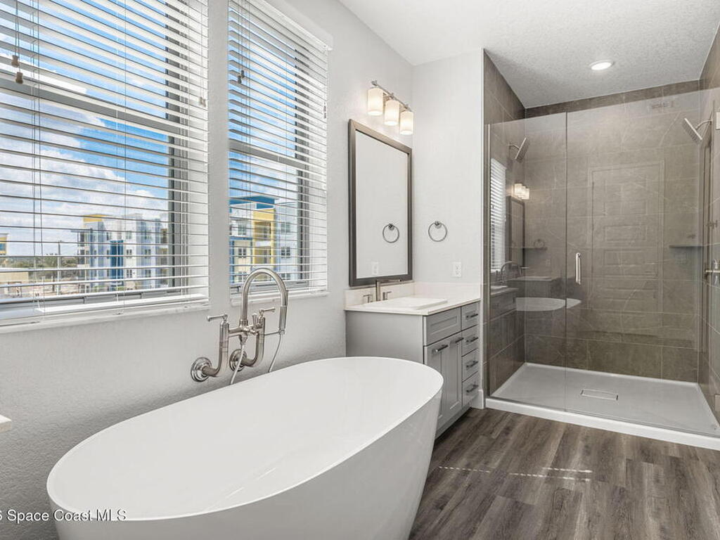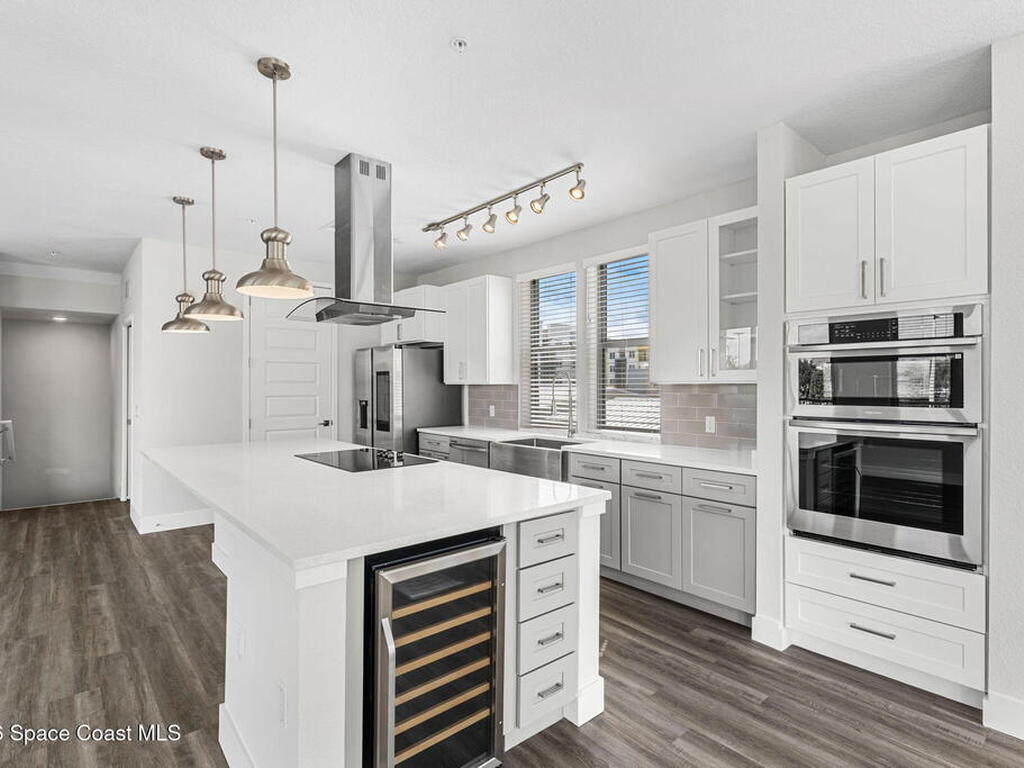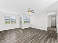 Located in the heart of Viera, this modern 3-story townhome in Addison Square offers stylish design, functional space, and exceptional convenience. The second floor features an open-concept main living area filled with natural light from floor-to-ceiling windows, creating a bright and inviting feel. The kitchen is well-appointed with quartz countertops and wood cabinetry, and the second level also includes a private balcony, half bath, and laundry room. The third floor is dedicated to a spacious and private owner's suite with large closets. On the first floor, you'll find a second bedroom suite and an oversized 3-car garage, including a dedicated golf cart garage. Enjoy the Viera lifestyle with nearby shopping, dining, and everyday conveniences, plus access to the amenity center with a pool and movie theater.