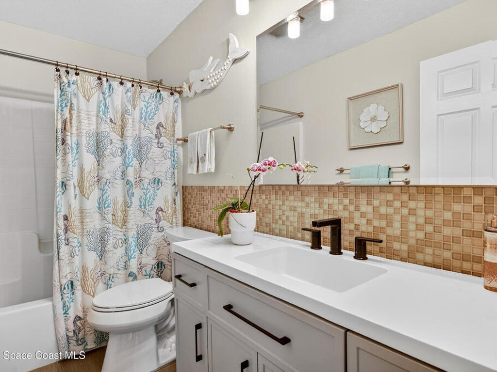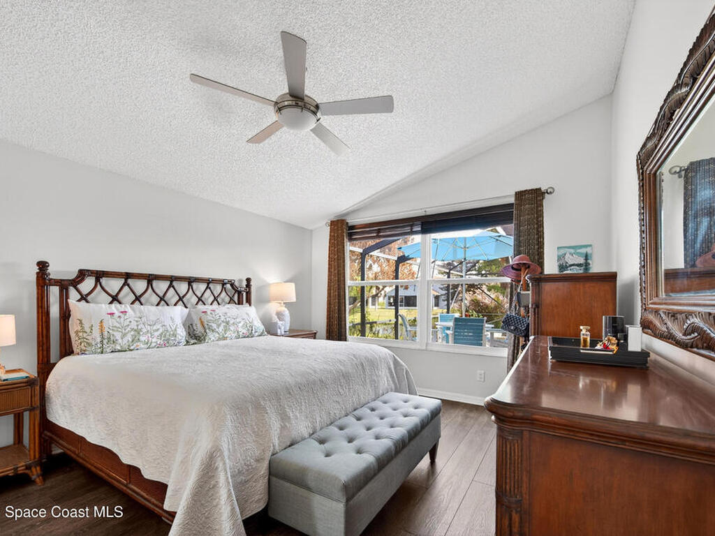 This exceptional LAKEFRONT/ POOL Suntree home is now AVAILABLE! Newly installed impact windows & slides , this property boasts a range of exciting updates, including new light fixtures, flooring, and bathrooms brand new exterior paint . The impressive salt system pool and spa, complete with color-changing lights and a classic paver deck, is the perfect spot to unwind, while the pool heater ensures year-round enjoyment. The stunning water view and beautifully appointed kitchen, featuring granite countertops, high-end appliances, and a gorgeous tile backsplash, are sure to delight. The primary bedroom suite has been thoughtfully updated with double vanities, stylish tile, and a spacious walk-in closet. Roof installed in 2016 and a charming paver driveway, this home is truly move-in ready. Its prime location, just 15 minutes from PAFB and the beach, and surrounded by golf courses. Ammenities includes: club house, tennis courts, playground , gym and basketball court!