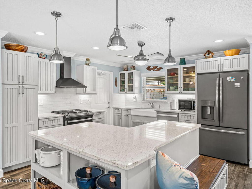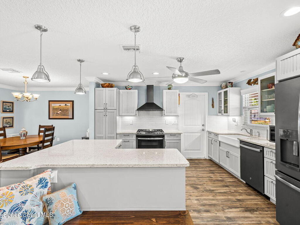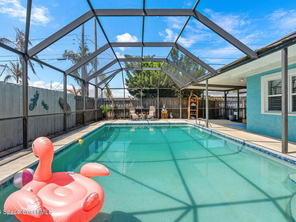 This beautifully updated 3 BR home on Merritt Island has everything you're looking for! Key features include:- Durable metal roof - Replaced cast iron plumbing for peace of mind - Modernized electrical system - Chef's kitchen w/granite countertops, stainless steel appliances, gas stove with hood and griddle, soft grey cabinetry, farmhouse sink - Updated baths for contemporary comfort - Tankless WH- Spacious great room with stunning stone fireplace - Screened and fenced lanai and pool area, perfect for relaxing or entertaining - Wider driveway designed for boat and trailer parking, plus jet skis and more - Attached garage providing ample storage and parkingFurniture is negotiable outside of the asking price, making it move-in ready or customizable to your taste. Ideal for full-time adult living, a family with local schools nearby, or as an investment--No HOA or rental restrictions! Possibilities are endless with this versatile home!Schedule a private showing now!!