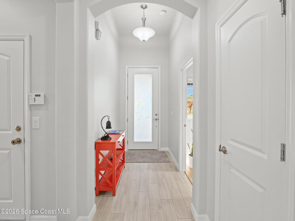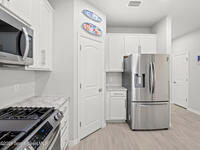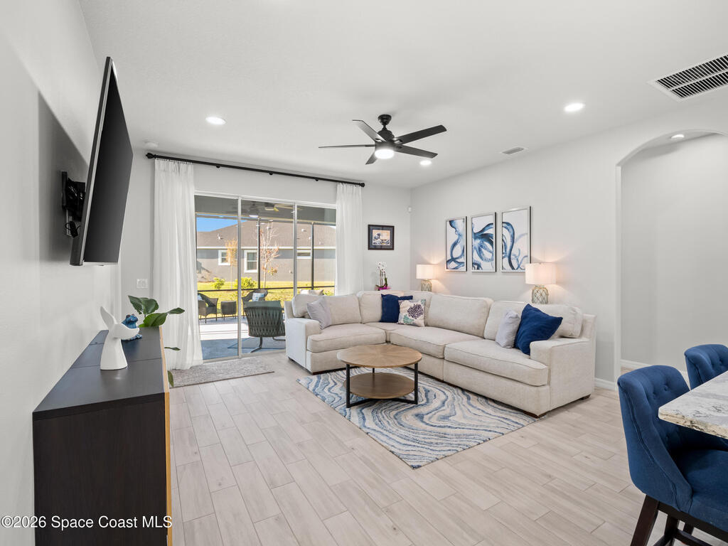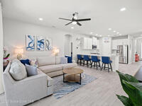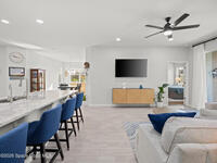Just listed in Sendero Cove, this like-new home shows like a model and offers the best of Viera living. Featuring four bedrooms, three bathrooms, and a two-car garage, the home welcomes you with gorgeous wood-grain tile flooring throughout the main living areas and luxury vinyl plank flooring in all bedrooms. The stunning designer kitchen includes solid wood cabinets, quartz countertops, a large breakfast bar, and a pantry enhanced with custom storage shelving. The spacious living room and separate dining area create an ideal layout for both everyday comfort and entertaining. The large primary suite is a true retreat, offering an updated walk-in shower with modern tile, dual vanities, a private water closet, and a huge custom walk-in closet. The split floor plan provides excellent privacy, and one of the secondary bedrooms features ensuite access--perfect for guests or multigenerational living. This home is loaded with thoughtful upgrades: