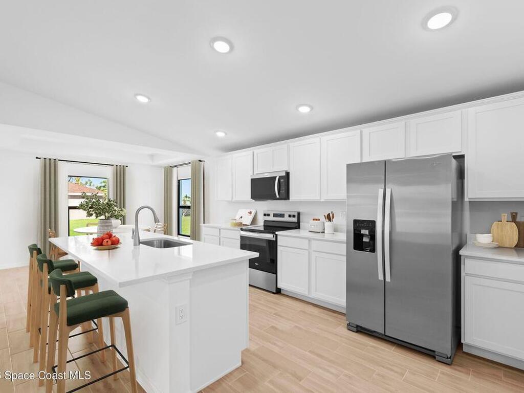 NEW CONSTRUCTION WITH WARRANTY! *Estimated delivery June 2026.* The Palm offers 1, 550 square feet of thoughtfully designed living space. The spacious Great Room with its vaulted ceiling flows effortlessly to the private covered lanai--ideal for indoor-outdoor living and entertaining. At the heart of this open layout, the kitchen features a freestanding island, walk-in pantry, and designer cabinetry, opening to a bright dining area with a tray ceiling and abundant natural light. The primary suite includes a generous walk-in closet and a private bath with dual vanities, a tiled shower, and convenient linen storage. Additional highlights include upgraded plank tile throughout the main living areas, designer cabinetry & quartz counters in the kitchen and baths, hurricane-impact windows and doors, stainless steel kitchen appliances, and an attached two-car garage. Pictures, renderings, & virtual tour are of similar home & are used for display purposes only.