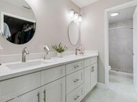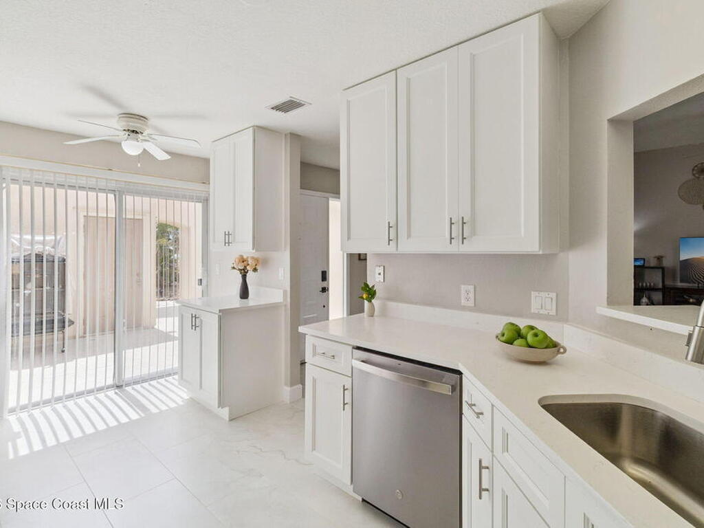 The home has been completely redone inside with a brand new kitchen featuring quartz countertops, updated cabinetry, and a clean modern look that feels much more high-end than expected. Both bathrooms have also been fully renovated with new tile, new vanities, and updated finishes. Brand-new tile flooring and baseboards run throughout the entire home, creating a consistent feel from the moment you walk in. One of the biggest surprises when you step inside is how much larger the home feels in person. Being a corner unit makes a huge difference--there's noticeably more natural light than most units here, and the layout feels more open while still offering privacy. The sunroom really stands out with a cedar wood-paneled ceiling and two separate sliding glass doors leading into it. It works perfectly as a second living area, home office, or a bright space to relax. Out back, the unit opens up to a large area of green space, which is not typical at this price point. In the front, there's al