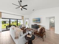 NEW CONSTRUCTION WITH WARRANTY! Estimated delivery June 2026. The St. Augustine blends indoor and outdoor living with a welcoming covered front porch, expansive covered lanai, and a bright, open floor plan. A vaulted ceiling enhances the main living area, connecting the dining room with double windows, kitchen with freestanding island and pantry, and a spacious Great Room with a wall of sliding glass doors for abundant natural light. The split-bedroom layout offers a private primary suite with two walk-in closets and a bath featuring a dual-sink vanity, large linen closet, and tiled shower. Three additional bedrooms provide flexibility for guests, a home office, or hobby space. This home includes quartz countertops in the kitchen and baths, stainless steel appliances, plank tile flooring in main areas, hurricane-impact windows and doors, and more. Pictures, renderings, & virtual tour are of similar home & are used for display purposes only.