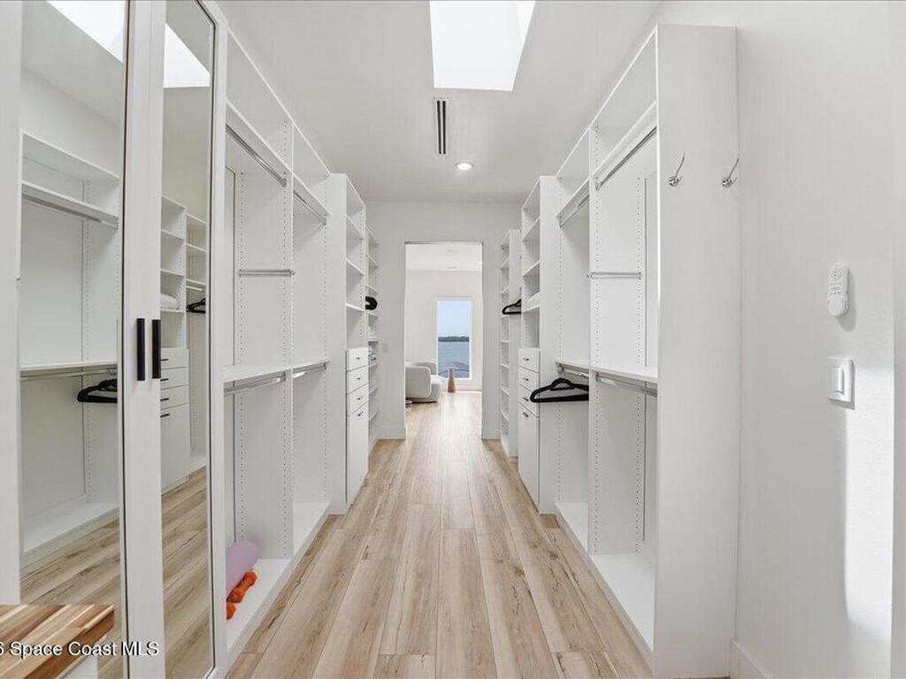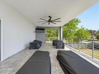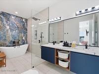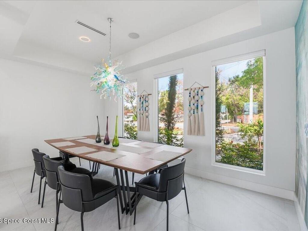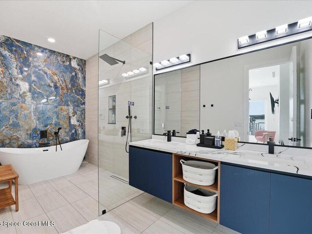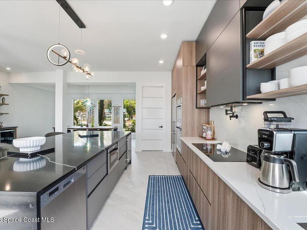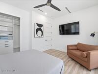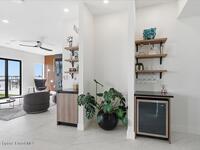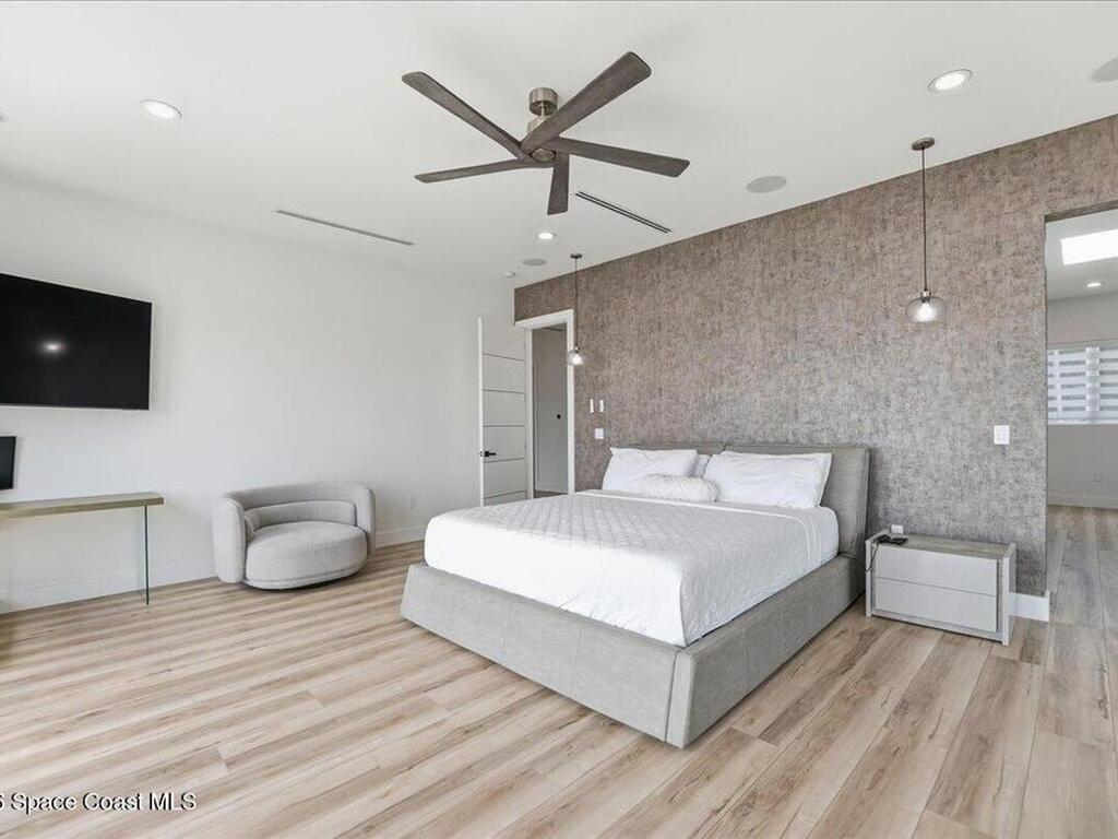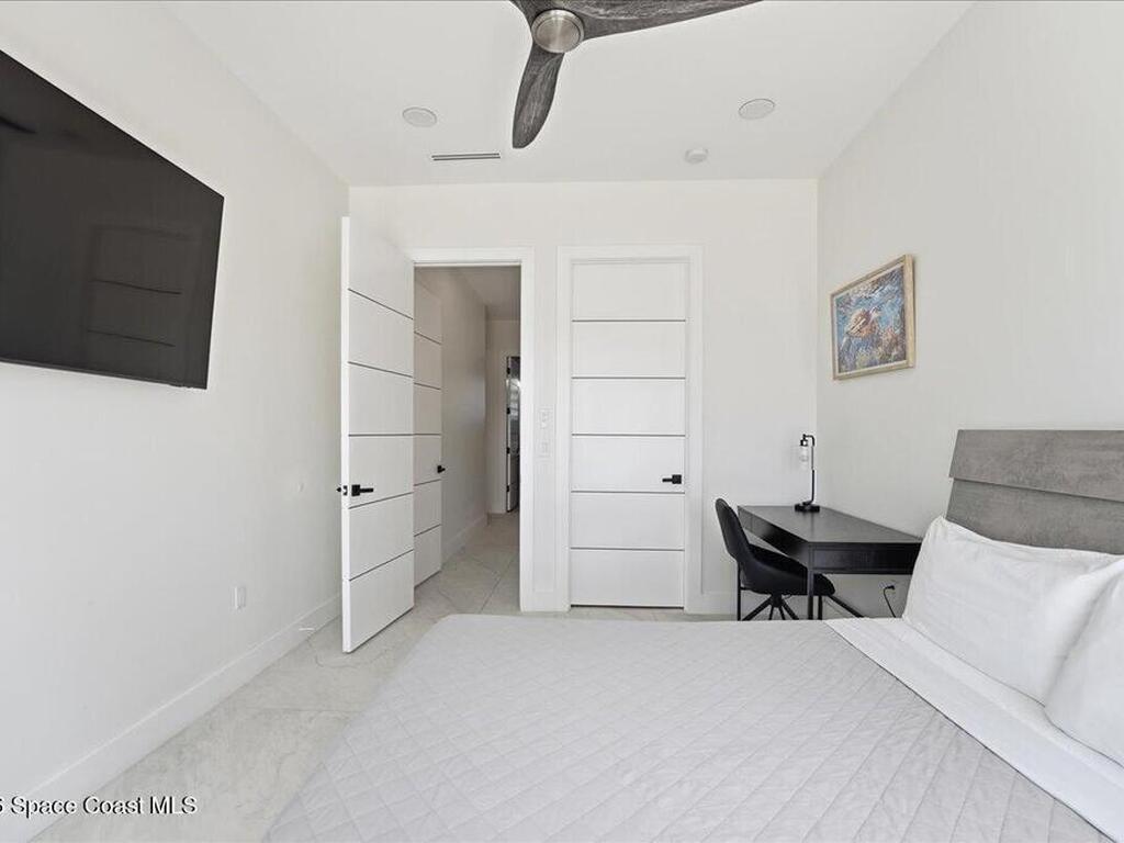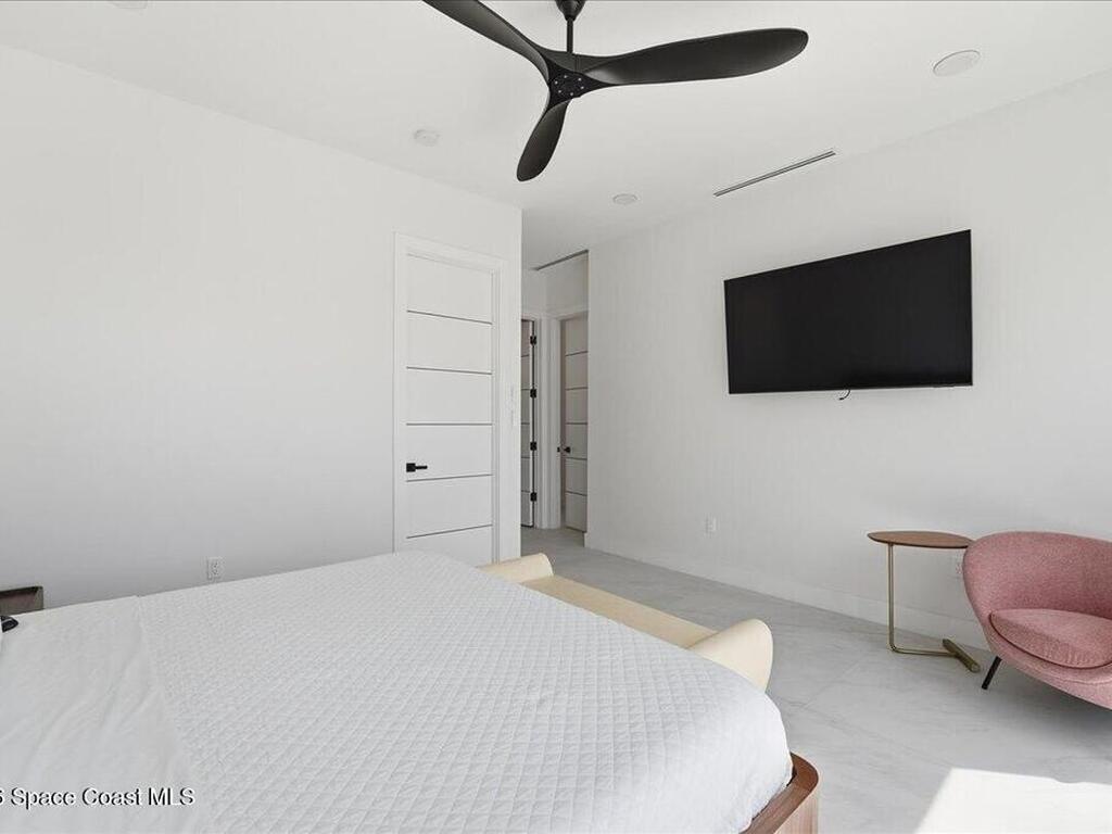 Modern Waterfront Masterpiece on Merritt Island with 151 feet of direct Indian River frontage. This 2024-built two-story home features full concrete block construction, a commercial-grade roof, and high-end modern finishes throughout. Offering 5 bedrooms, 4 full baths, and a 2-car garage, this fully furnished residence is truly turnkey. The designer kitchen, custom built-in closets, smart home features, motorized shades, and smart toilets elevate the living experience. The expansive upstairs primary suite includes a private covered terrace, wraparound closet, and a stunning spa bath with designer tile and luxury shower. Enjoy a covered boat dock with lift, jet ski dock, putting green, and side yard. West-facing balconies capture breathtaking sunsets with views of dolphins and manatees. Located near Cocoa Village with quick access to the Atlantic Ocean, 45 minutes to Orlando International Airport and 1 hour to Disney. Truly one of a kind.