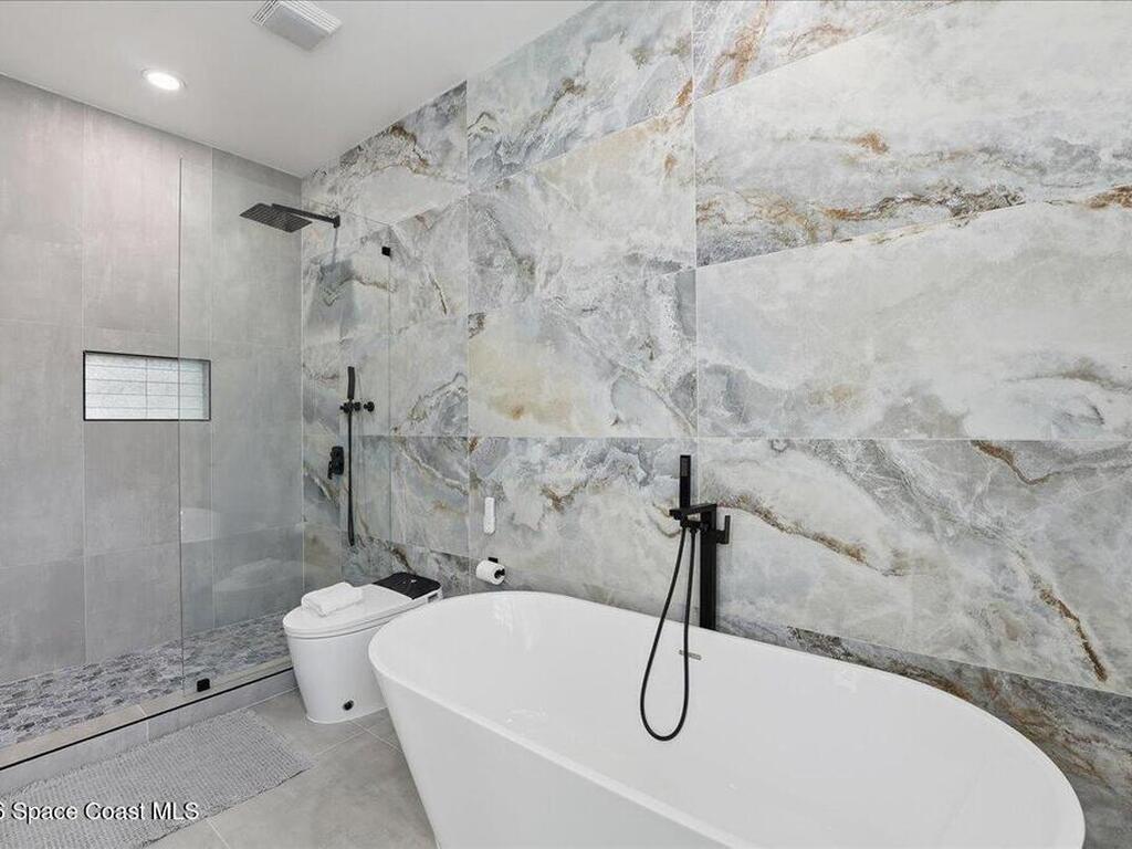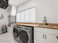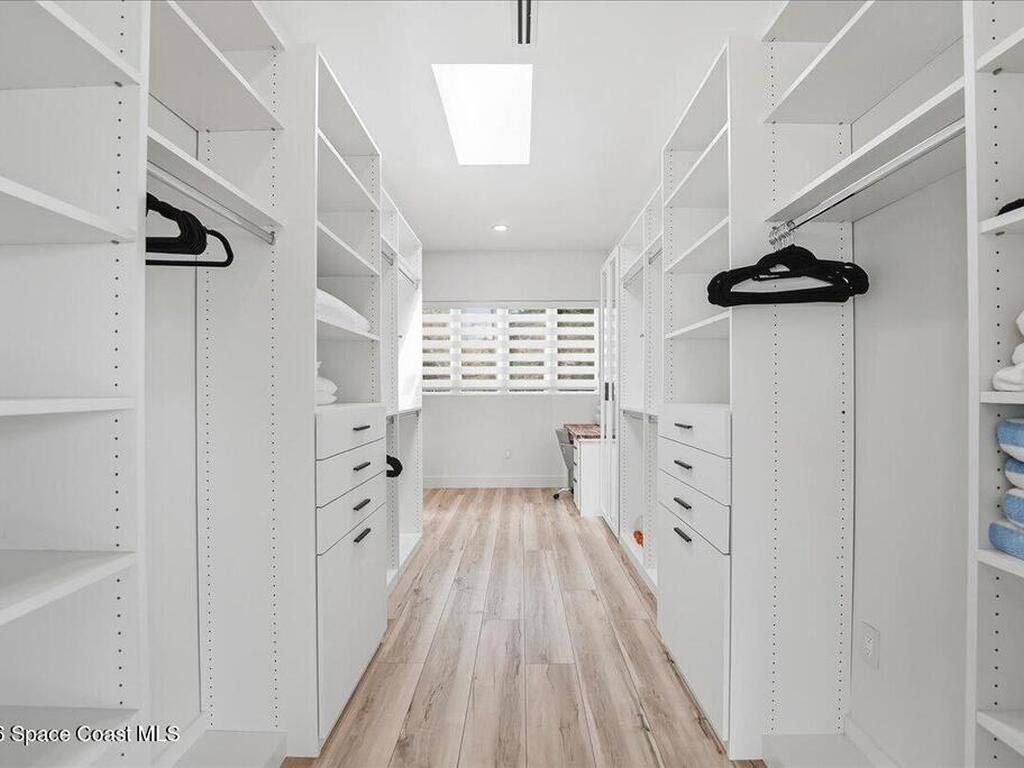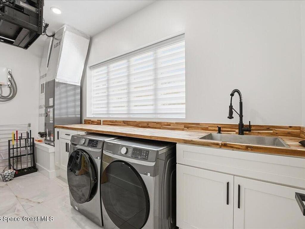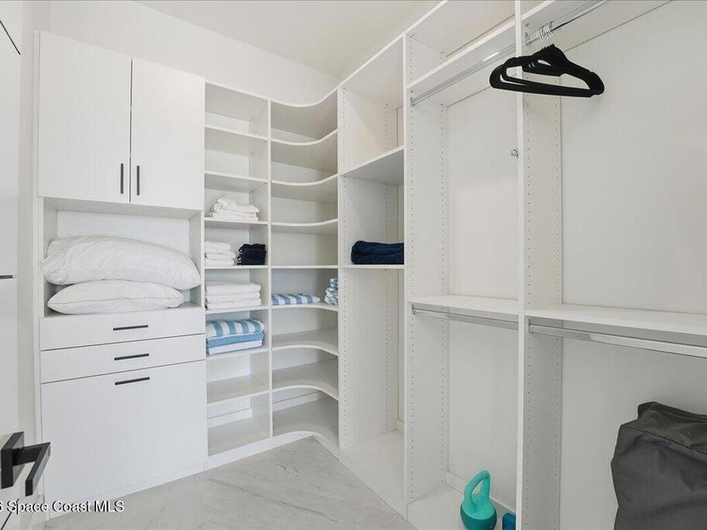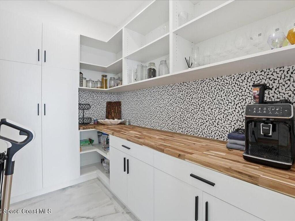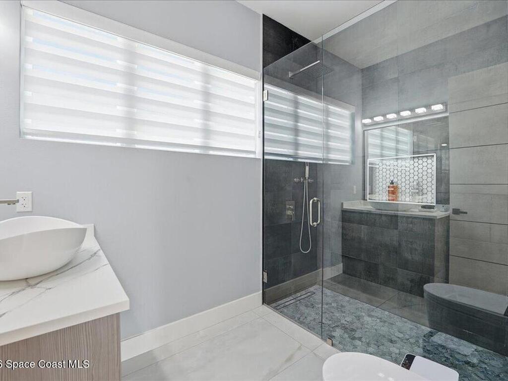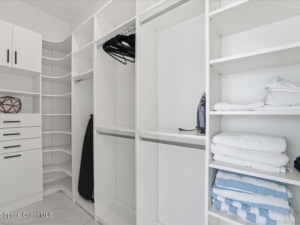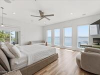 Modern Waterfront Masterpiece on Merritt Island with 151 feet of direct Indian River frontage. This 2024-built two-story home features full concrete block construction, a commercial-grade roof, and high-end modern finishes throughout. Offering 5 bedrooms, 4 full baths, and a 2-car garage, this fully furnished residence is truly turnkey. The designer kitchen, custom built-in closets, smart home features, motorized shades, and smart toilets elevate the living experience. The expansive upstairs primary suite includes a private covered terrace, wraparound closet, and a stunning spa bath with designer tile and luxury shower. Enjoy a covered boat dock with lift, jet ski dock, putting green, and side yard. West-facing balconies capture breathtaking sunsets with views of dolphins and manatees. Located near Cocoa Village with quick access to the Atlantic Ocean, 45 minutes to Orlando International Airport and 1 hour to Disney. Truly one of a kind.