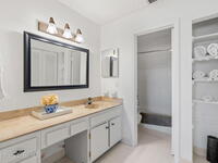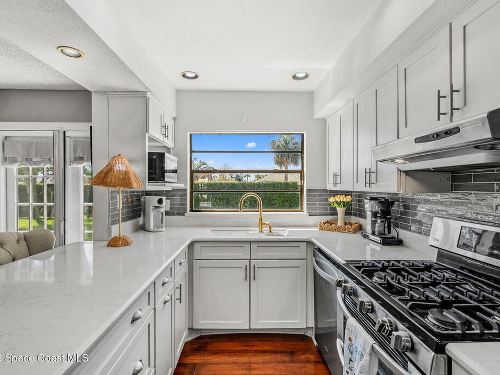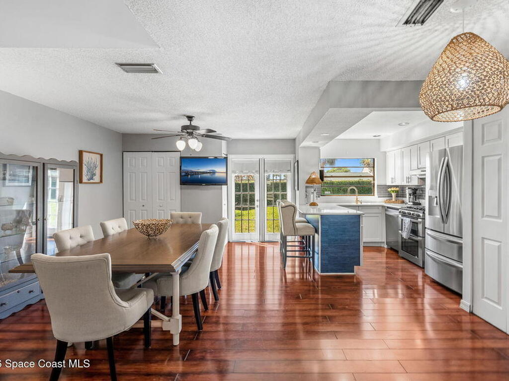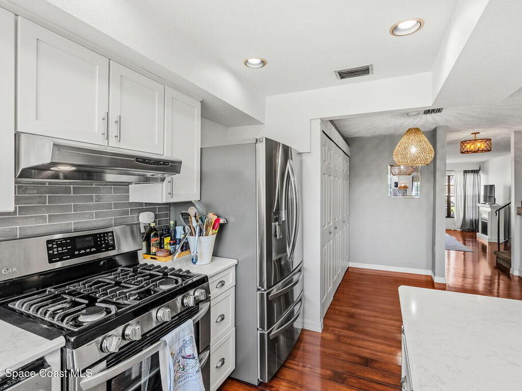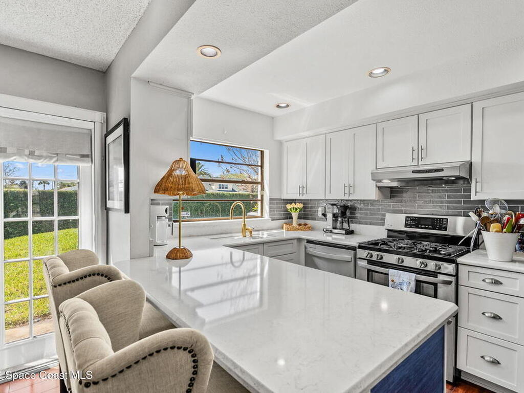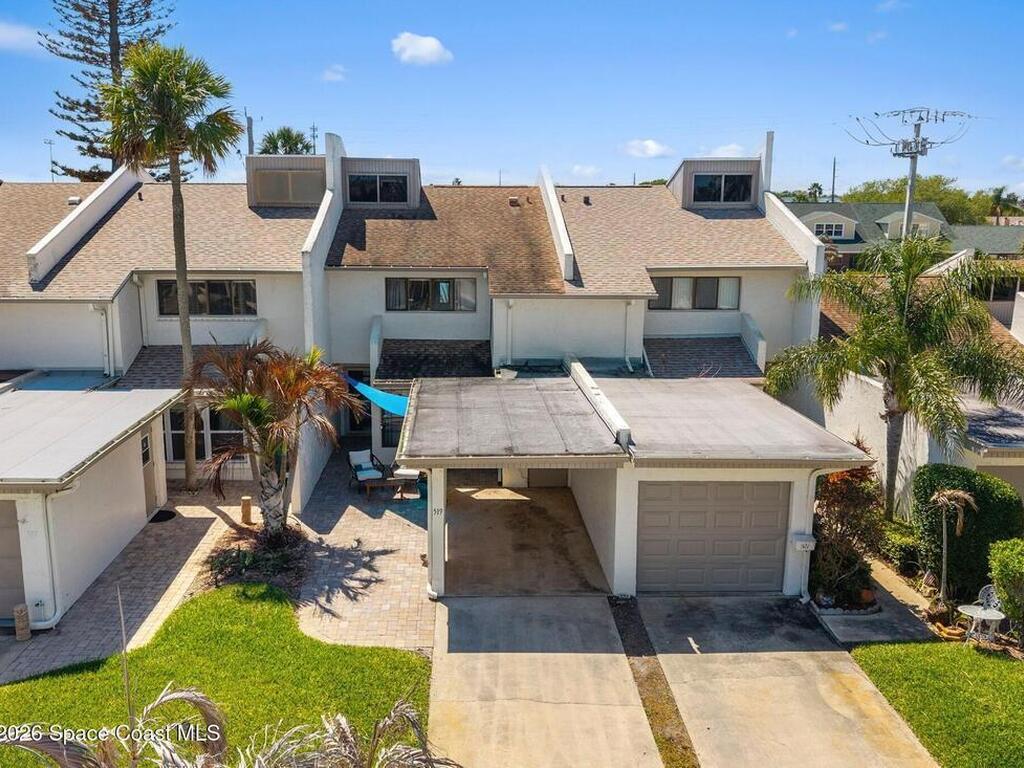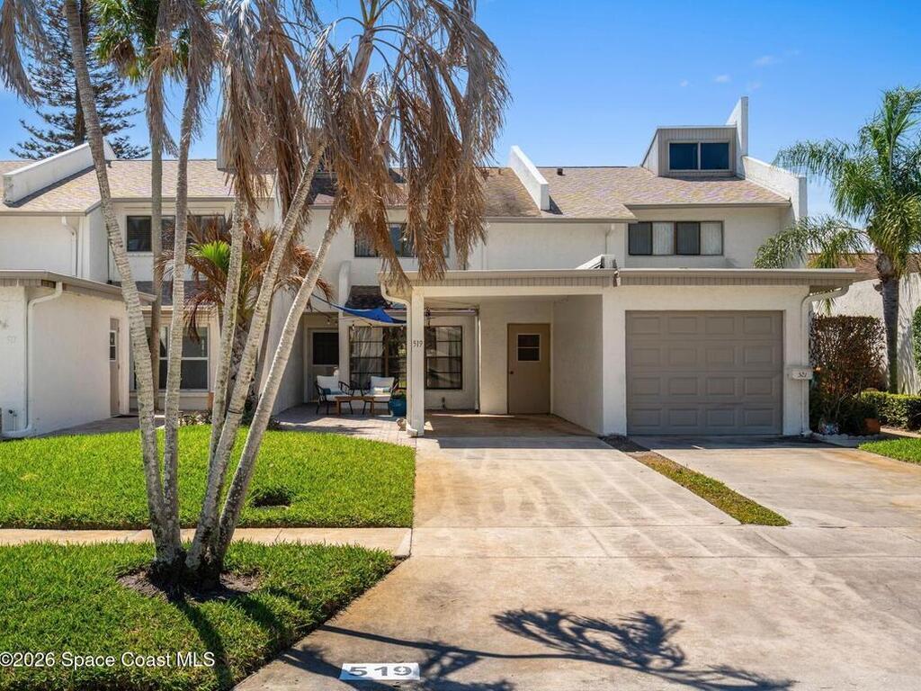 Sun-soaked and just minutes from the beach, this inviting home delivers a seamless layout designed for effortless living and a relaxed coastal rhythm. The main level unfolds from a welcoming living space into an open dining area and well-appointed kitchen, where quartz countertops, stainless appliances, a peninsula breakfast bar, and pantry closet come together in a space that feels both functional and connected. A built-in wine bar with beverage fridge adds a refined touch for entertaining, while French doors open to a lush common green, extending the living space outdoors.Upstairs, two generously sized bedrooms each offer the comfort and scale of a primary suite, complete with ample closet space. Everyday ease meets thoughtful updates, including a 2020 exterior AC unit, updated electrical panel, replaced gutters, and a newer water heater. All set within a community offering a pool and clubhouse, with the beach just moments away.