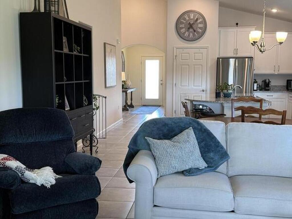 Welcome to your Florida dream home! This beautiful 4-bedroom 2-bath home in the sought after gated community of Sawgrass Lakes is a must see! Providing the perfect blend of luxury & comfort the open floor plan offers flexibility & plenty of room for family or entertaining. The family room flows seamlessly into the dining area & kitchen. The kitchen is the heart of the home featuring 42' soft close cabinets, stainless appliances & granite countertops. The generously sized owner's suite is a true retreat with a walk-in closet & ensuite bath offers a large garden tub plus a separate shower. The backyard is perfect for relaxing with a fully fenced yard, oversized pavered screened in patio & breathtaking lakeviews. The community offers resort style amenities including a large community pool with 2 story waterslide, fitness center, tennis/pickleball court, playground, volleyball court & more! This home is zoned for A rated schools & located mins from shopping, great restaurants & I-95.