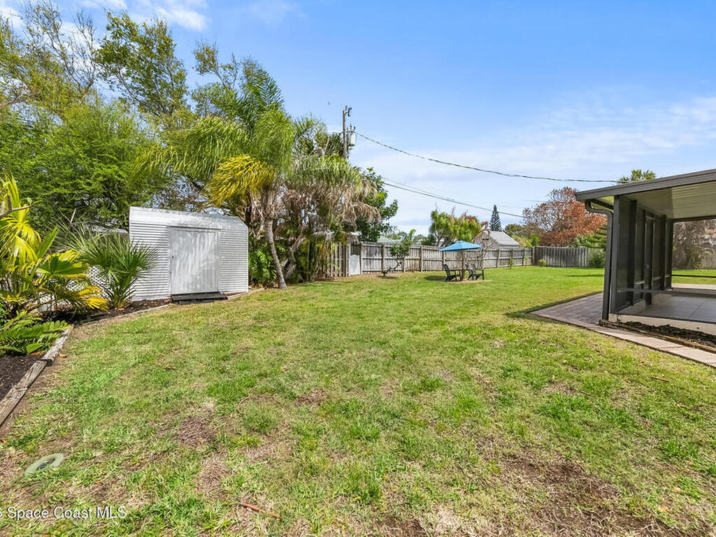 Welcome to your Beachside Indialantic paradise! This 4 bedroom 1 1/2 bath, 1 car garage plus 1 car carport sits on spacious .26 acre lot with lots of fenced backyard room for pool and entertaining opportunities. Laundry room addition increases living area to 1640 sq. ft. per owner. No HOA on this quiet street, located within quick blocks walk to the beach. Roof 2019, AC 2019, gutters 2019, back fence 2019, irrigation pump 2025, water heater 2025. Additional backyard shed with electricity for storage, gardening or workshop space. Great Indialantic home on a quiet street just waiting for you to make it your little piece of Beachside paradise!