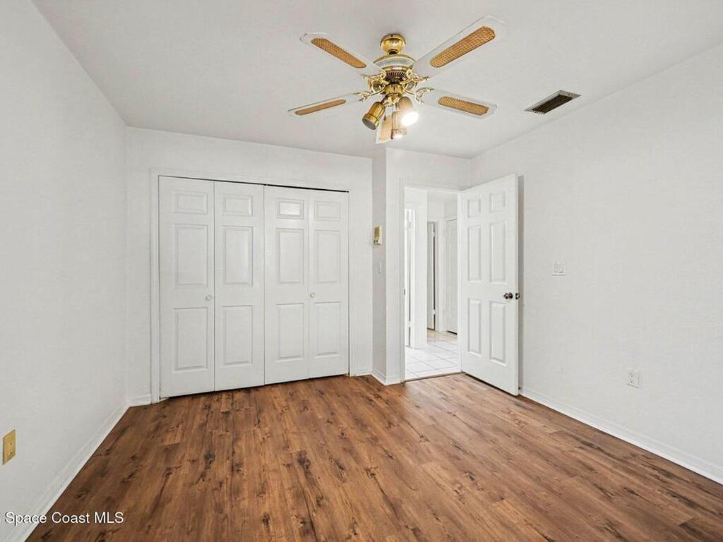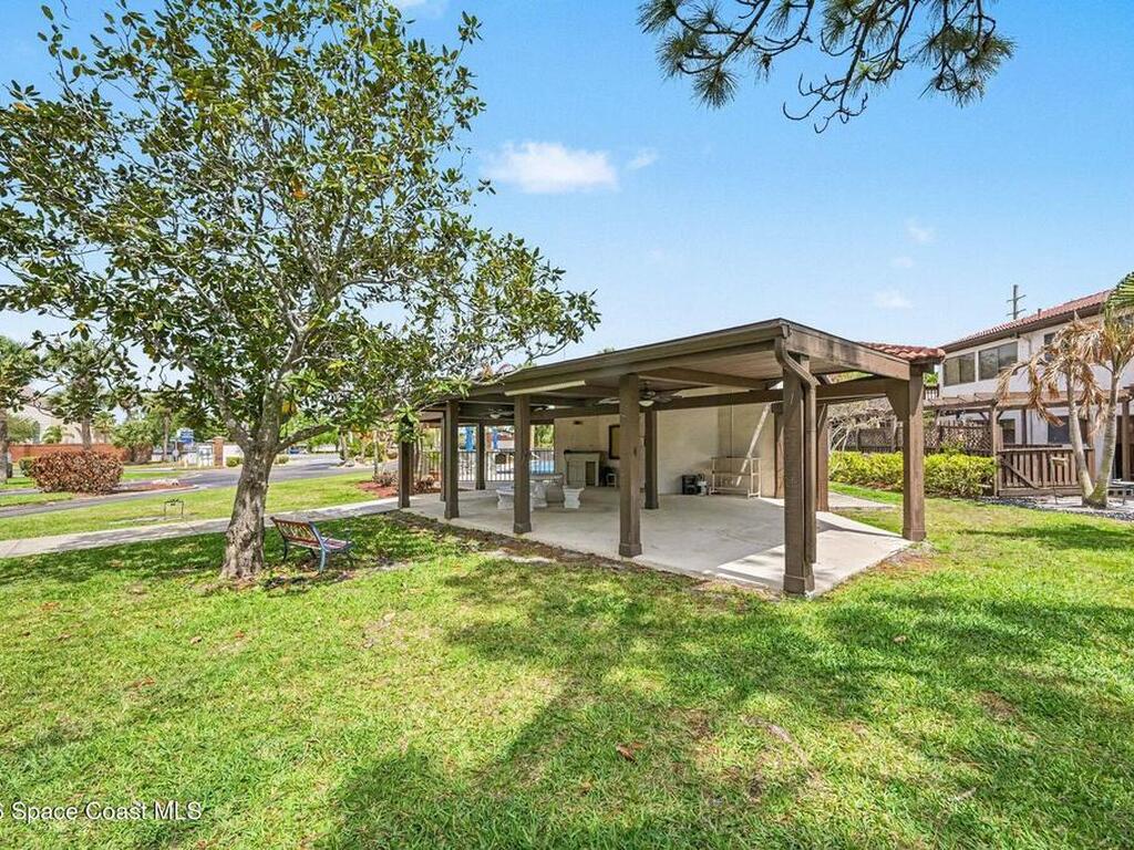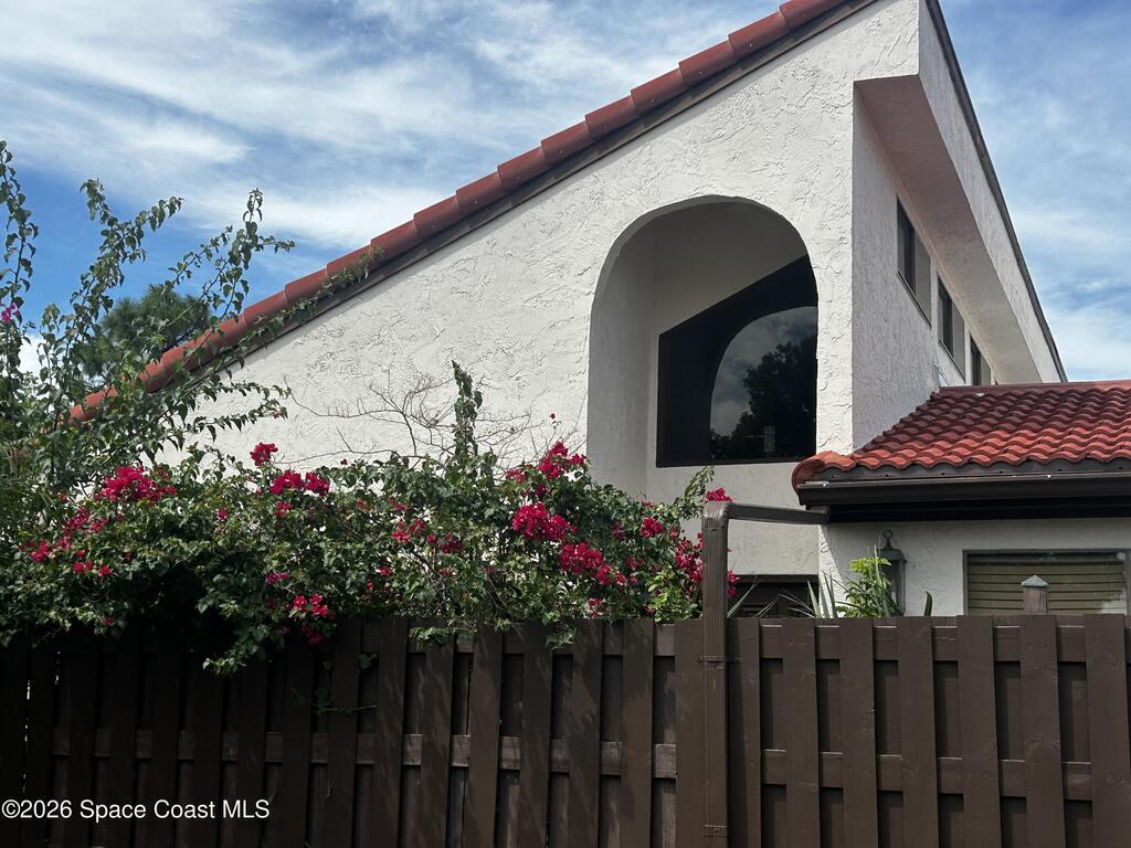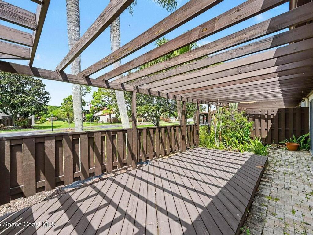 You will love this wide open end unit townhome in Suntree! This home offers 2 full bathrooms and 2 bedrooms, with an office. Just under 2000 square feet. The ceilings are vaulted and give such a wide open feel! Located in a popular golf course neighborhood with a pool only a few doors away. Roof is 5 years old, stainless steel appliances in the kitchen. Close to shops, restaurants, and easy highway access. Spacious outdoor space expansive side courtyard and rear patio area with pergola. The HOA will be replacing the back fence.
