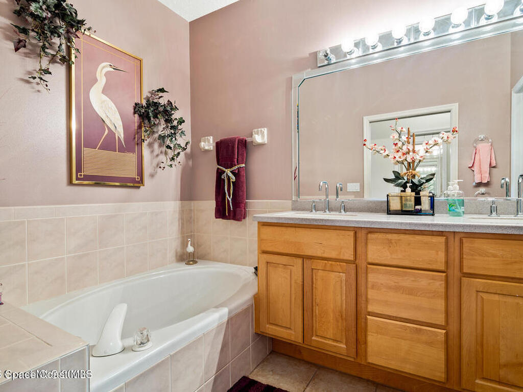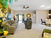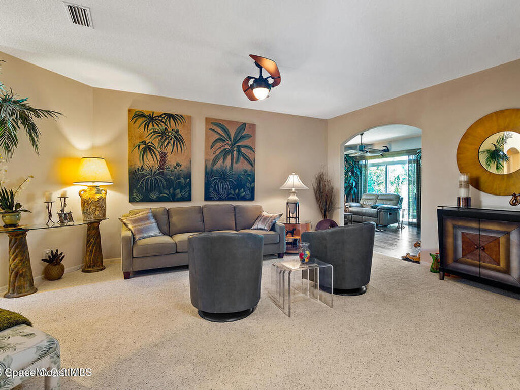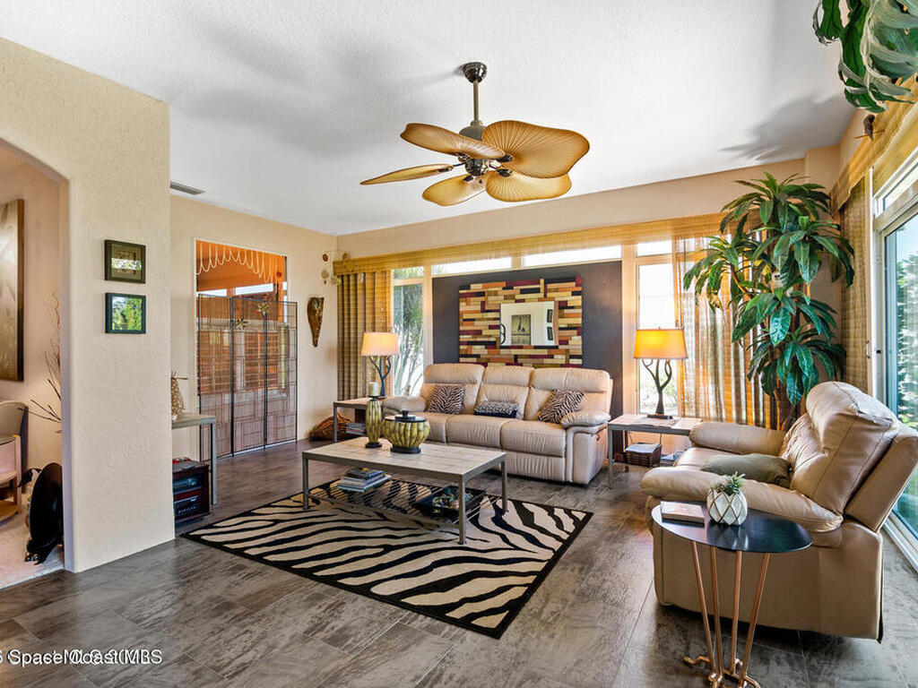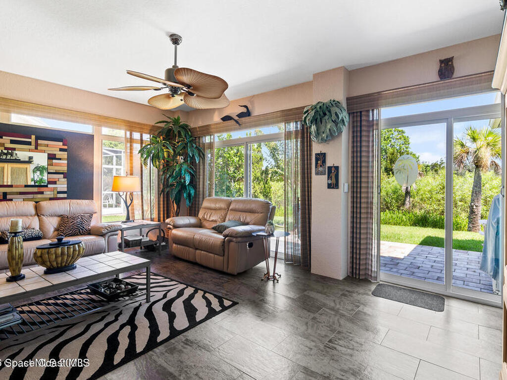Short walk or golf cart ride from the Viera East Golf course you will find this nicely furnished 3-bedroom, 2-bath home available for rent in desirable Viera East. This well-maintained home features an open floor plan with a spacious great room flowing seamlessly into the dining area, kitchen, and expansive garden room. The oversized garden room, under air, is filled with natural light and showcases glass doors and windows that frame beautiful, private preserve views. The primary suite offers a comfortable retreat with an ensuite bath featuring dual sinks, a soaking tub, and a large walk-in closet.