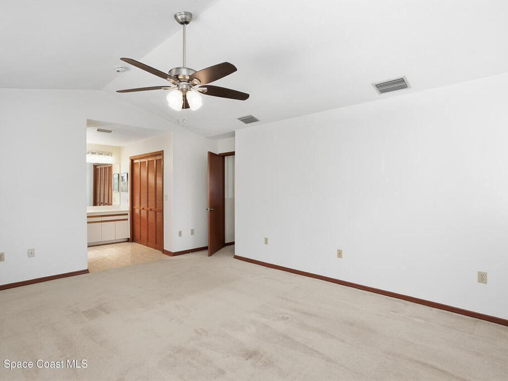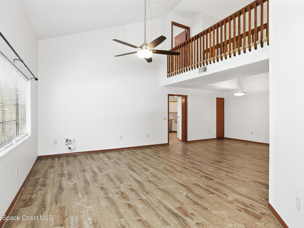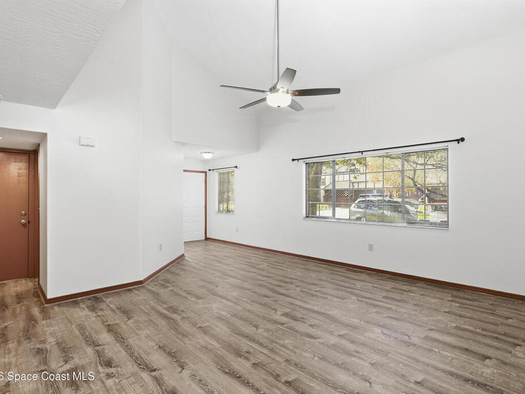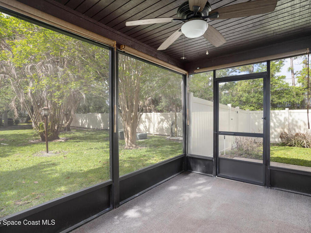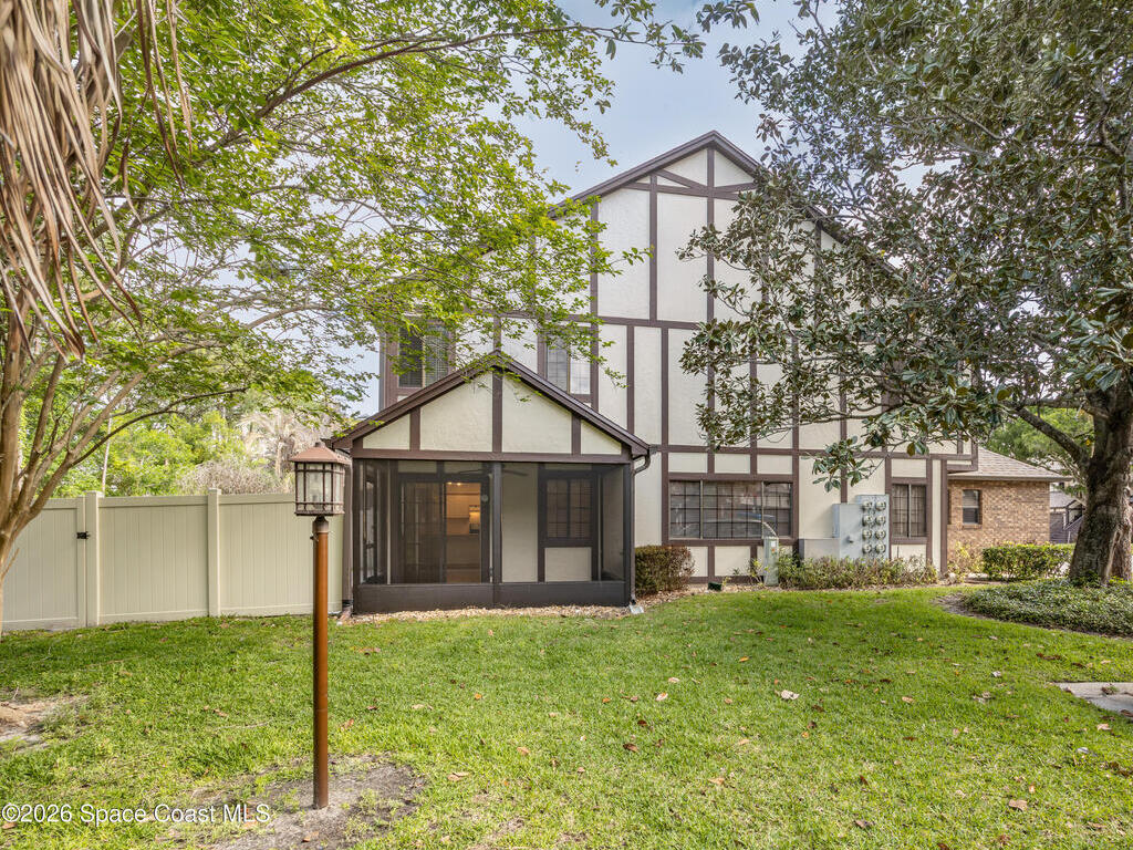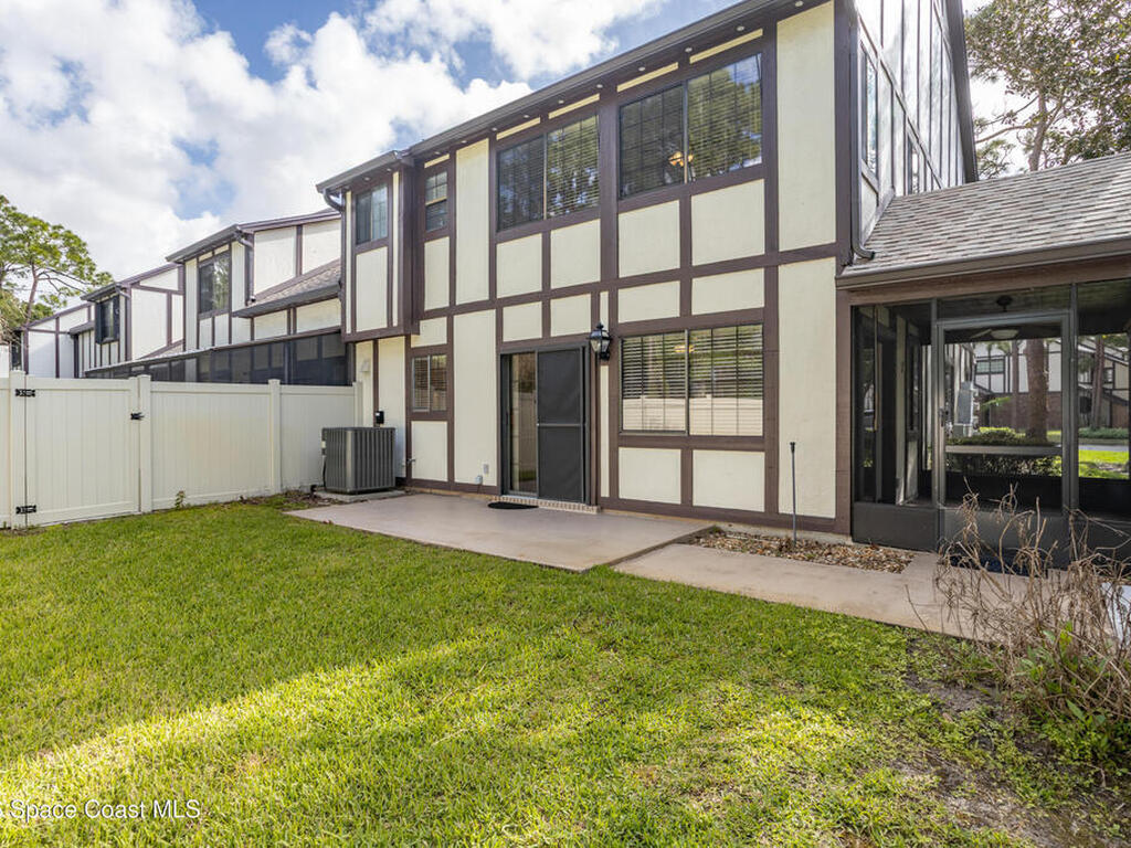 RARE-END UNIT ''TOWNHOUSE STYLE'' Condo (no one above or below) with TWO CAR GARAGE & PRIVATE BACKYARD! Delightful & Spacious, Unit Features Cathedral Ceilings in Living Room & Master Suite; Large Kitchen/Family Room Combo Flows Into Screened Porch/Open Patio and Vinyl Fenced Rear Yard. Catwalk Splits the Bedrooms for Privacy. Master Suite Has Large Walk-In Closet, Double Vanity & Remodeled Shower. Additional Features Include Central Vacuum, Newer Stainless Appliances, Refreshed Paint - All Doors & Baseboards, Newer Ceiling Fans & Fixtures Throughout! Unit is Spotless, Move-In Ready & Proximate To I-95, Northrup Grumman, L3Harris, Melb.-Orlando Int'l Airport, Shopping Restaurants, The Indian River Intracoastal Waterway & Beaches! Condo Fee Includes Roofs/Exterior Maintenance, Cable TV, DVR, INTERNET, Insurance, Pest Control and More. Enjoy The Heated Pool, Exercise Room, Billiards Room, Library & Car Wash Area All Within A Beautifully Maintained Gated, West Melbourne Community.