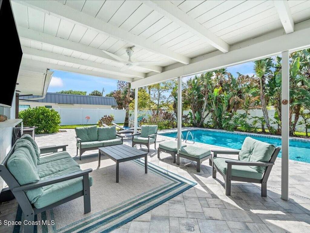 Beautifully updated, 4 bed, concrete block, pool home in the heart of Melbourne Beach, close to 3 downtown areas, beautiful white sand beaches, a community pier, playgrounds, tennis/pickleball and much more! All impact rated windows and doors, whole home water purification system, tankless water heater & many more upgrades throughout this beachside gem ! You'll love the tropical oasis created within the spacious, fully fenced backyard, highlighted by a recently resurfaced, solar heated, salt water pool, fire pit & large covered lanai. RV/Boat storage area + a shed for all the toys! Don't sleep on this winner !!