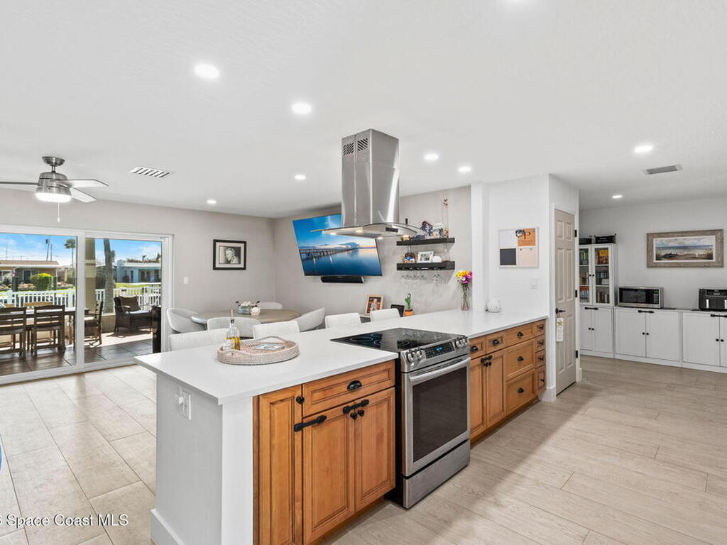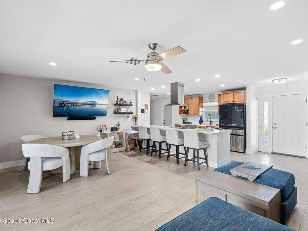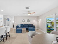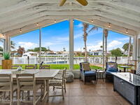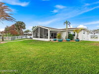 Recently renovated and perfectly positioned, this canal-front retreat offers the ideal blend of coastal lifestyle and convenience--just blocks from the beach and within walking distance of downtown Cocoa Beach, restaurants, and local amenities, and close to nearby schools.This solid concrete block home features a desirable split floor plan with 3 bedrooms and 2 bathrooms. Boating enthusiasts will appreciate the private dock and 16, 000 lb boat lift with direct canal access.Inside, the open layout is enhanced by new wood-look porcelain tile and new baseboards throughout the main living areas, with vinyl plank flooring in the bedrooms. The kitchen has been updated with new countertops and newer appliances, and the guest bathroom has been tastefully remodeled.Enjoy a spacious screened-in porch overlooking tranquil canal views--perfect for relaxing or entertaining.