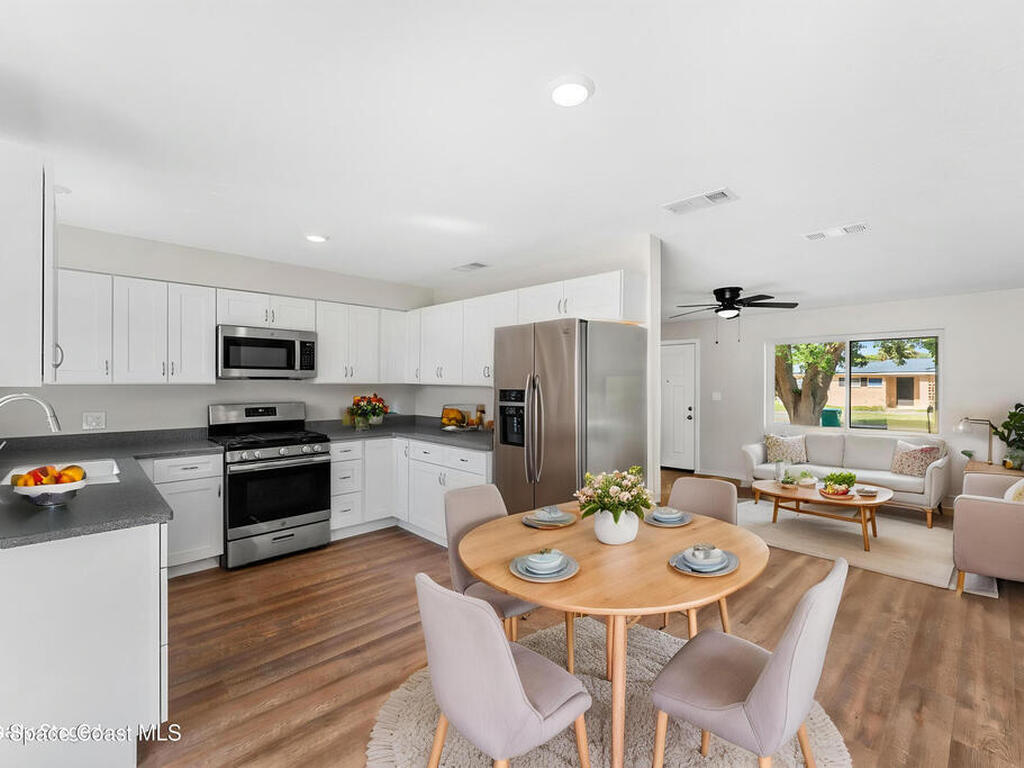 Life in Rockledge sets the tone here--morning walks along scenic trails, afternoons at nearby parks and golf courses, and effortless access to shopping, dining, and top-rated amenities that make this one of Brevard's most sought-after locations. This updated 4-bedroom, 2-bath home offers 1, 443 square feet with a fresh, modern feel, featuring new LVP flooring throughout, fresh interior paint, and a fully updated kitchen with stainless steel appliances. New double-pane windows enhance comfort and efficiency, while a dedicated laundry room with washer and dryer adds everyday convenience. Step outside to a fully fenced backyard, ready for pets, play, or weekend gatherings. Tucked within Davis Court with no HOA, this property delivers the rare combination of freedom, updates, and a location that puts you right in the center of everything Rockledge has to offer.