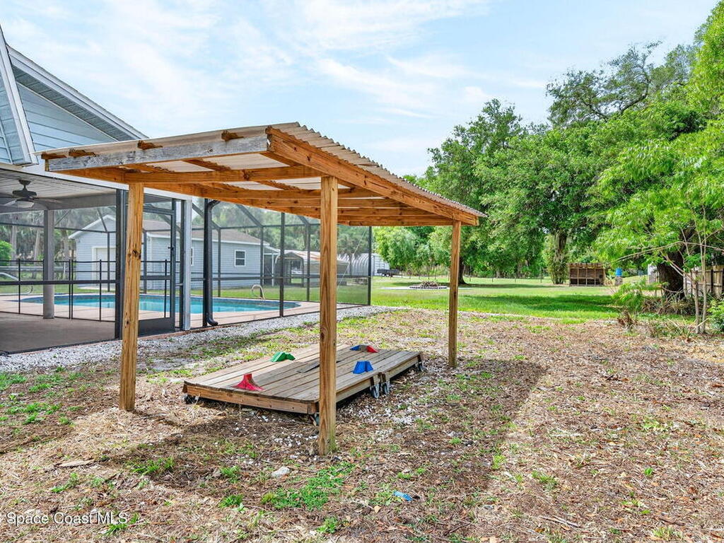 Set on over an acre, this well-maintained 3BR/2.5BA custom pool home offers space, flexibility, and true Florida living. The spacious primary suite has walk-in closets and a private bath with tub/shower combo and vanity area. A finished 22' x 22' attic adds incredible versatility--perfect for a home office, guest space, or bonus room. Step outside to your own private retreat featuring a sparkling pool and screened porch overlooking the expansive property. A detached 20' x 30' workshop with A/C, roll-up door, and 110/220 electrical is ideal for hobbies or projects. The property also includes a charming chicken coop for a touch of country living. Additional highlights include a 2-car garage with RV electrical port, plus a dedicated RV pad with septic hookup--perfect for guests or your own adventures. A rare opportunity to enjoy privacy, functionality, and room to grow all in one!