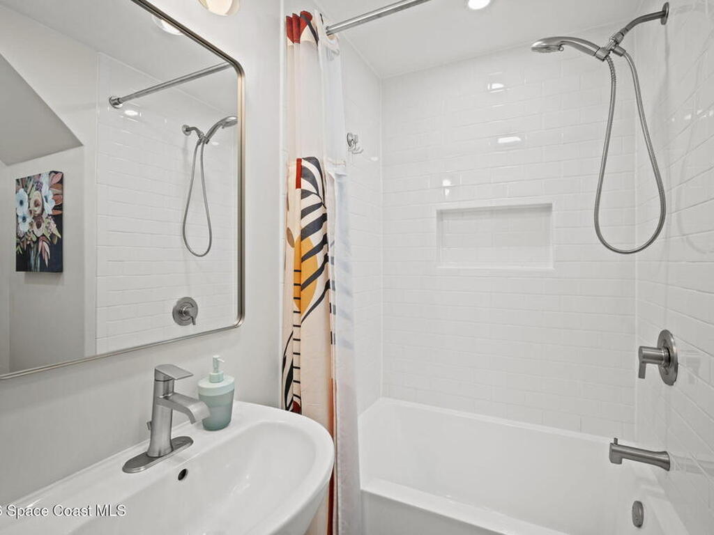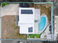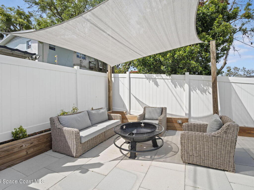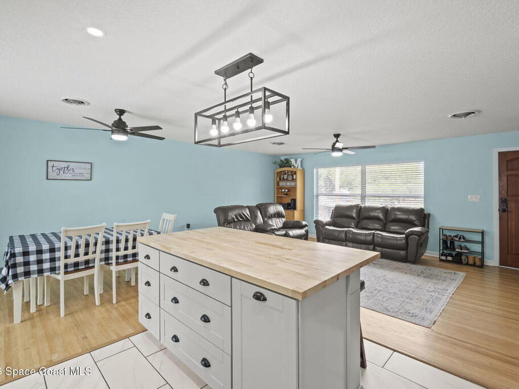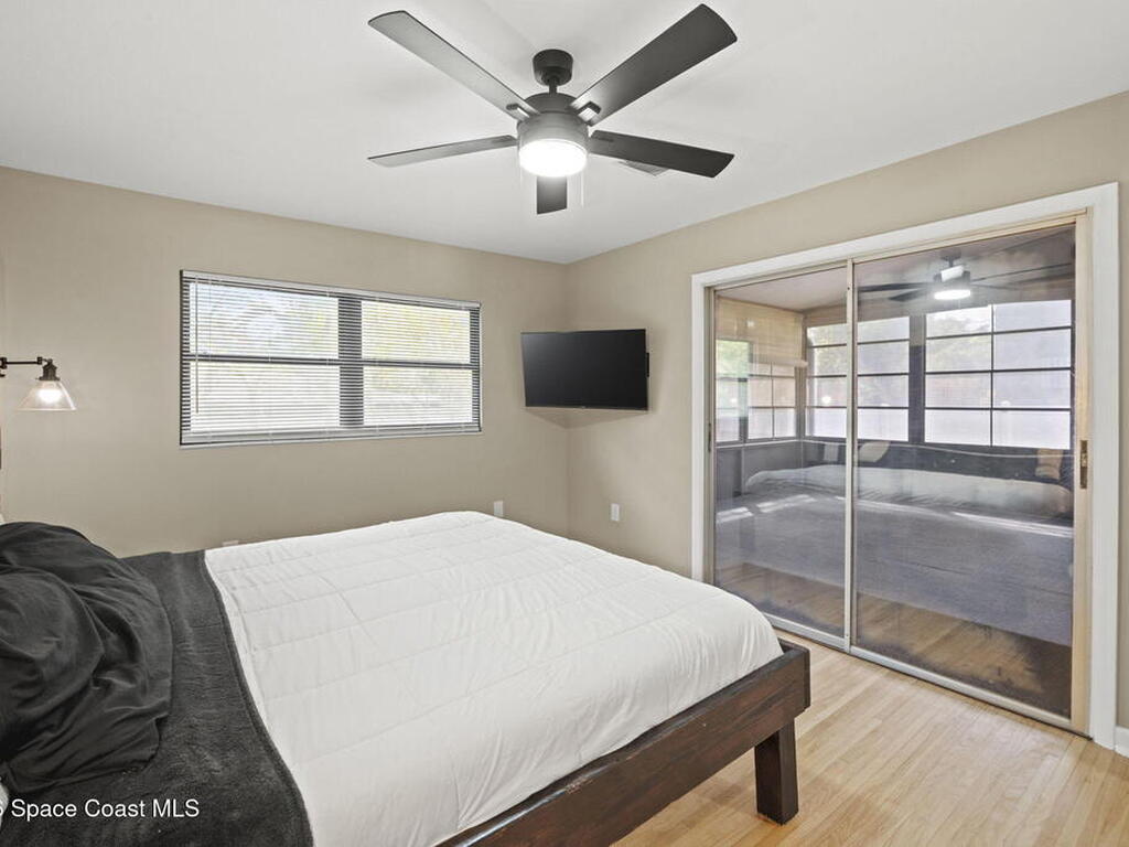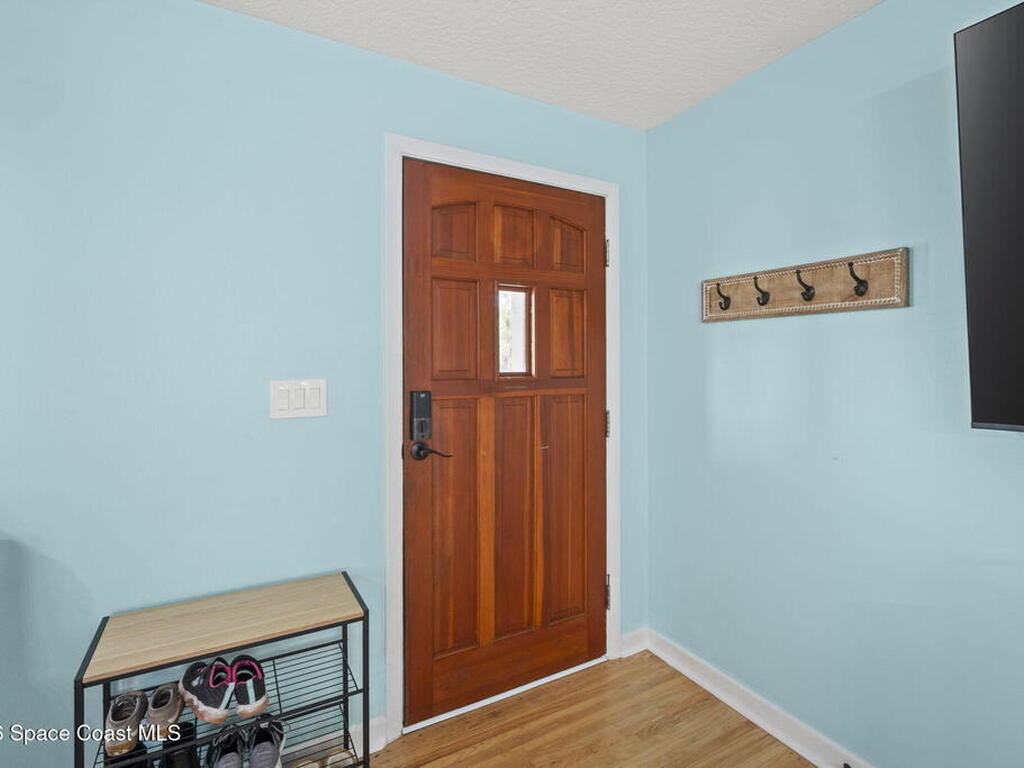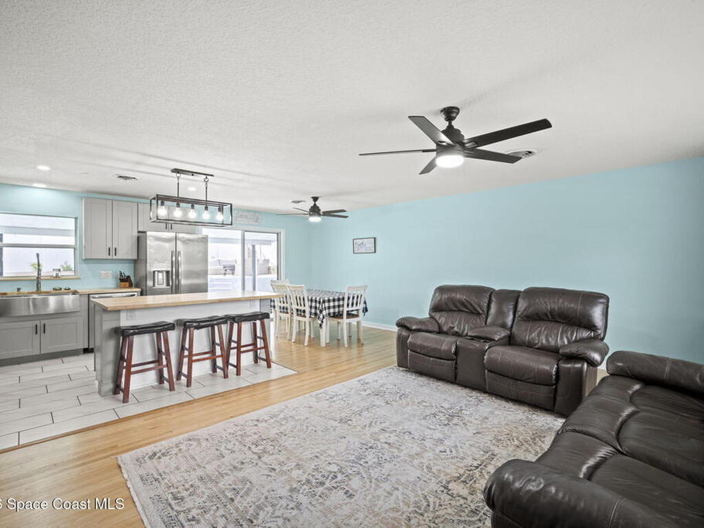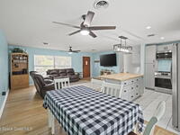 Beautifully updated and move in ready in the highly desired neighborhood of River Heights, with close access to US1 and 528. The feeling of ''Home'' springs to life the minute you walk in the front door with a bright and open floor plan leading to the kitchen with grey shaker cabinetry, butcher block counters, center island, and newer stainless steel appliances. Upstairs you will find 3 generous bedrooms, 2 recently updated bathrooms, with the primary en suite offering a walk in closet, balcony/Florida room and the bathroom boasting luxury finishes. Downstairs you will find a separate office/den space, 4th bedroom, and laundry room, all lined with vinyl plank flooring. Outside the fun never ends with custom raised entertaining deck that is perfect for a fire pit, spacious pool, outdoor shower, and vinyl fenced in yard. 2011 Metal Roof, 2025 AC and duct work, New Insulation, 2018 Paid Off Solar, 2020 Water Heater, Updated Elec Panel, Copper Wiring, No Popcorn Ceilings, and More