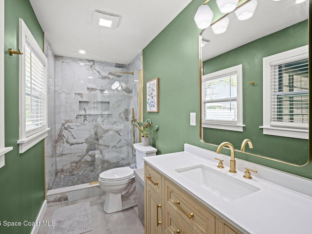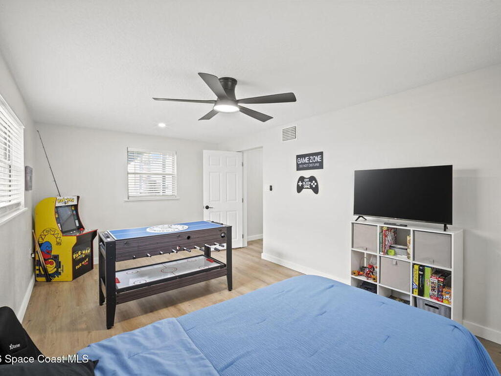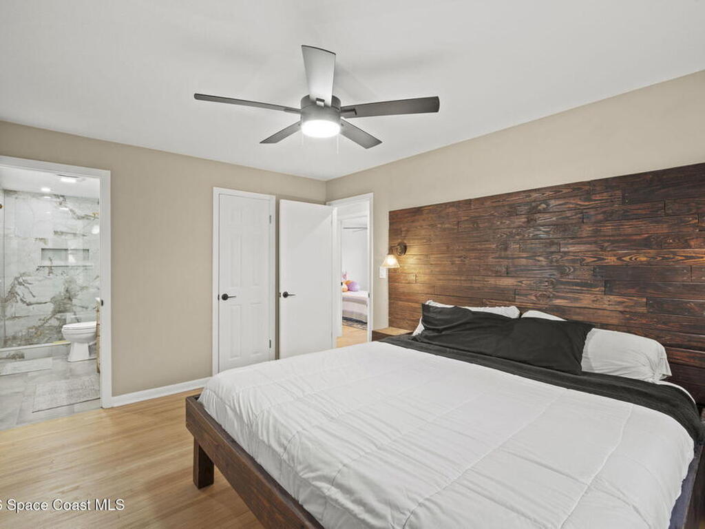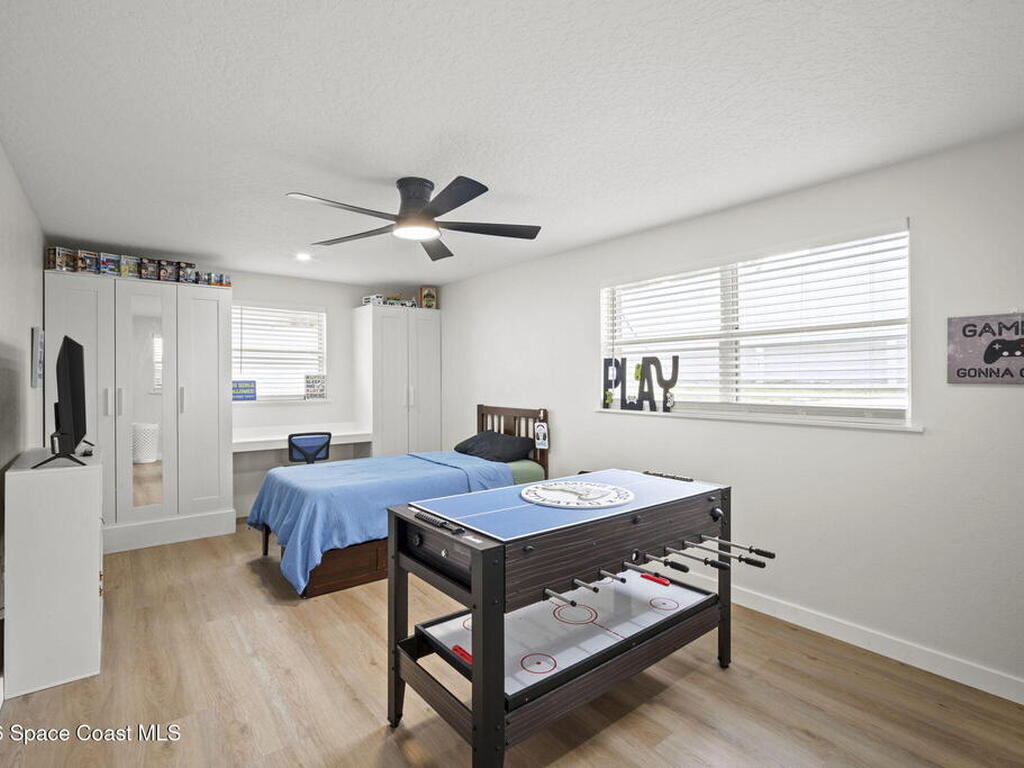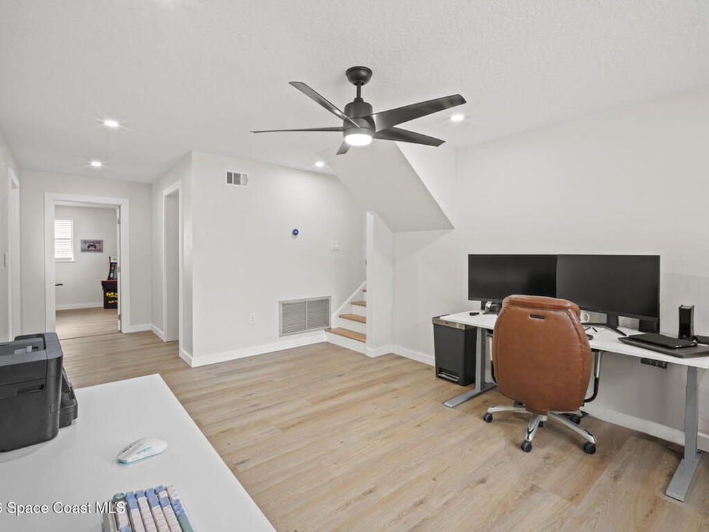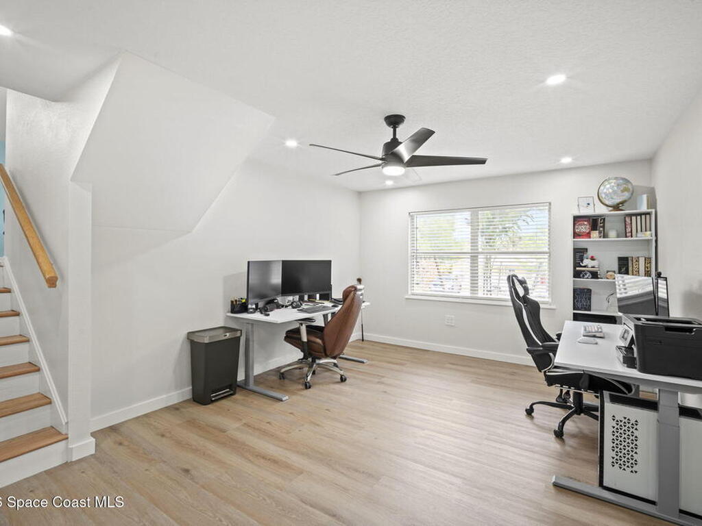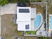 Beautifully updated and move in ready in the highly desired neighborhood of River Heights, with close access to US1 and 528. The feeling of ''Home'' springs to life the minute you walk in the front door with a bright and open floor plan leading to the kitchen with grey shaker cabinetry, butcher block counters, center island, and newer stainless steel appliances. Upstairs you will find 3 generous bedrooms, 2 recently updated bathrooms, with the primary en suite offering a walk in closet, balcony/Florida room and the bathroom boasting luxury finishes. Downstairs you will find a separate office/den space, 4th bedroom, and laundry room, all lined with vinyl plank flooring. Outside the fun never ends with custom raised entertaining deck that is perfect for a fire pit, spacious pool, outdoor shower, and vinyl fenced in yard. 2011 Metal Roof, 2025 AC and duct work, New Insulation, 2018 Paid Off Solar, 2020 Water Heater, Updated Elec Panel, Copper Wiring, No Popcorn Ceilings, and More