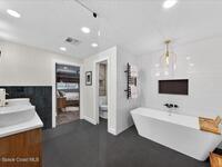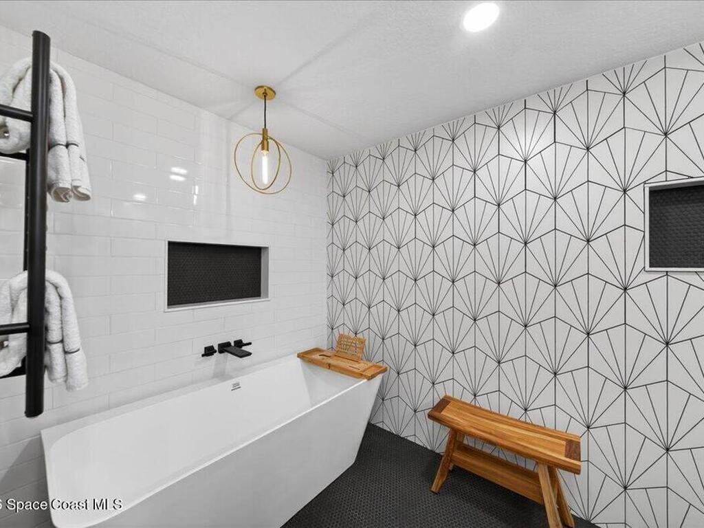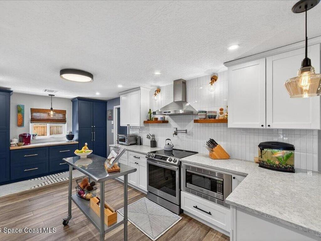RARE FULLY UPDATED SATELLITE BEACH HOME ONLY ONE BLOCK FROM THE ATLANTIC OCEAN. This remodeled 4-bedroom, 3 full bath beach home offers the perfect blend of style, comfort, and location, just one block from the ocean and right next to A-rated Satellite Beach schools. The primary suite is a true retreat, complete with a walk-in closet and a spa-like bathroom that feels like your own private getaway. Gourmet kitchen is made for entertaining and family celebrations. Private oasis awaits with hot tub and outside dining area in your beautiful backyard. Other features include 2022 double pane windows with impact front door, 2022 re-pipe water system & whole house water filtration system, 2021 4-ton A/C system, 2017 Metal Roof, 2024 fencing, updated electrical and SMART Electric Vehicle Charging Station. Don't miss this rare opportunity to own a beautifully updated home in one of Florida's most sought-after beachside communities!