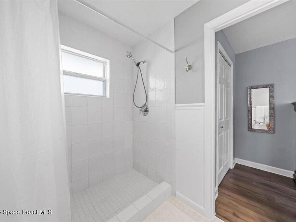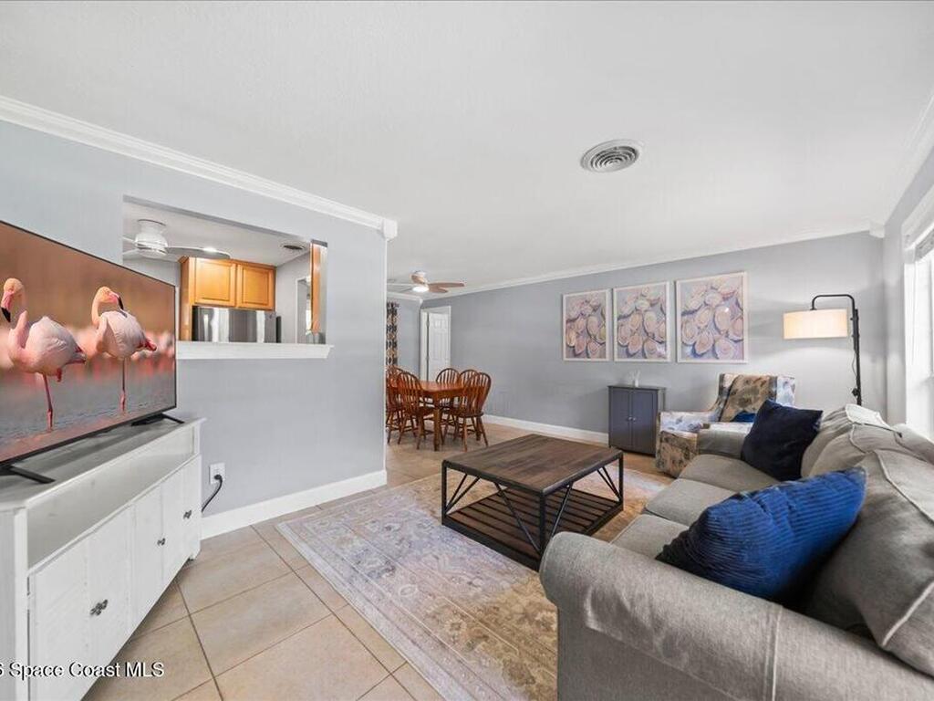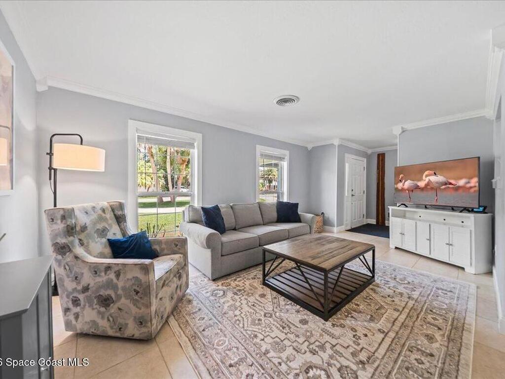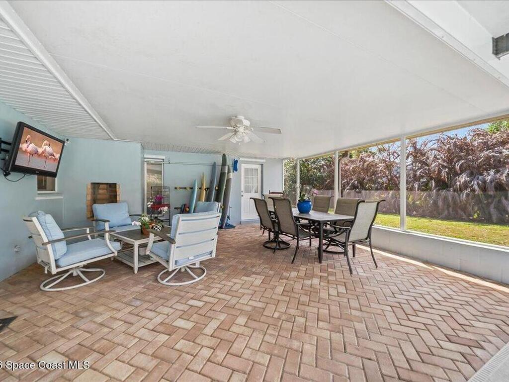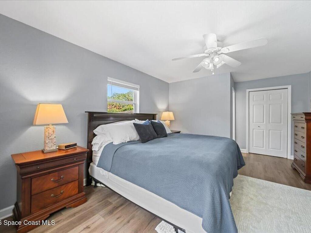 Welcome to your private oasis in South Merritt Estates! This beautifully maintained 3 bedroom, 2 bath home sits on a spacious half-acre lot with a fully-fenced backyard. The interior features both a formal living room and a family room, providing plenty of space for entertaining or relaxing. Step outside to your own backyard paradise, featuring a heated screened-in pool and hot tub, the ideal spot for year-round outdoor living. As part of this great community, you'll also enjoy access to a dock and boat ramp on the Indian River, the perfect spot to enjoy the beautiful sunsets. Major upgrades including a new roof (2021) and a new AC with all-new air ducts (2022).