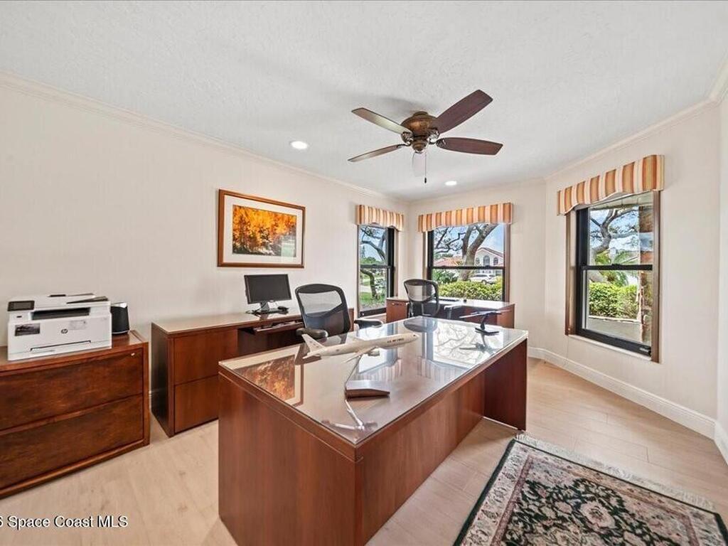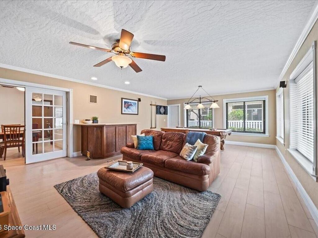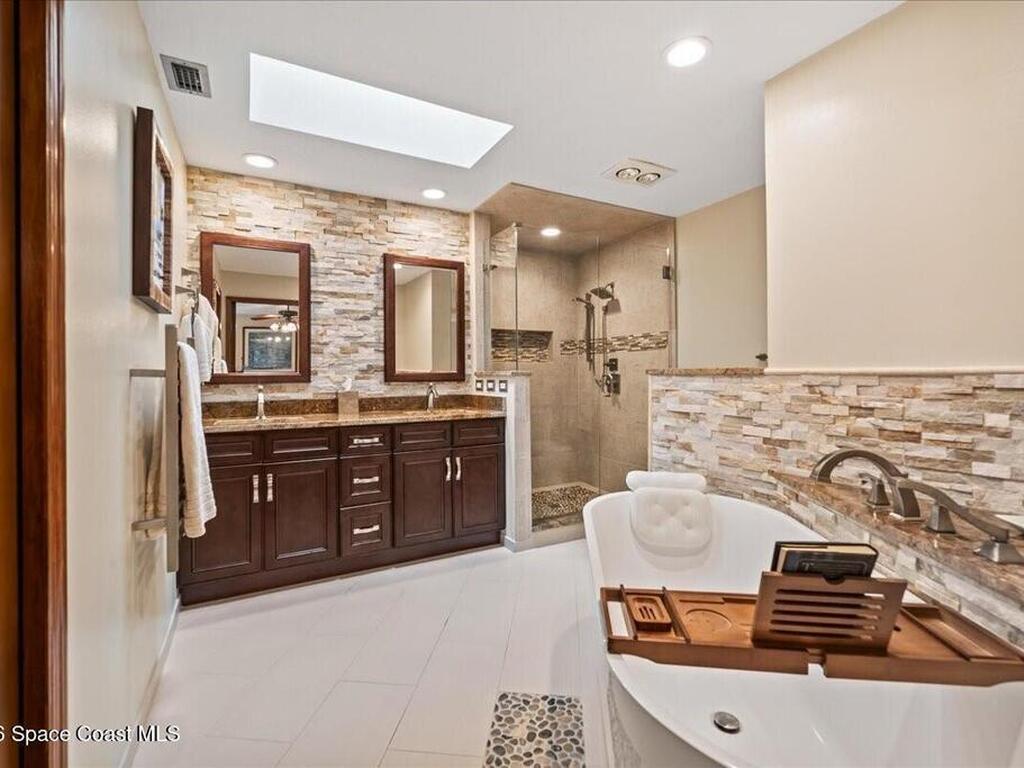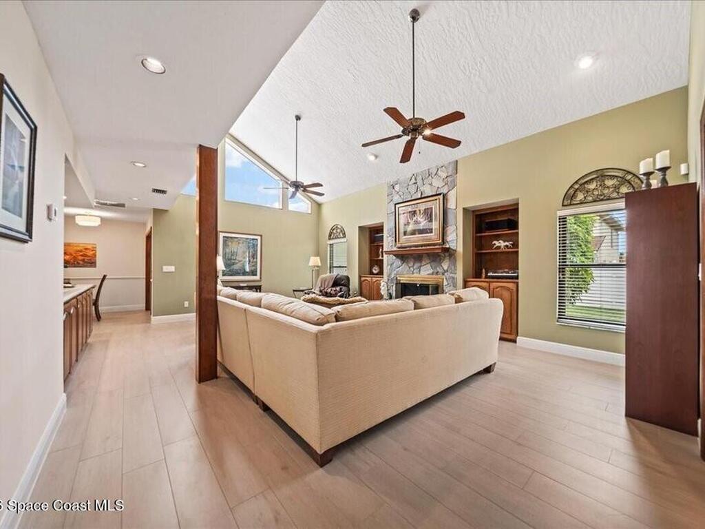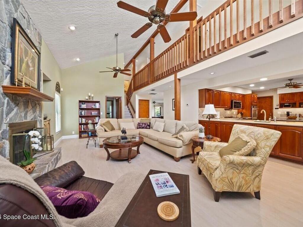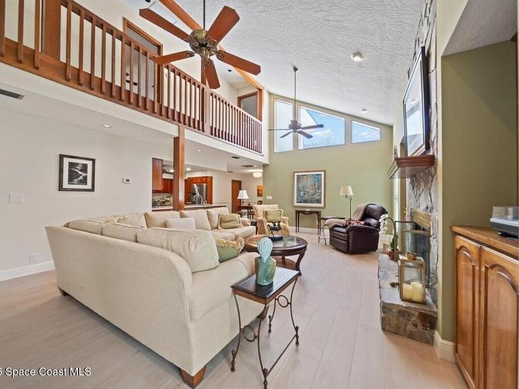 Exceptional Indialantic Island living in a prime location between the Melbourne and Eau Gallie Causeways! This beautifully remodeled residence offers over 3, 554 sq. ft. with a bright, open layout and soaring 20-ft ceilings in the Great Room, highlighted by transom windows and a wood-burning fireplace with custom built-ins. The updated kitchen features custom cabinetry, new appliances, pantry, and breakfast nook, all seamlessly open to the main living area. The second-floor primary suite is a private retreat with a spa-inspired bath, two large walk-in closets, and a balcony. A first-floor guest en-suite with private entrance and patio adds flexibility. Additional features include a bonus game room, dedicated office, oversized bedrooms, impact windows, concrete tile roof, and paver patio. Just minutes to the beach, shopping, and dining--enjoy the best of Indialantic coastal living!