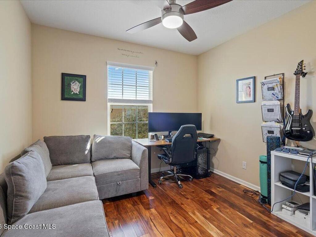 Welcome to easy Florida living in this beautifully maintained 3-bedroom, 2.5-bath end-unit townhome that truly lives like a single-family home. From the moment you step inside, you'll notice the attention to detail and upgrades throughout. The spacious kitchen is the heart of the home, featuring upgraded cabinetry, granite countertops, stainless steel appliances, and a generous breakfast bar perfect for casual dining or entertaining. Upstairs and along the staircase, engineered hardwood flooring adds warmth and durability, creating a polished, cohesive look. Natural light pours in thanks to the end-unit location, giving the home an open and airy feel you don't often find in townhome living. Step outside to enjoy your own private fenced yard -- ideal for pets, grilling, or simply relaxing after a long day. For added peace of mind, the property is equipped with accordion roll-down hurricane shutters, a rare and valuable feature in the community. Combining style, function, and privacy,