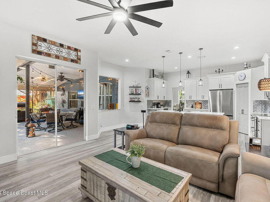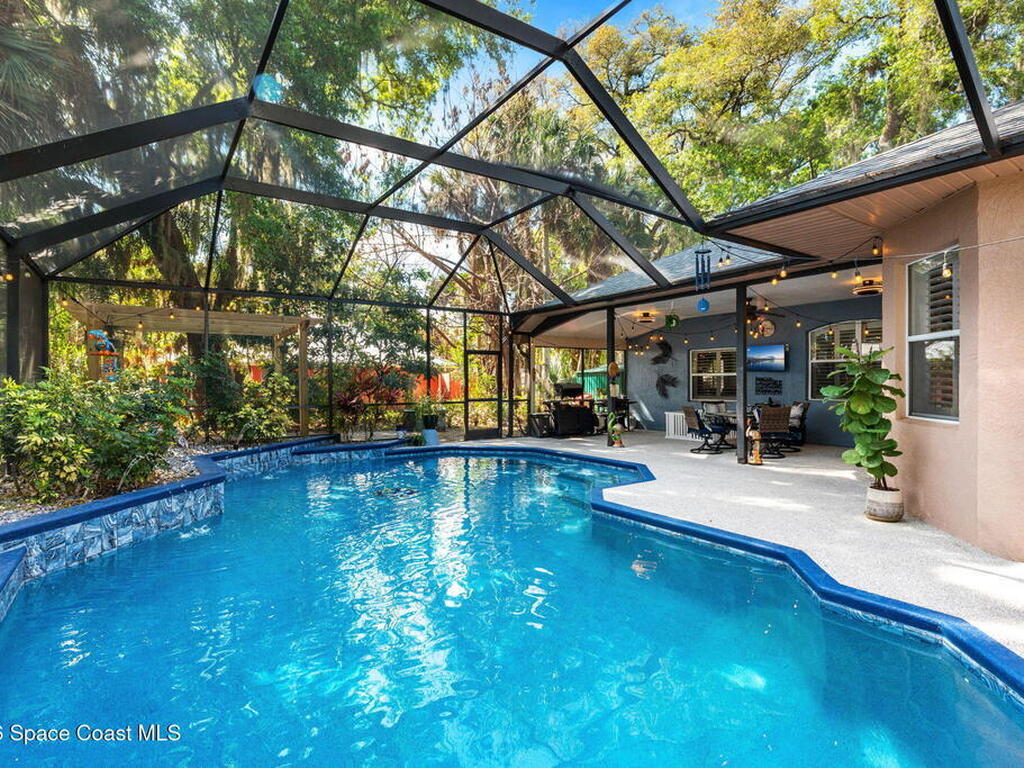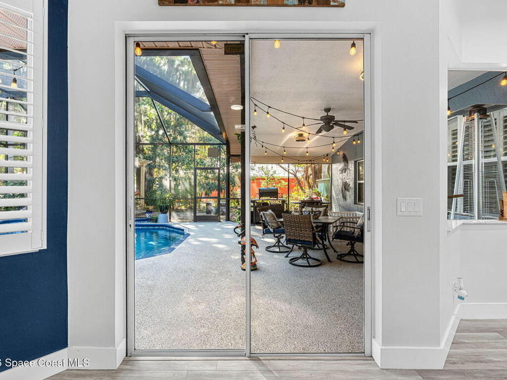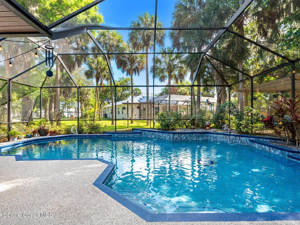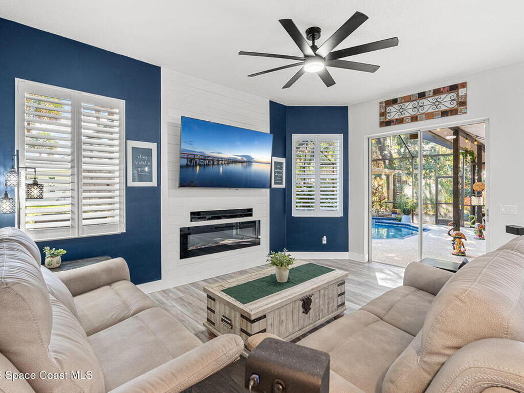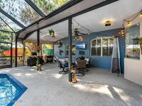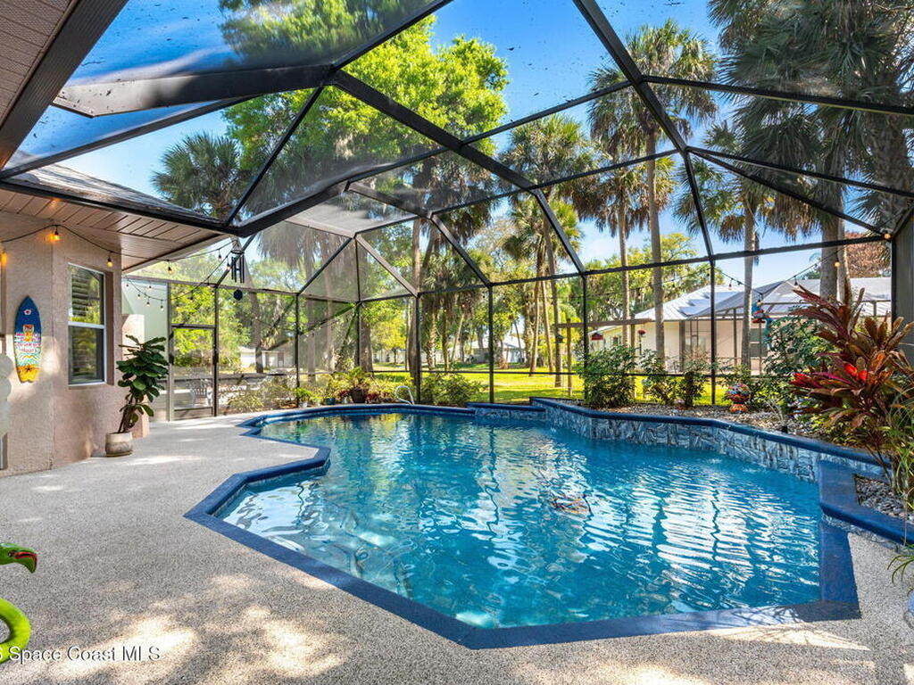 Major upgrades meet a backyard built to impress--featuring a private heated saltwater pool fully refreshed with new surface, tile, deck & screen, a pavered driveway with dedicated RV/boat parking, plus full RV setup with 50 amp & water hookup, firepit & garden area setting the scene outdoors, while inside continues the momentum with a 2018 roof, all new trims & doors, fresh exterior paint, dual pane sliders & windows, city sewer, newer appliances, a bold quartz kitchen island with matching countertops, induction cooktop & wine cooler, new LVP flooring in 2024 & plantation shutters throughout; the primary bathroom was completely redone in 2025, complemented by a water softener, 2023 water heater, electric fireplace & the freedom of NO HOA