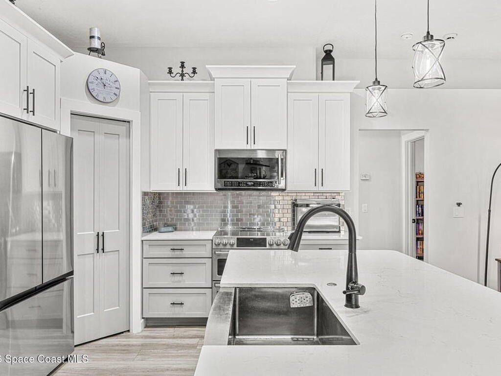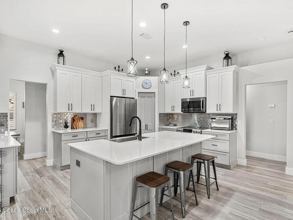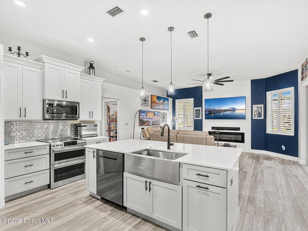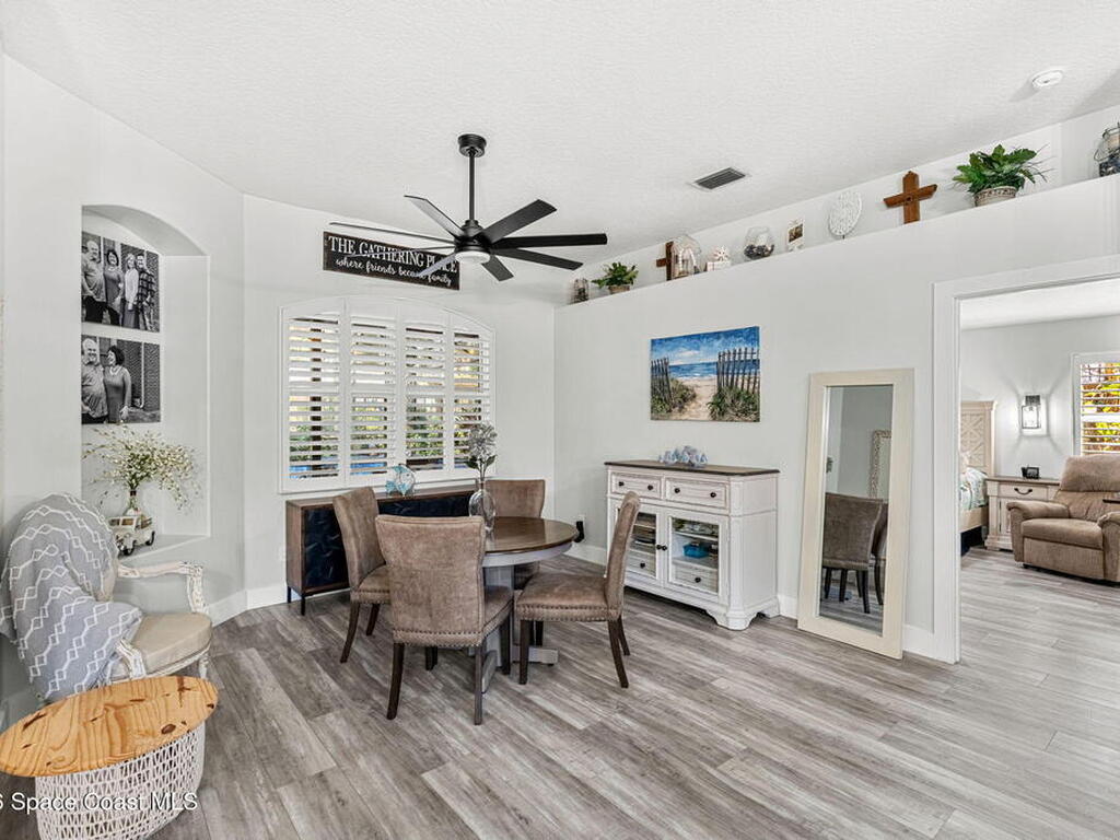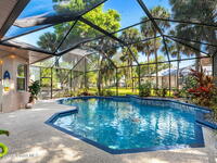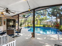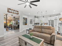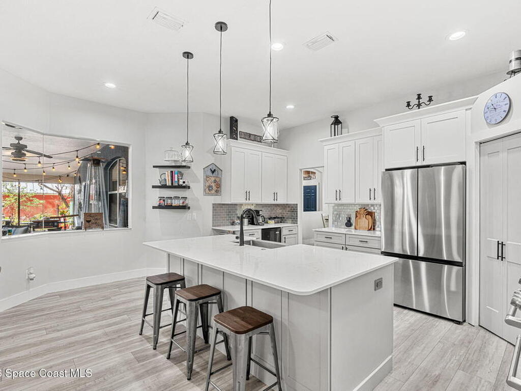 Major upgrades meet a backyard built to impress--featuring a private heated saltwater pool fully refreshed with new surface, tile, deck & screen, a pavered driveway with dedicated RV/boat parking, plus full RV setup with 50 amp & water hookup, firepit & garden area setting the scene outdoors, while inside continues the momentum with a 2018 roof, all new trims & doors, fresh exterior paint, dual pane sliders & windows, city sewer, newer appliances, a bold quartz kitchen island with matching countertops, induction cooktop & wine cooler, new LVP flooring in 2024 & plantation shutters throughout; the primary bathroom was completely redone in 2025, complemented by a water softener, 2023 water heater, electric fireplace & the freedom of NO HOA