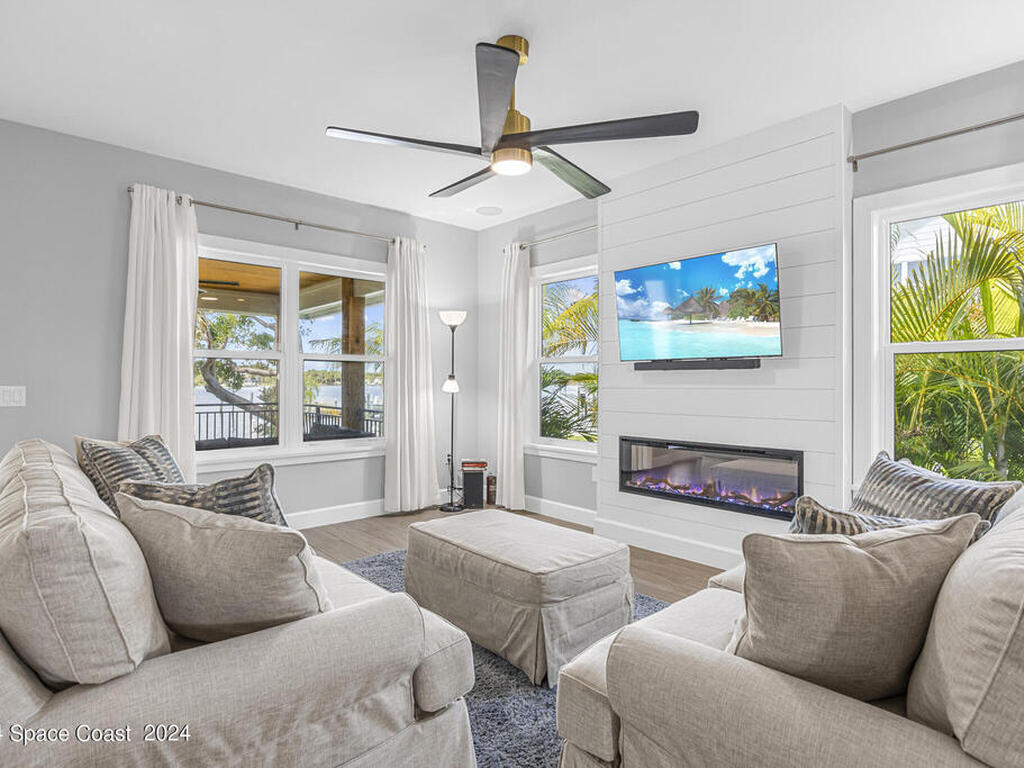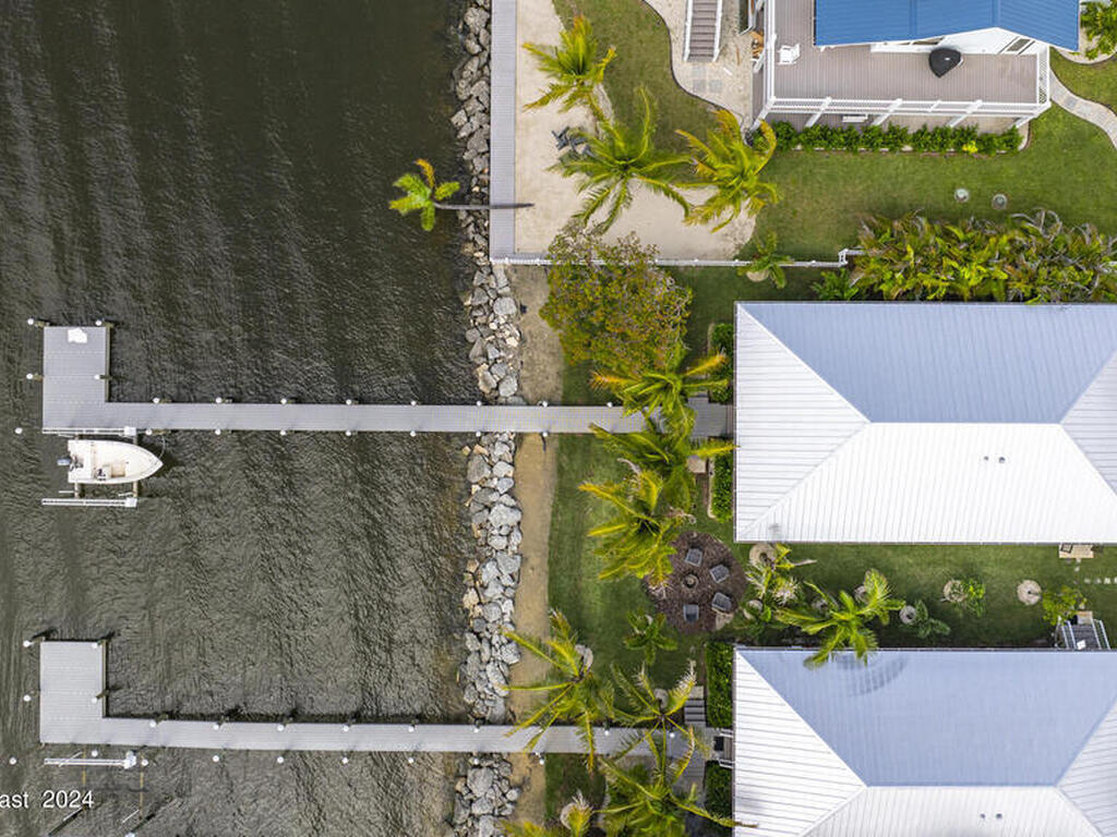 Welcome to 19 A VIP Island--a rare chance to own a newly built luxury retreat on a private island just 5 miles north of Sebastian Inlet. Offered fully furnished and completely turnkey, this home delivers modern style without sacrificing comfort. Inside, a chef's kitchen features quartzite countertops, solid wood cabinetry, and seamless plank tile flooring throughout. More than 375 sq. ft. of covered porches create effortless indoor-outdoor living, enhanced by a built-in fogging system and integrated speakers. High-end construction and upgrades include Hardie board siding, composite decking, spray foam insulation, impact windows and doors, a standing seam metal roof, and an R/O water system. The thru-flow dock with a 10, 000 lb boat lift completes the package. Private, polished, and built to impress--this is island living done right.
